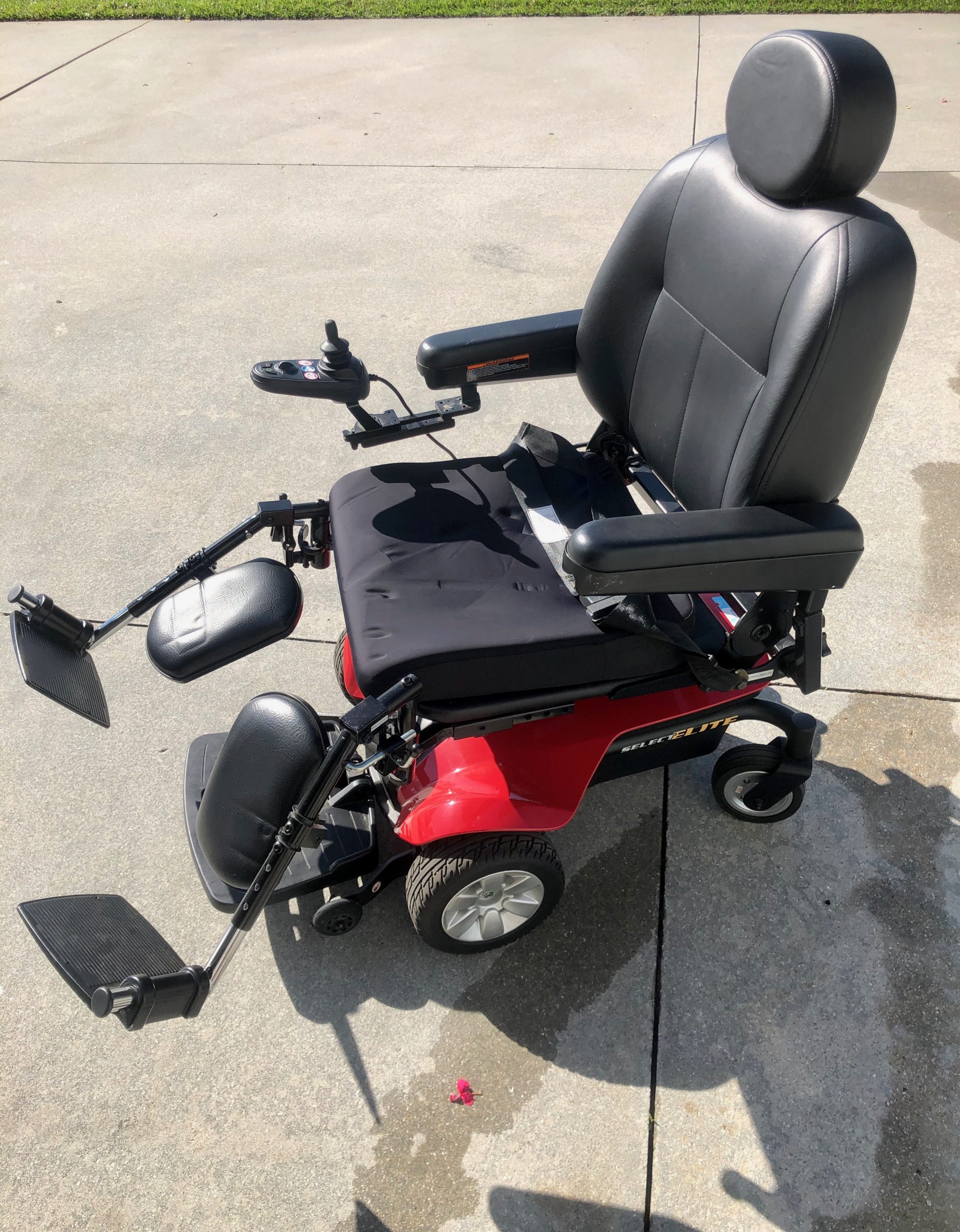 Jazzy - Select Elite Mobility Scooter with Haul Master 500 lb. capacity Hitch/Carrier. The Jazzy Elite brand is considered the best made USA chair on the market! The carrier transporter makes taking the wheelchair with you easy and care free. It comes with (2) batteries and (2) trickle chargers and a durable cover for it when traveling, as well.