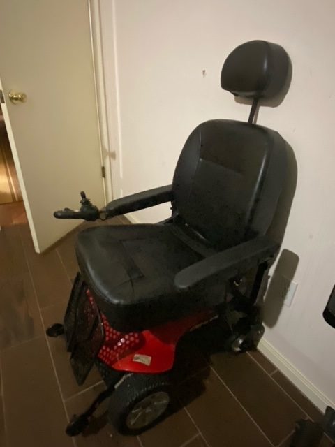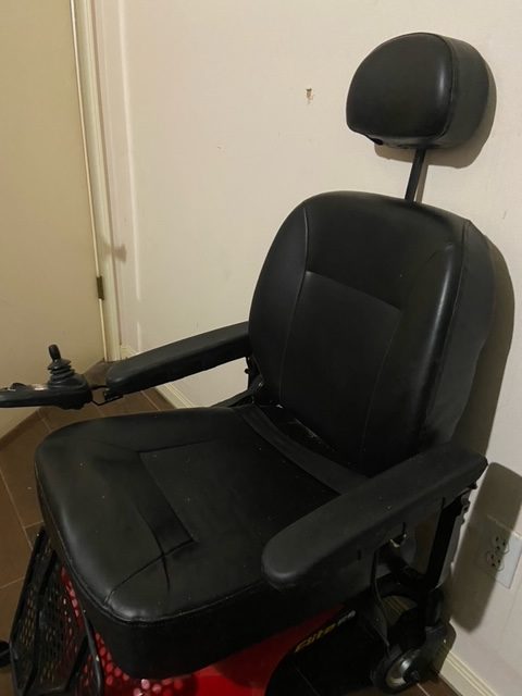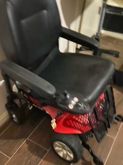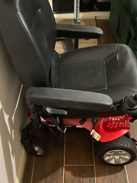 Chair was bought new in 2018 for $1600. It was very lightly used for 1 year, at which time, my husband had a second stroke which left him unable to sit up. He has just been moved to an assisted living facility, so I am selling all of his equipment as he is completely bed bound. This chair is in excellent condition, has only been driven outside twice, just to the driveway. The battery is included.