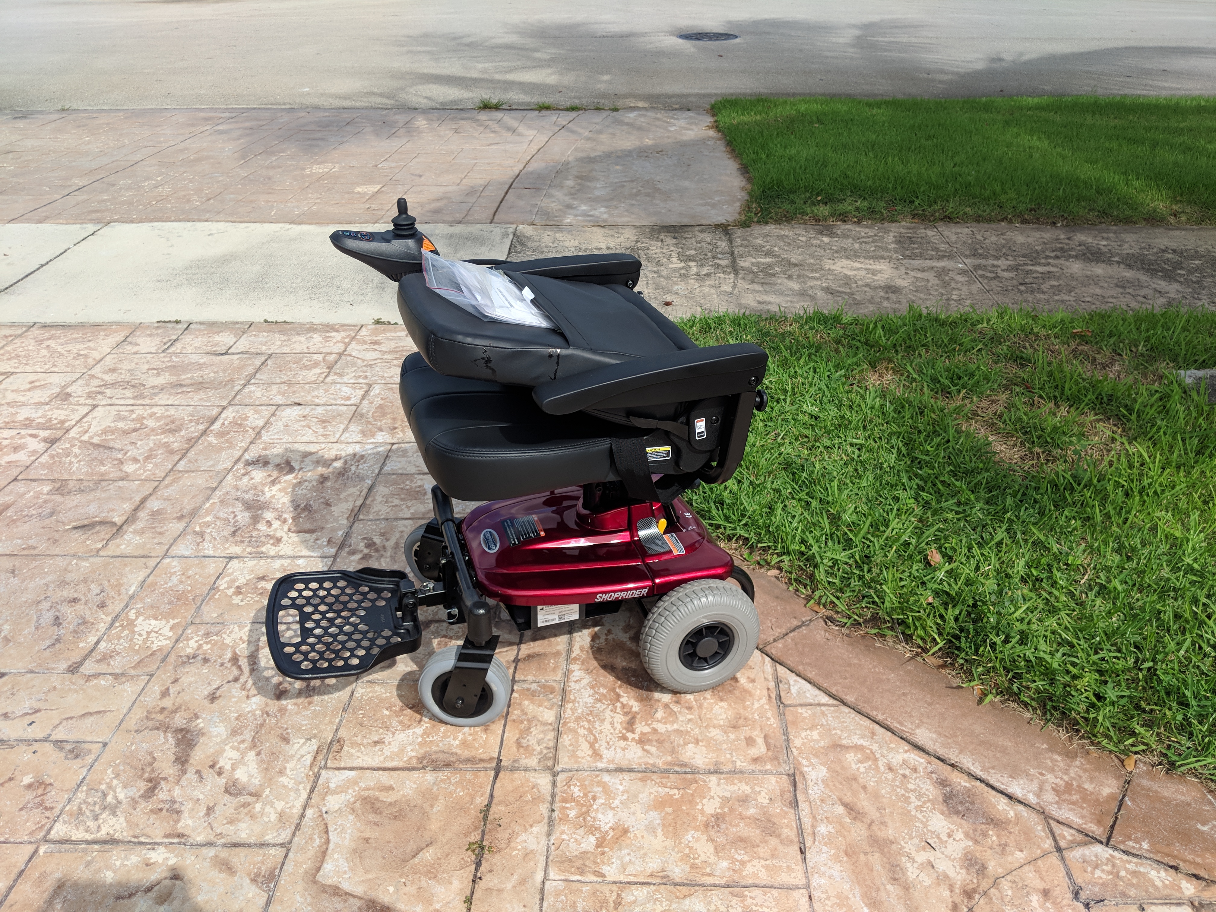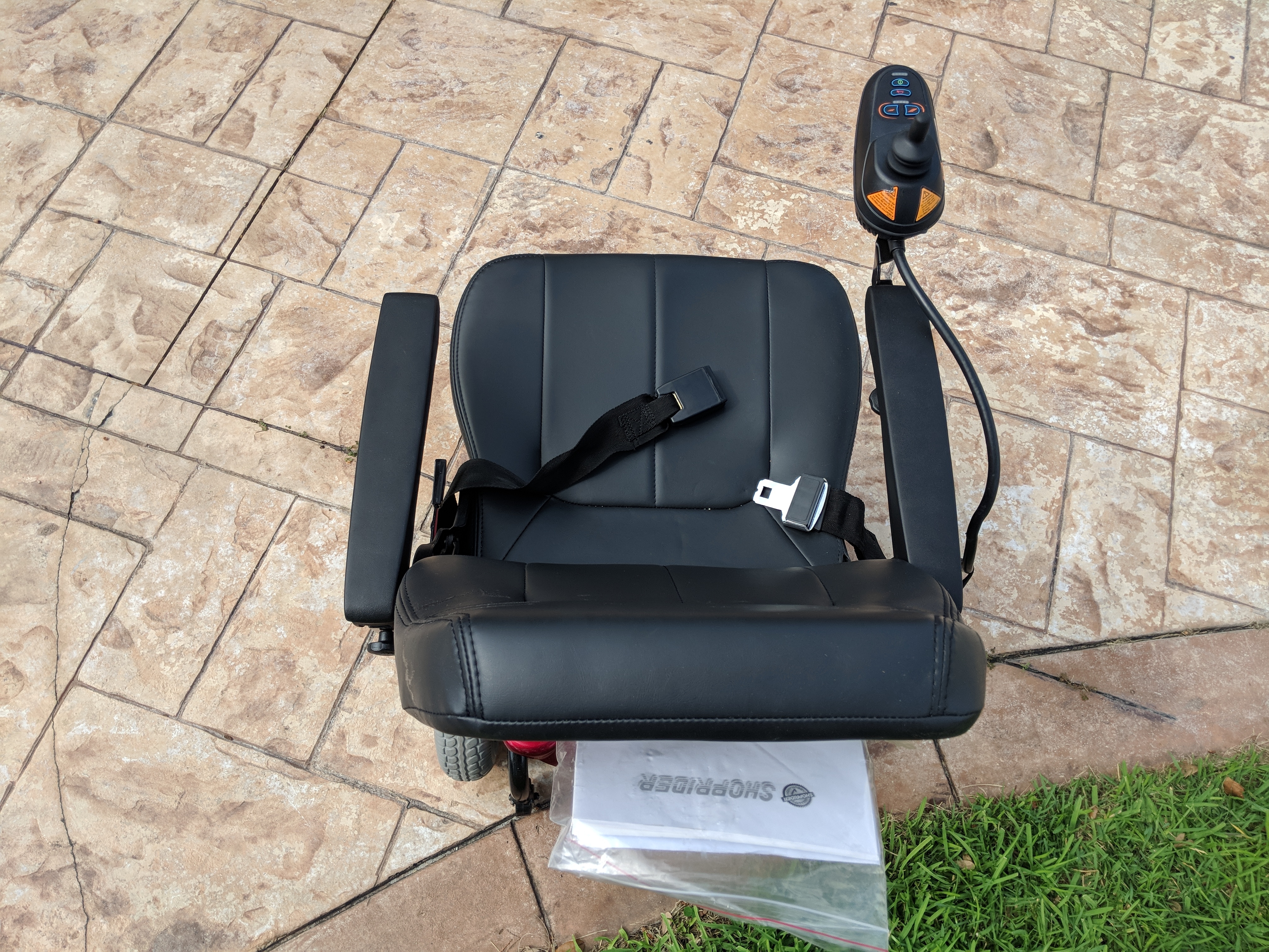 This is a barely used power wheelchair that was slightly damaged during delivery. The anti-tip wheels which are very small are held by metal arms. One of the arms is slightly bent inwards. It is barely noticeable and does not affect the performance of the electric wheelchair whatsoever.