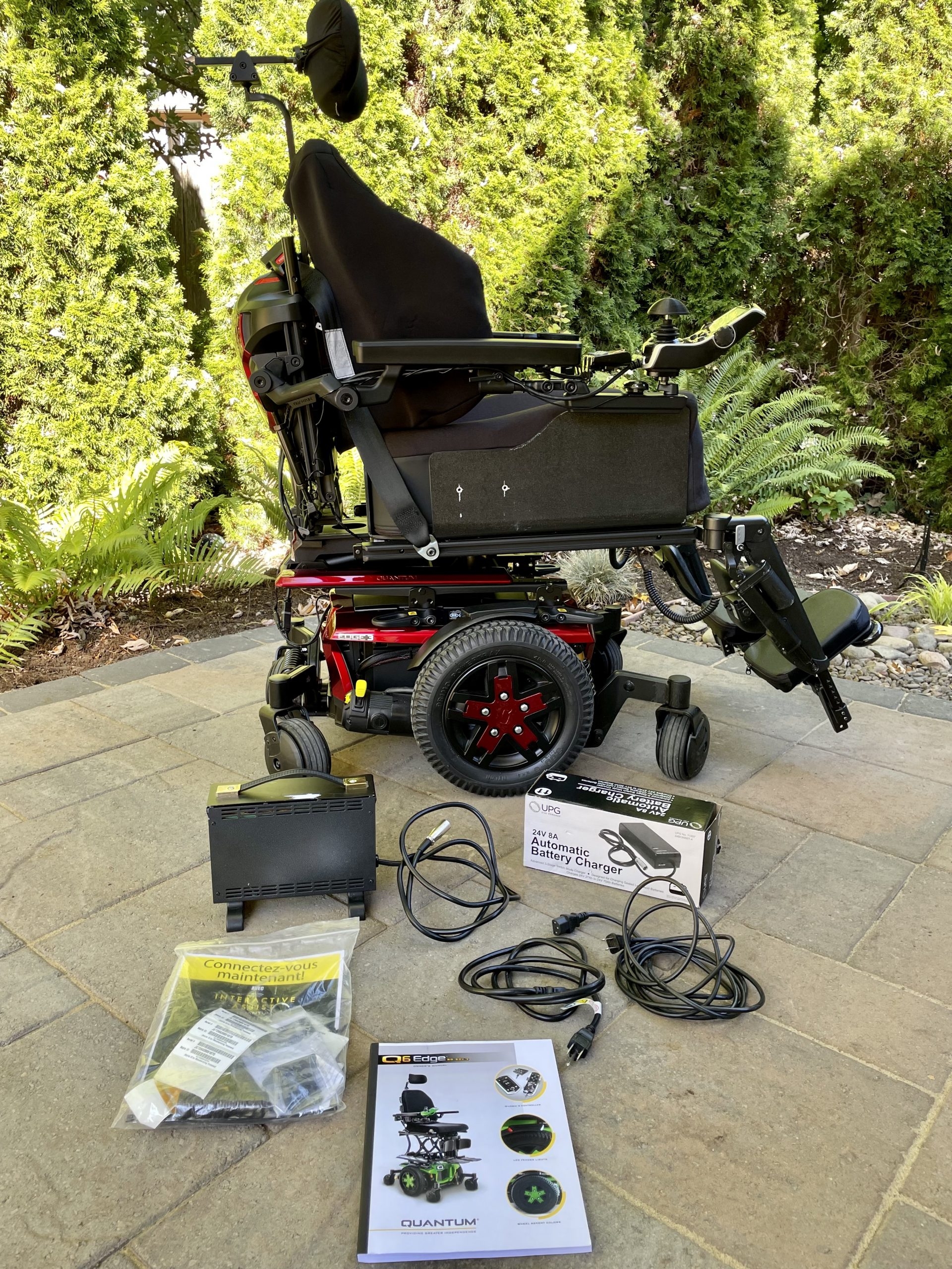 This 2020 Quantum 6 Edge 3 power wheel chair is practically brand new. With only 2 miles on its odometer, it was purchased for a family member who was a quadriplegic and unfortunately passed away before they could use it. I have the Serial# for the unit and can provide it. This Quantum 6 model is iLevel compatible, and includes the following features: