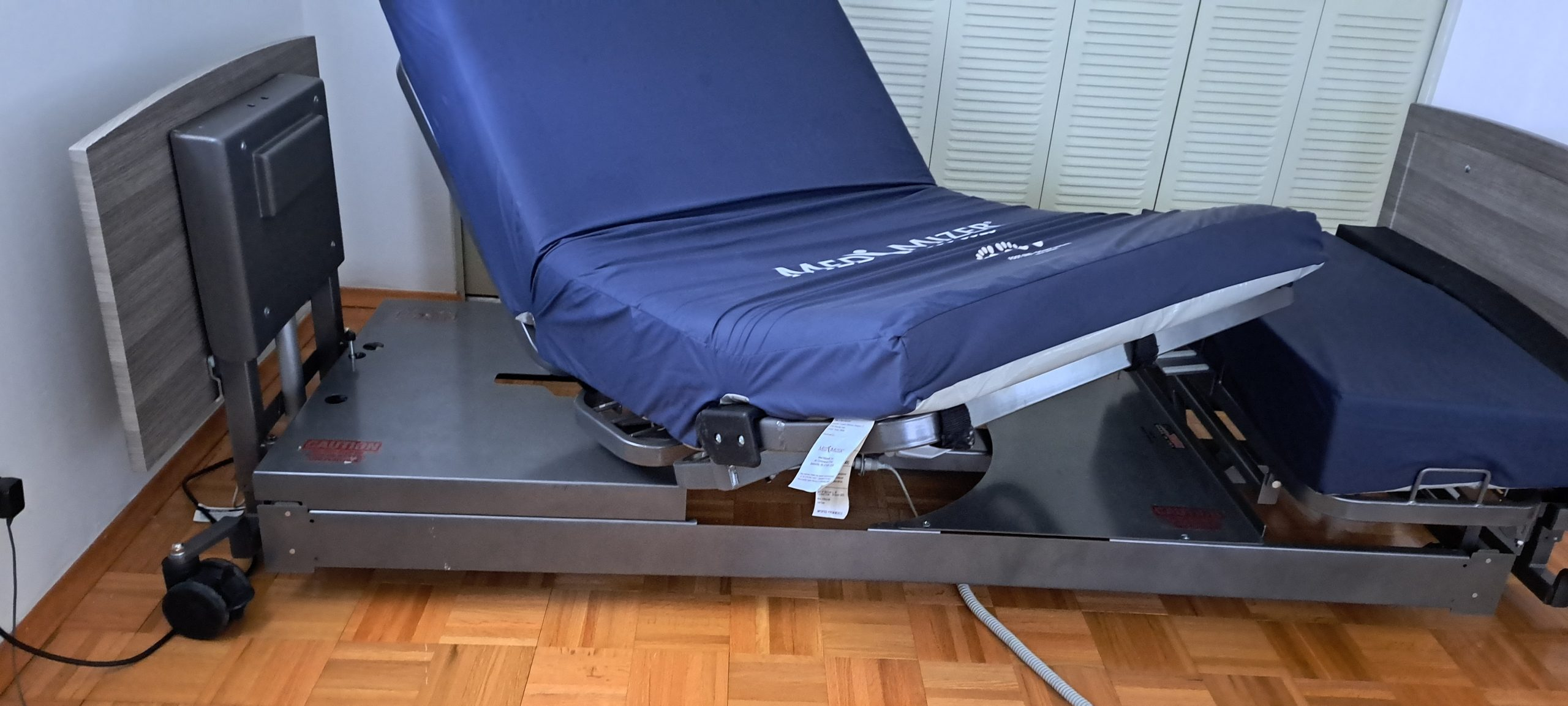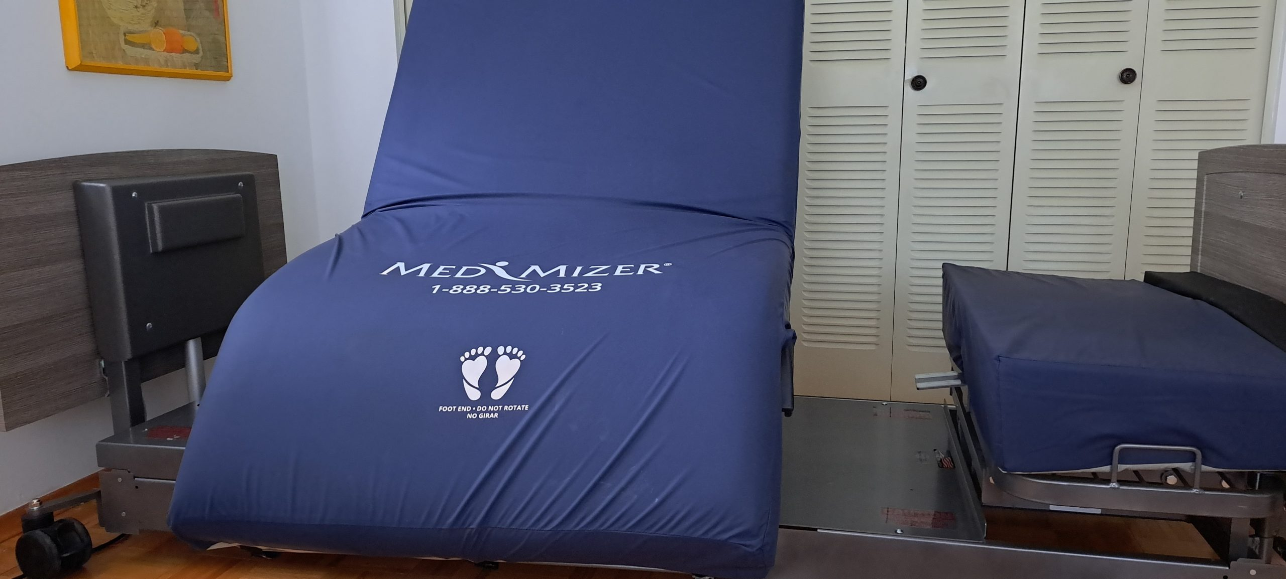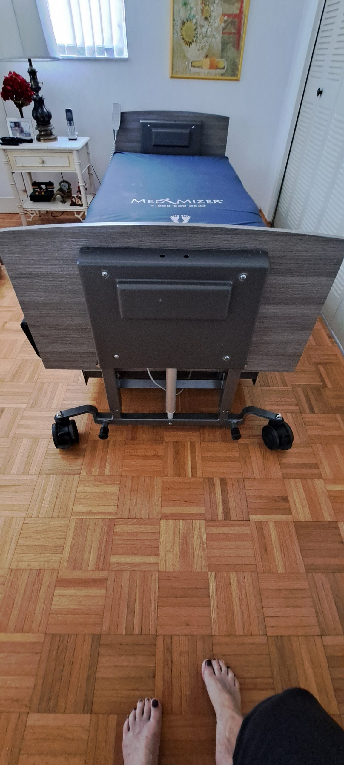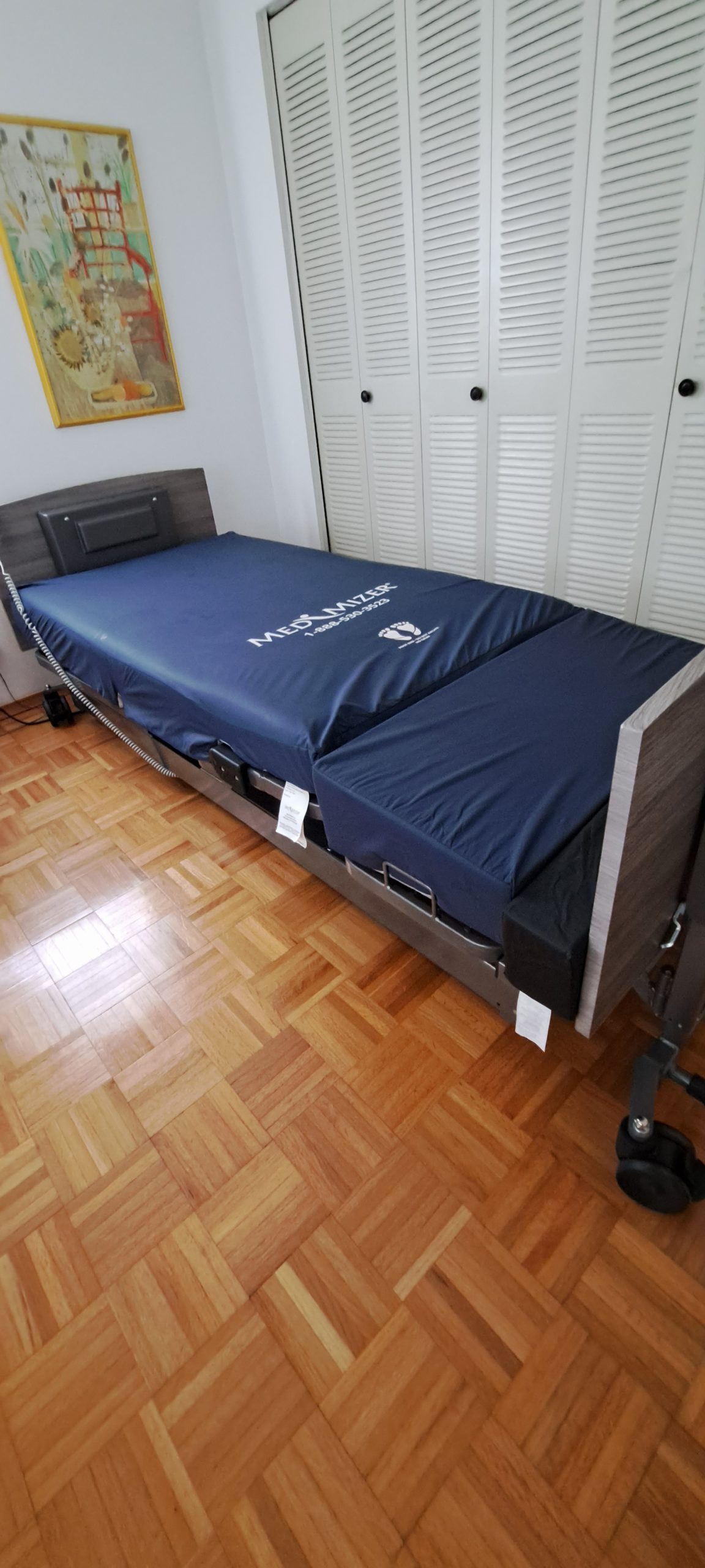 MED MIZER ACTIVE CARE STANDARD ROTATING & SIT UP AUTOMATIC HOSPITAL BED. THE BED IS INTENDED TO PROVIDE A MEANS FOR A SINGLE OCCUPANT TO RECLINE AND SIT, AND TO ASSIST THE OCCUPANT IN MOVING BETWEEN RECLINING, SITTING AND STAND POSITIONS. RATED FOR UP TO 600 LBS LOAD. THIS BE WAS PURCHASED NEW FOR OVER $6,000 IN JUNE, 2022.