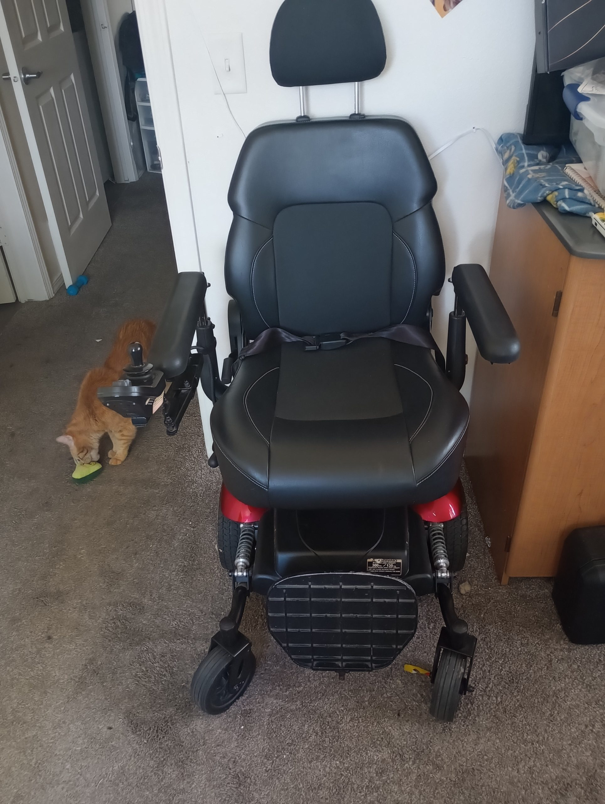 Merit Power Wheelchair in great condition. Seat has no rips, stains or tears. Tires have good tread. Gets you where you need to go, sometimes quickly, in comfort and style. Holds up to 300 pounds, turns on a dime! Comes with a wheelchair cover and battery charger. Holds a great charge! Seat reclines and swivels left and right. Has independent suspension on the front and rear wheels. This wheelchair is wonderful, but is too big for me and my husband (who is disabled) to haul around to get where he needs to go. We have taken this chair into the mountains, around the city and across the country. We need a lighter chair for him! We are wanting to sell this chair to fund getting a new, lighter chair. If you have any questions, please do not hesitate to ask! Willing to negotiate on price. Located in the Salt Lake City Metro area. Cash or certified cashier's check are preferred.