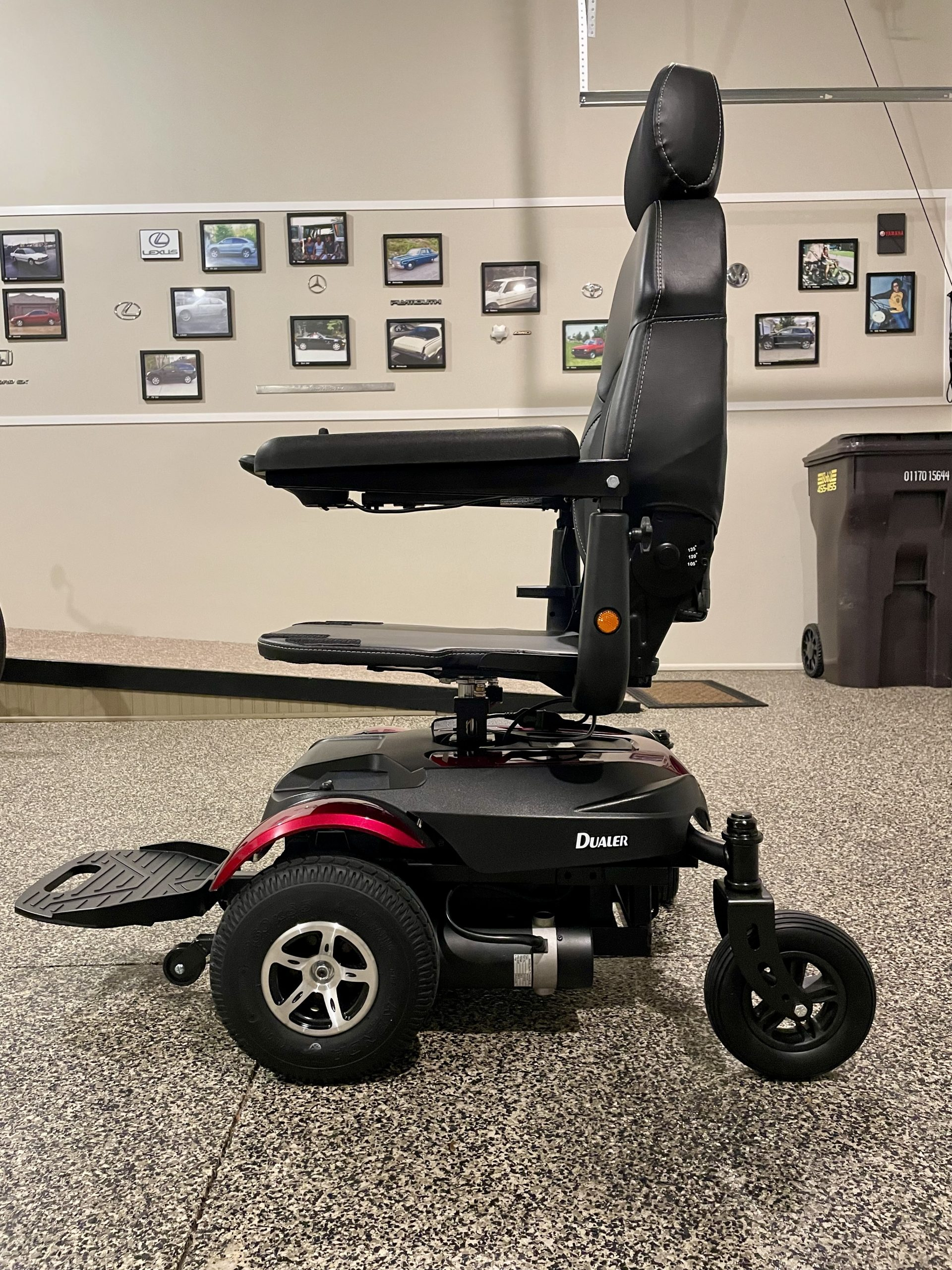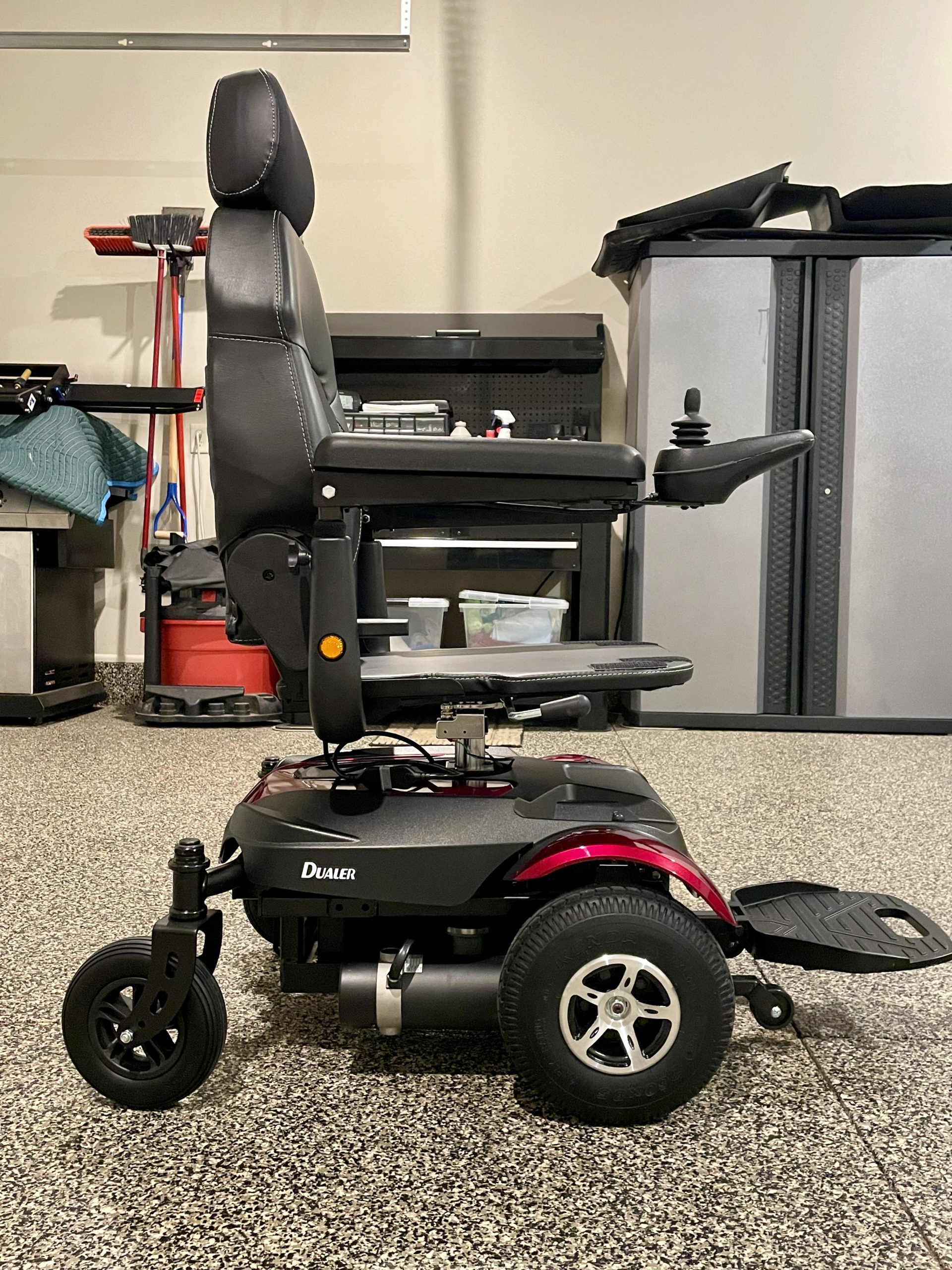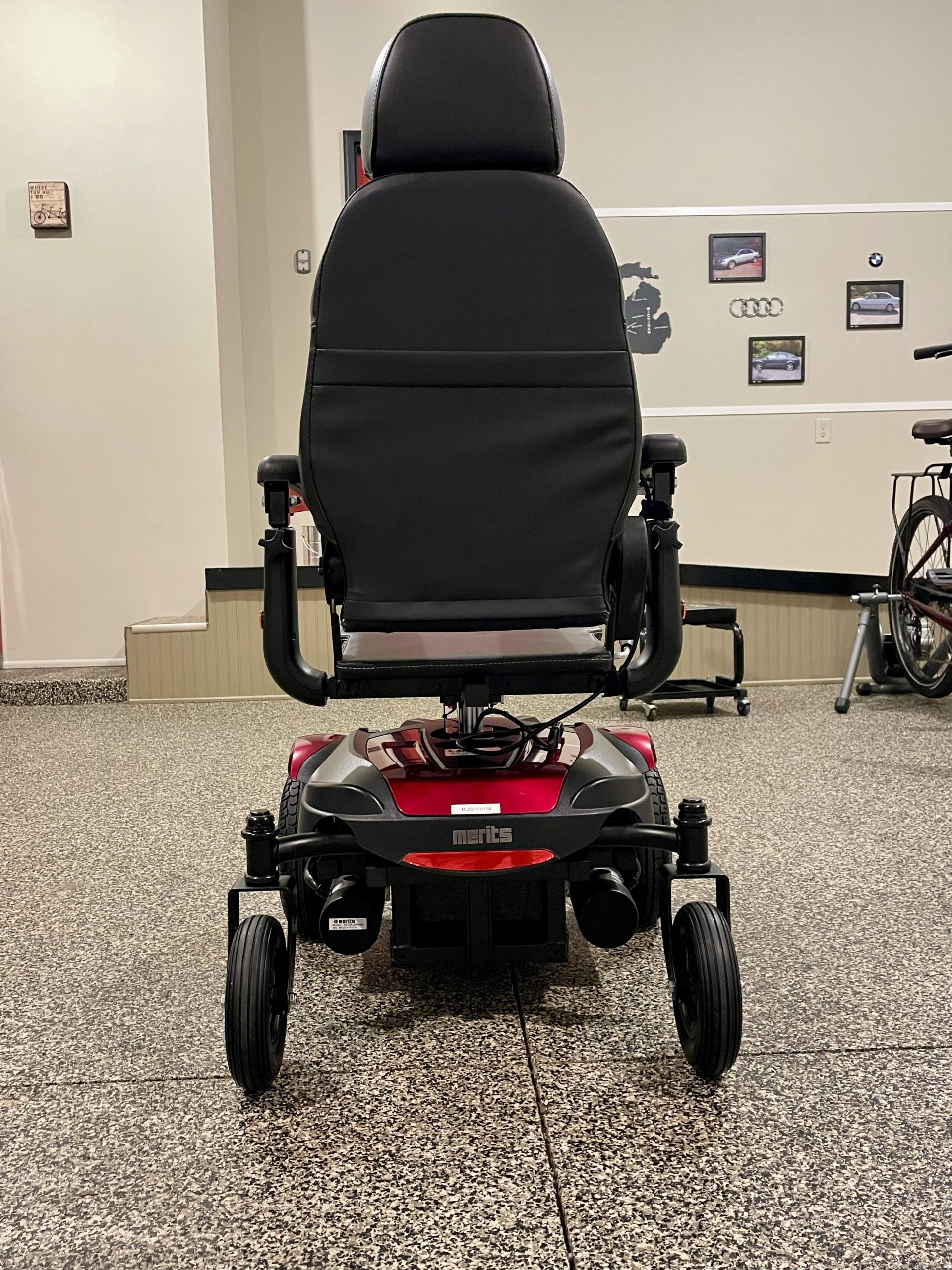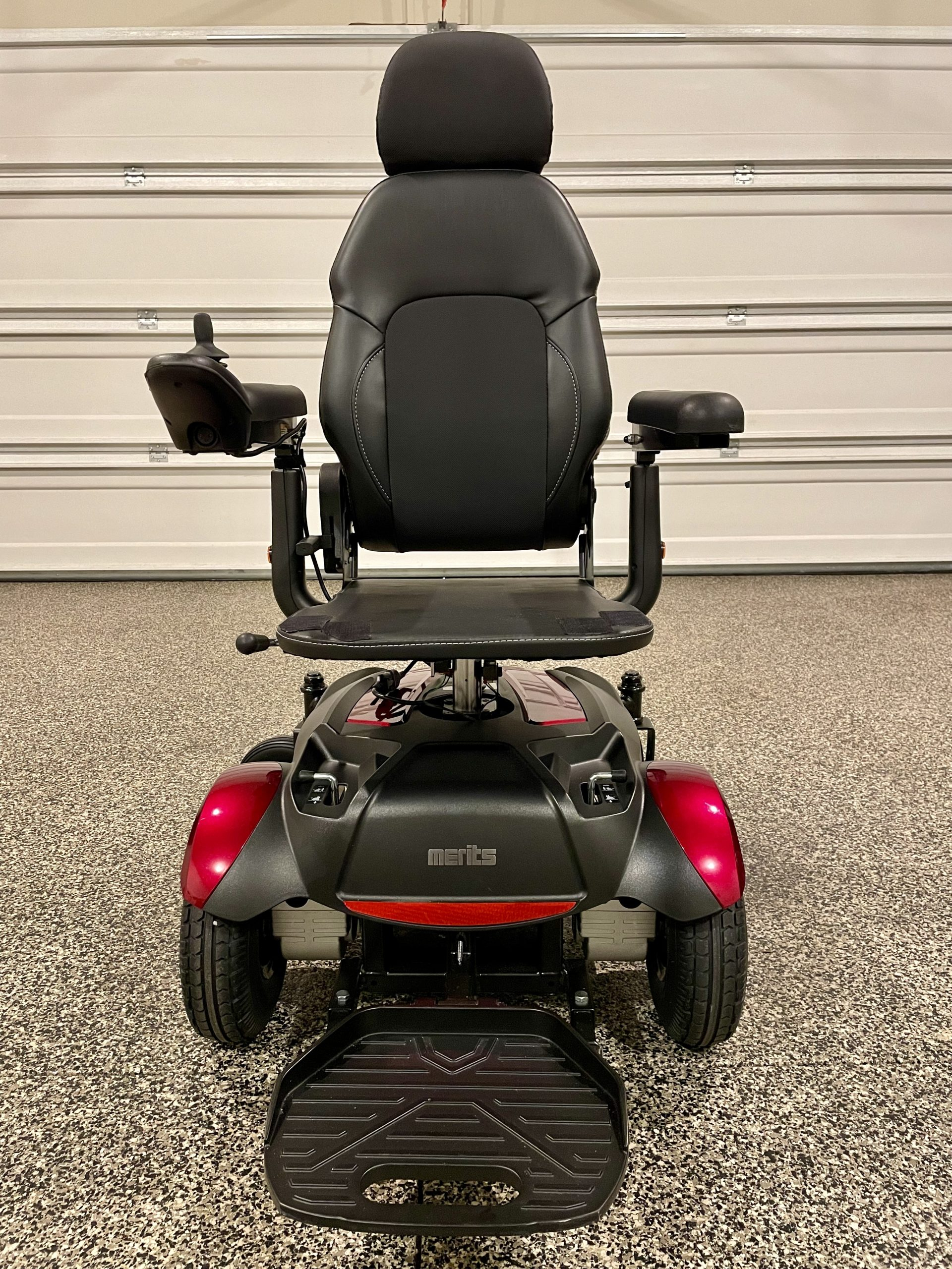 Power Chair was delivered September of 2023 New. Please look up Metits Dueler, P312A. All specifications are listed. Spouse did not get to use much because of deterioration of her health, and never could get the hang of driving the "New" chair vs the one she was used to. The Merits Dueler is very maneuverable for in home use and is less 200 lbs. The Power chair can easily be driven up a ramp to put into a SUV or Van for going out. Also have a new Roho seat not pictured. The most important option of the Merits Dueler is the seat elevator. This allowed the user to reach items such as dishes or clothes from up above, and transfer to and from toilet and bed. The control arm is for the right arm and can be placed on the left, if needed. Perfect condition, barely driven a week. Seat measures 16"wide and 18"deep. Can answer any questions.