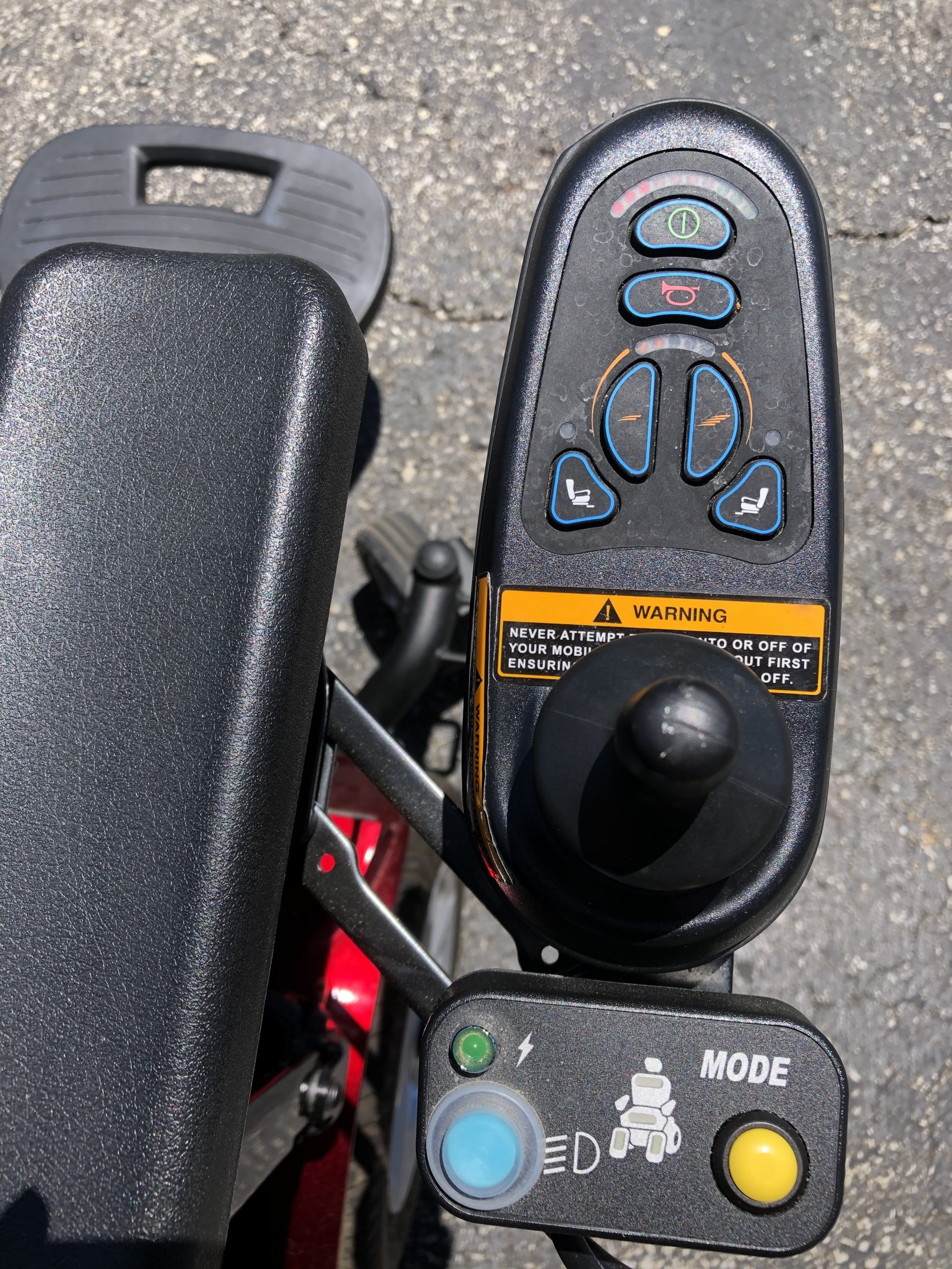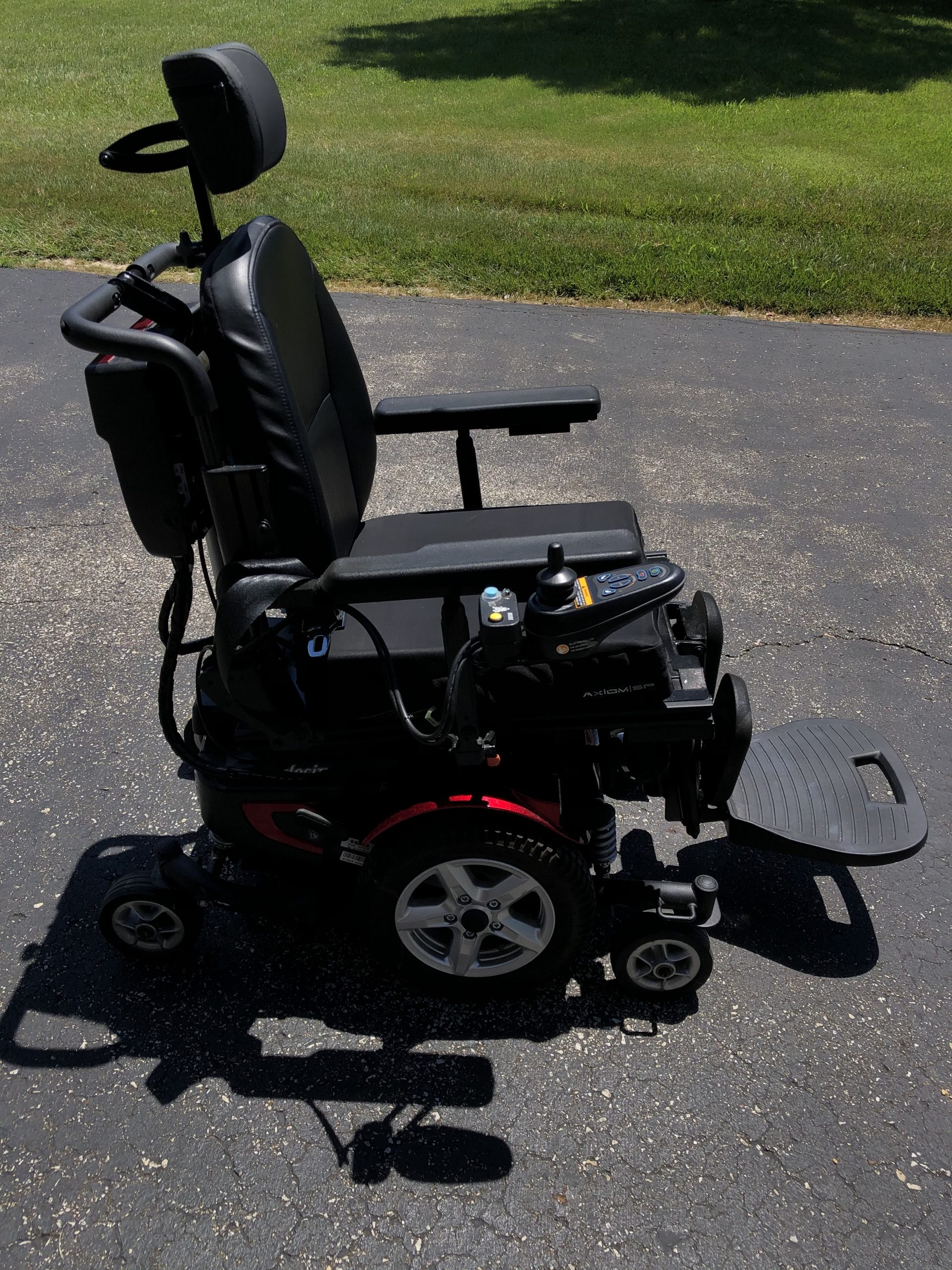 Purchased new June 2020 and remains in excellent condition. Model number 32200589. Power lift and recline allows a person to lean back and elevate legs for comfort or medical reasons. It has never required any service. Owners manual is available. Maximum weight capacity is 300 pounds. Range is 26 miles per the manual, however it was only used in and close to the home. Maximum speed is 5 to 6 mph. Caster wheels are on front and back for easy turning on a dime. Joystick controller with easy operation and varying speed levels. The chair is 36 inches in length and 24 inches in width. Armrests and footrest aid positioning and comfort. Electromagnetic and regenerative breaks are present. There is a parking break. It also comes with an easy access free wheel lever to allow the wheelchair to be manipulated manually. (more…)
