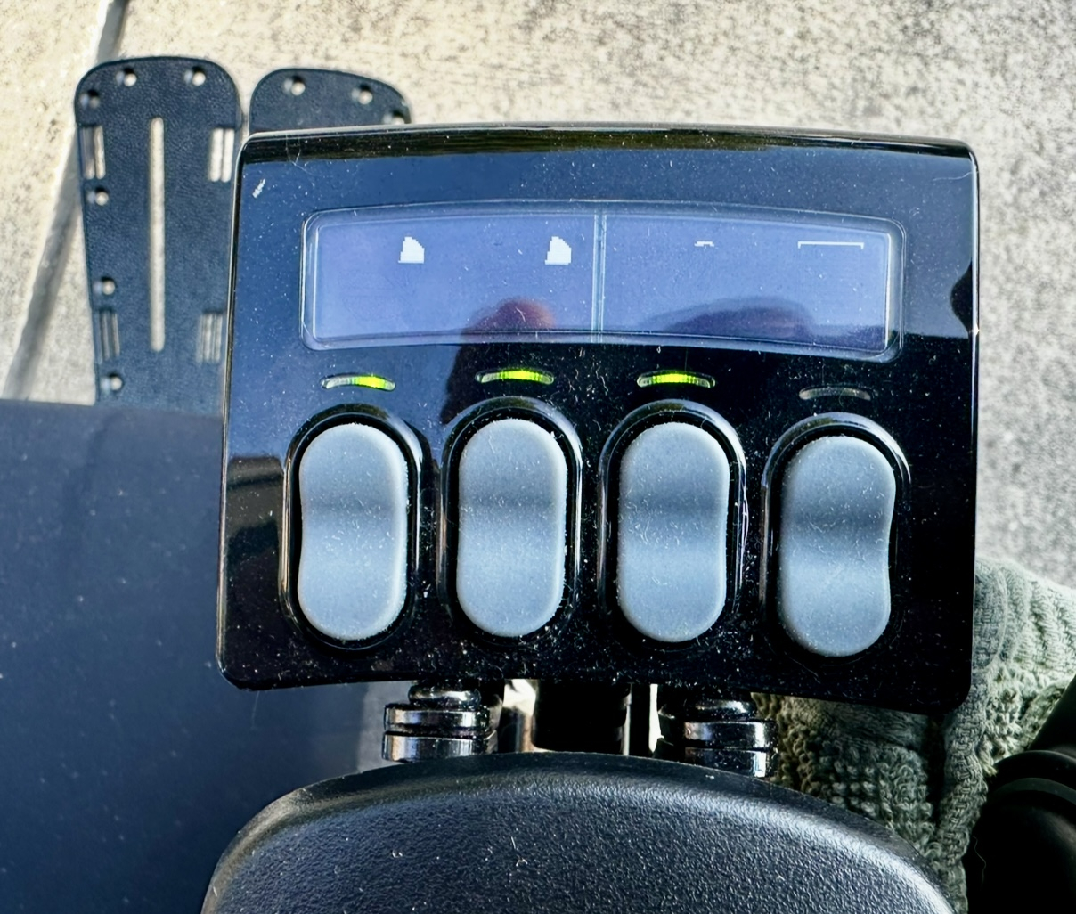 All possible power features are included: 50 degree seat tilt, up to 175 degree recline with shear reduction, 12” seat elevation, power articulating leg rests and elevating foot platforms. Multi function swing away joystick, with dedicated toggle buttons for easy operation of the power positioning features.
