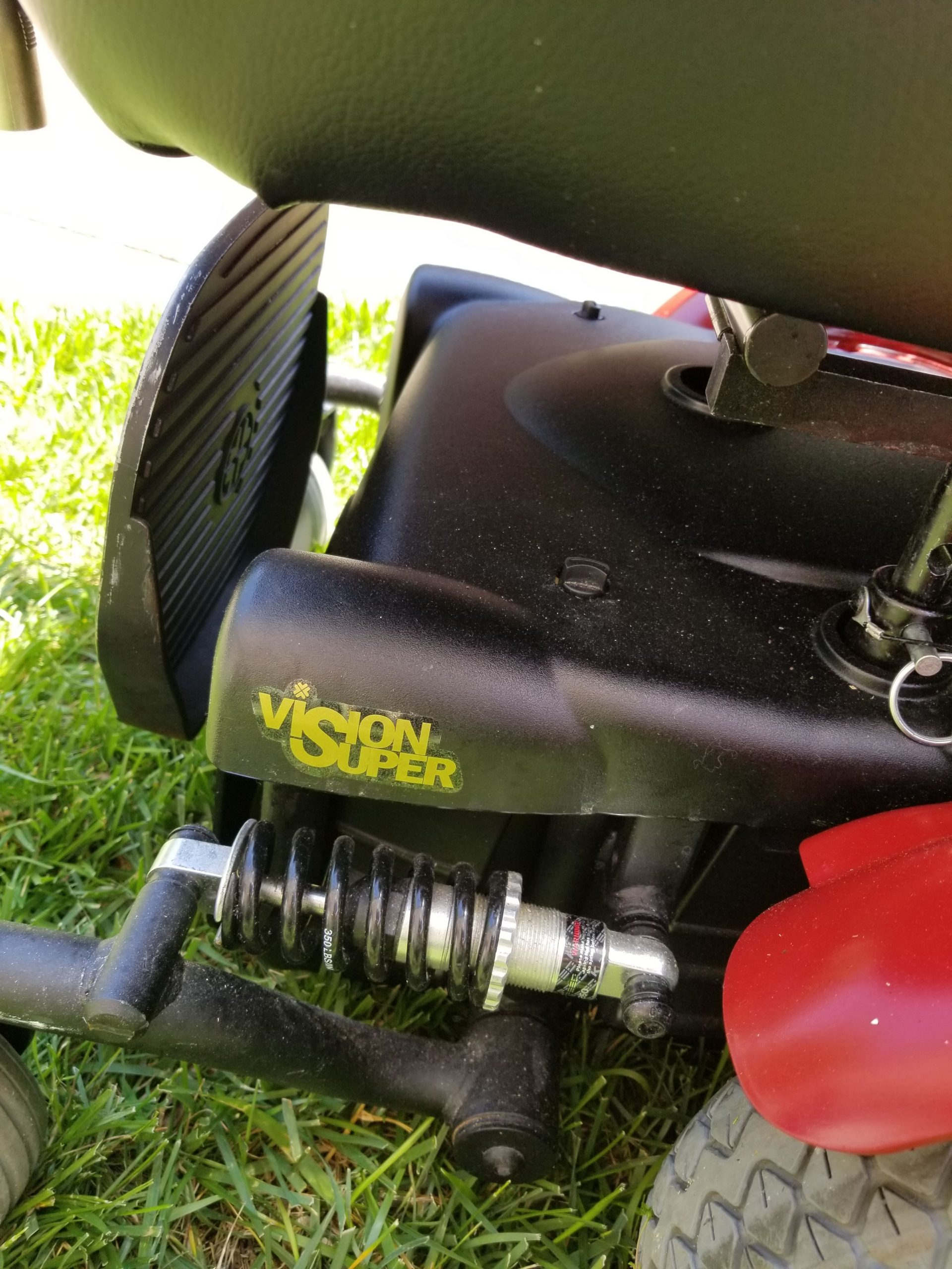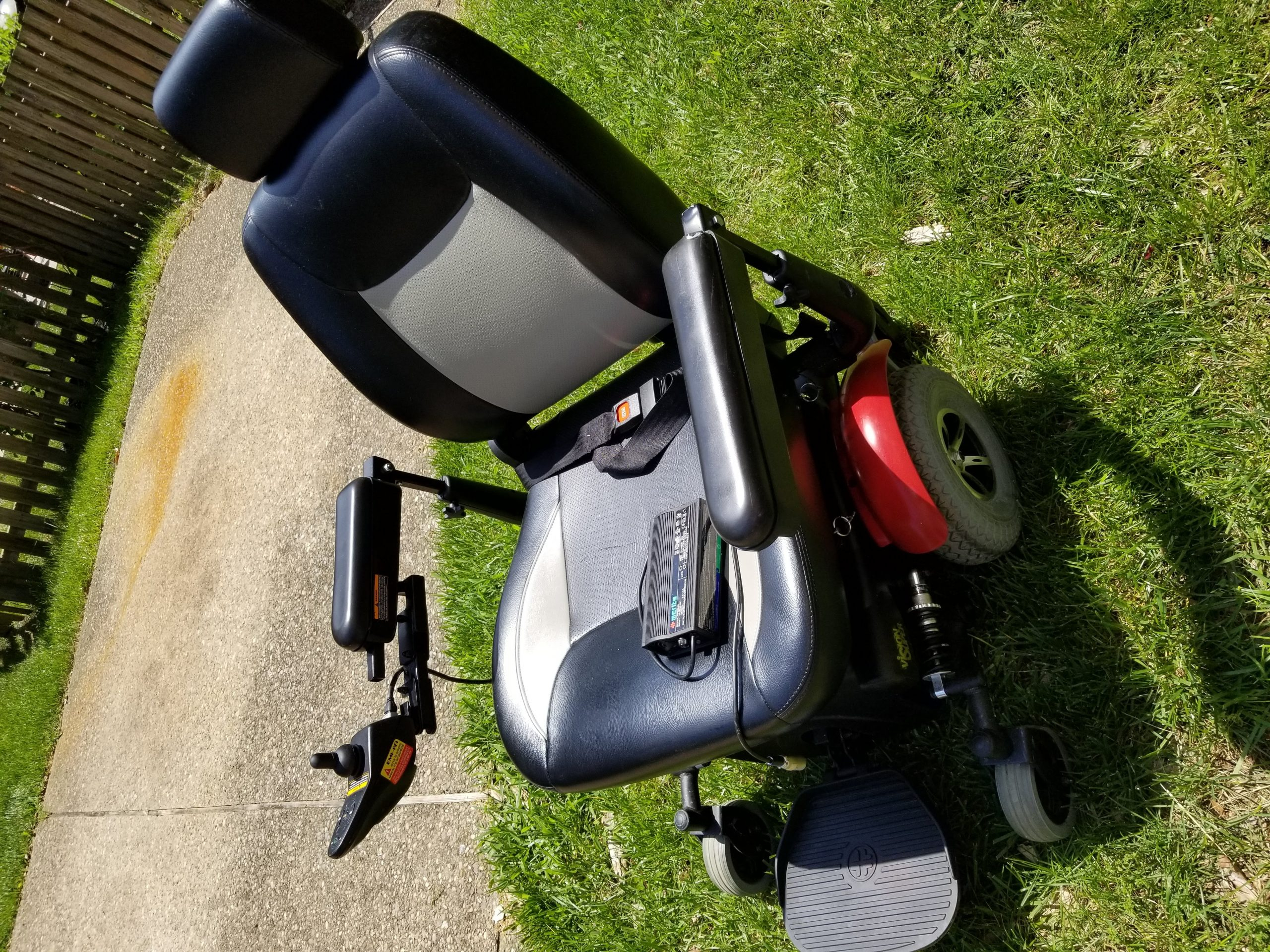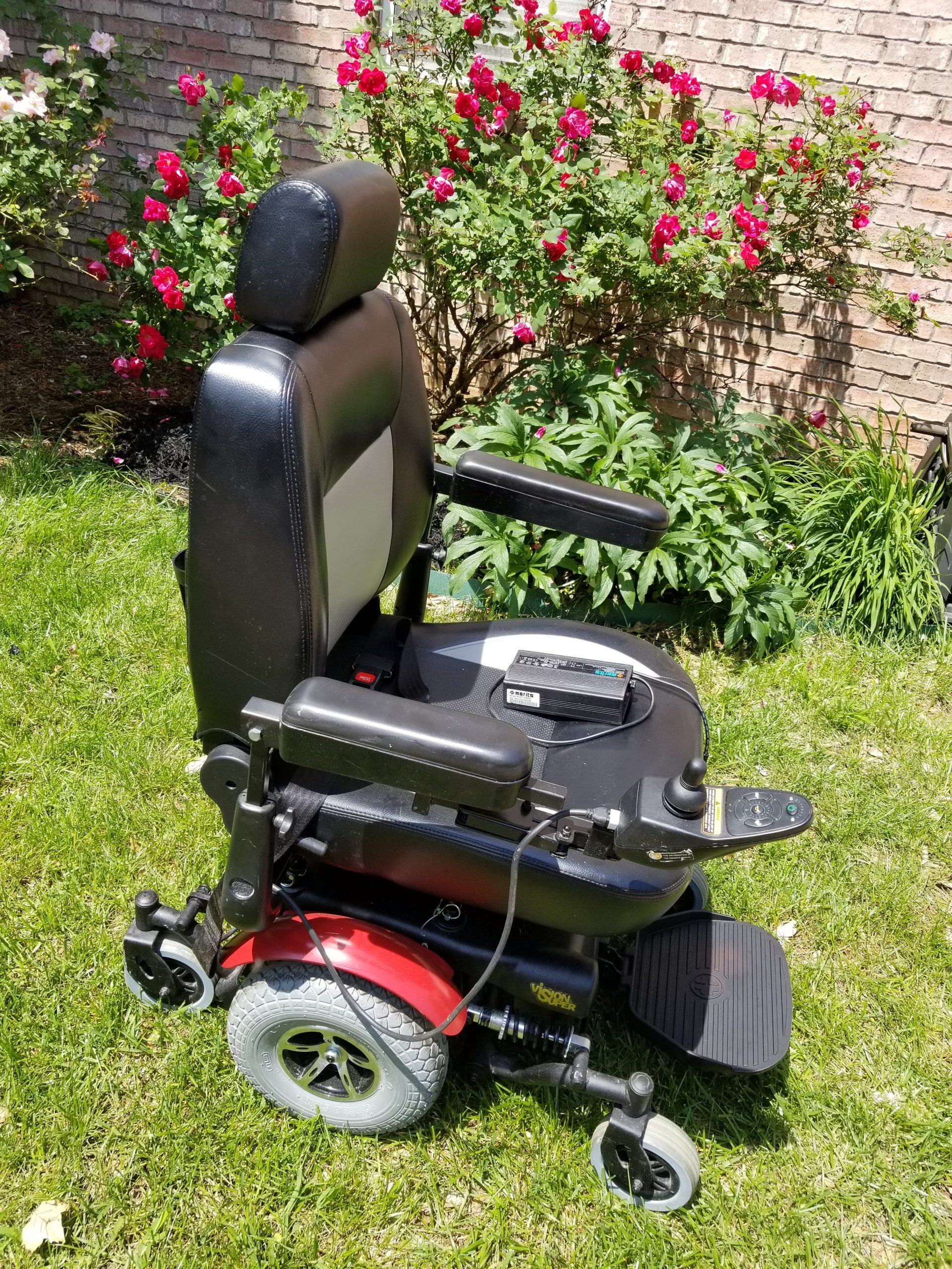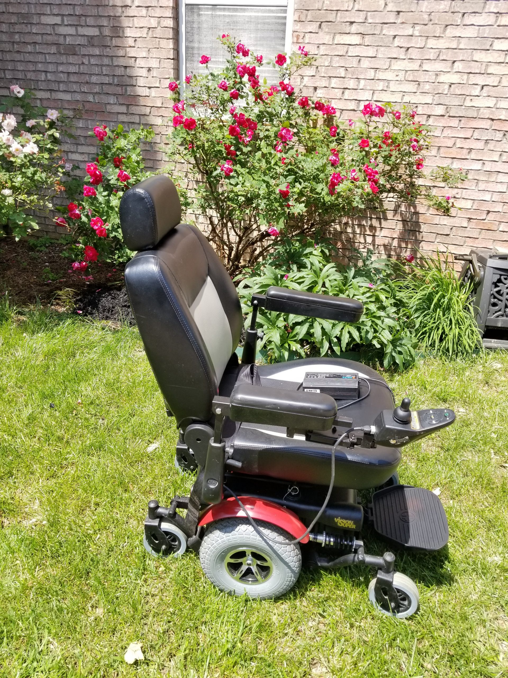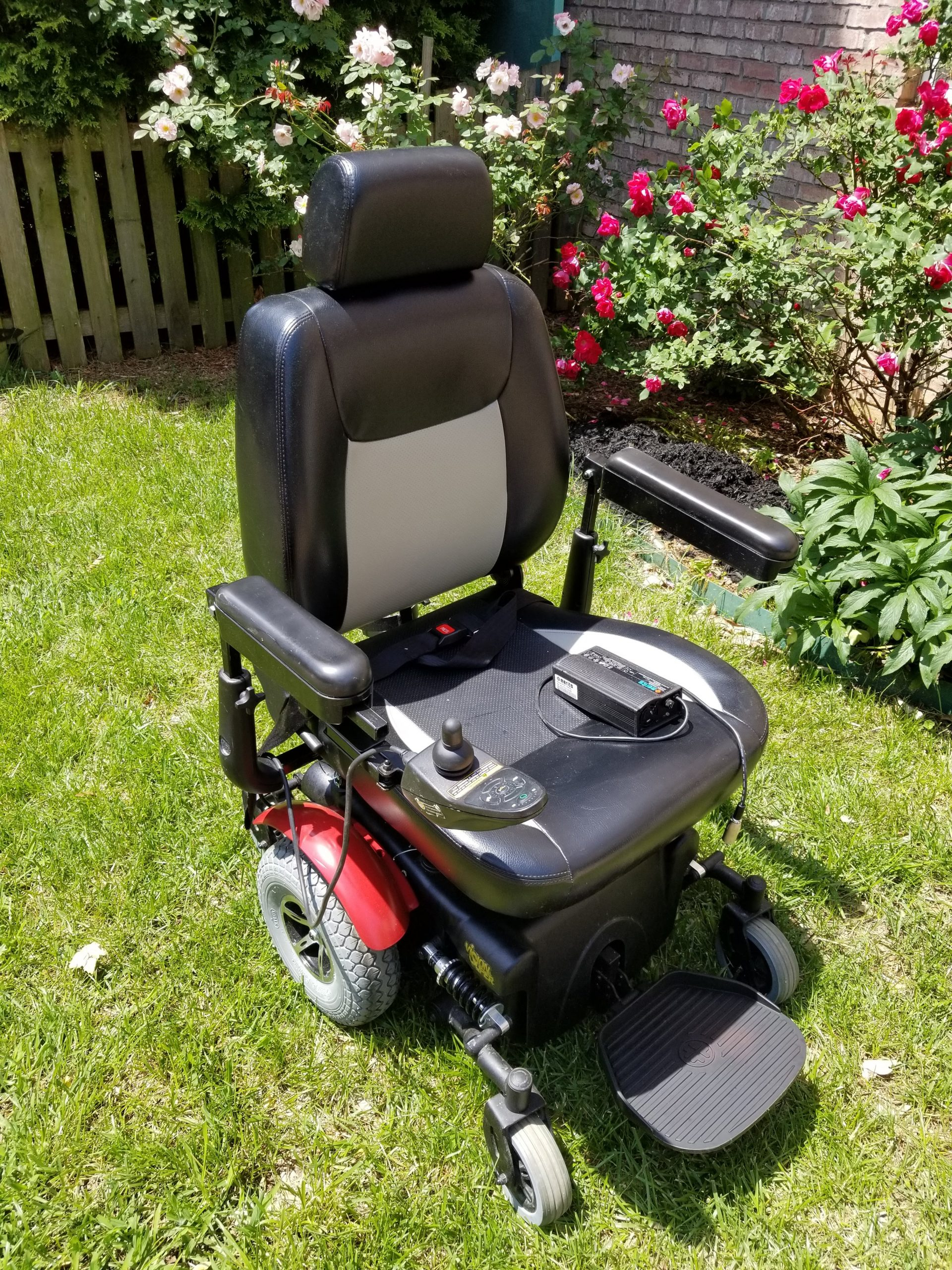 Like new Merits Vision Super Wheelchair. Includes charger and two extra batteries ($300 value), plus an extra wheel. (Note: we bought the batteries because we thought they needed replacing, but it just turns out the controls were locked).