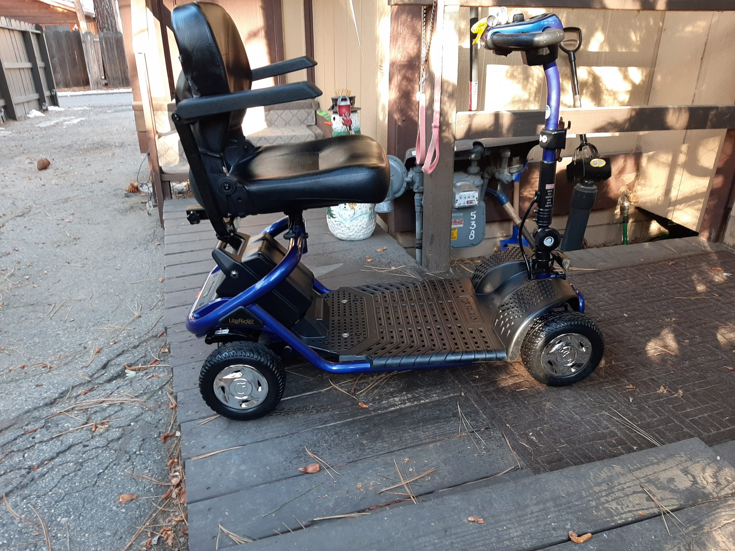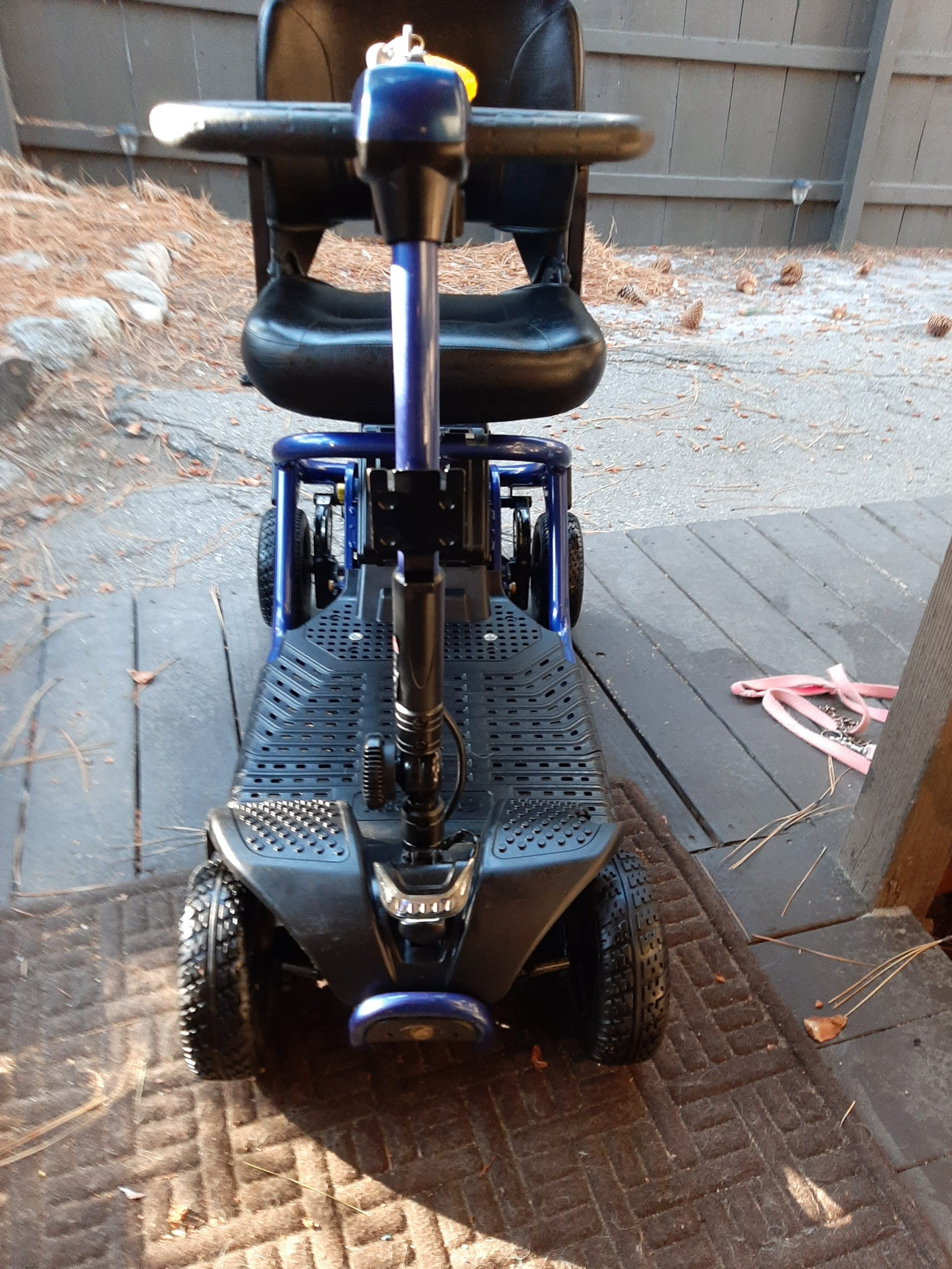 This Scooter looks New, very well taken care of. It comes with various speeds,battery charger, trailer hitch mount and Still in box Ramp. Can handle hills with ease and arm rests are collapsable. Battery Charge lasts for an extreme time on one charge. My Disability status has changed, thats the only reason why I am selling. Steering is amazing and fits on the trailer hitch mount with ease. I have the Ramp for the mount, that is still in its box. Pricing is negotiable.
