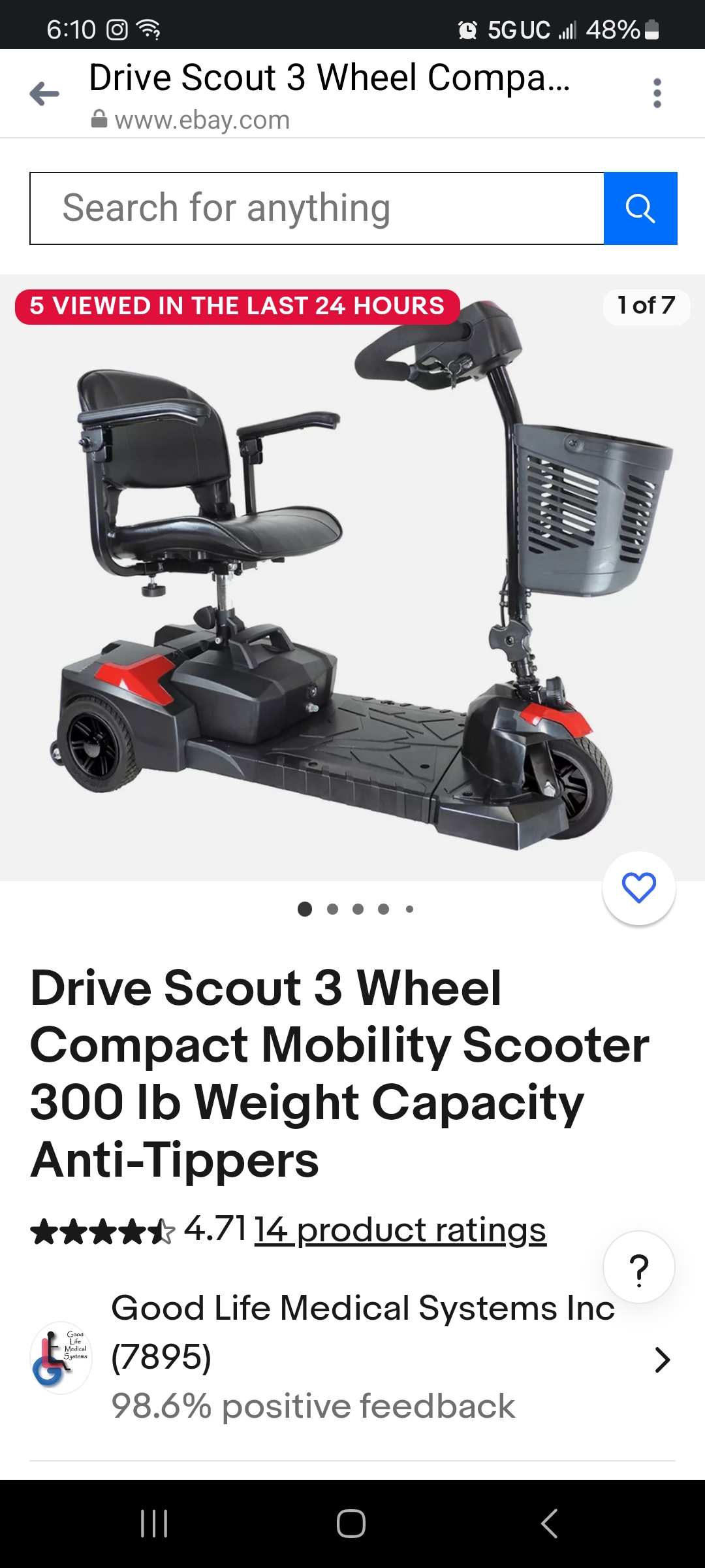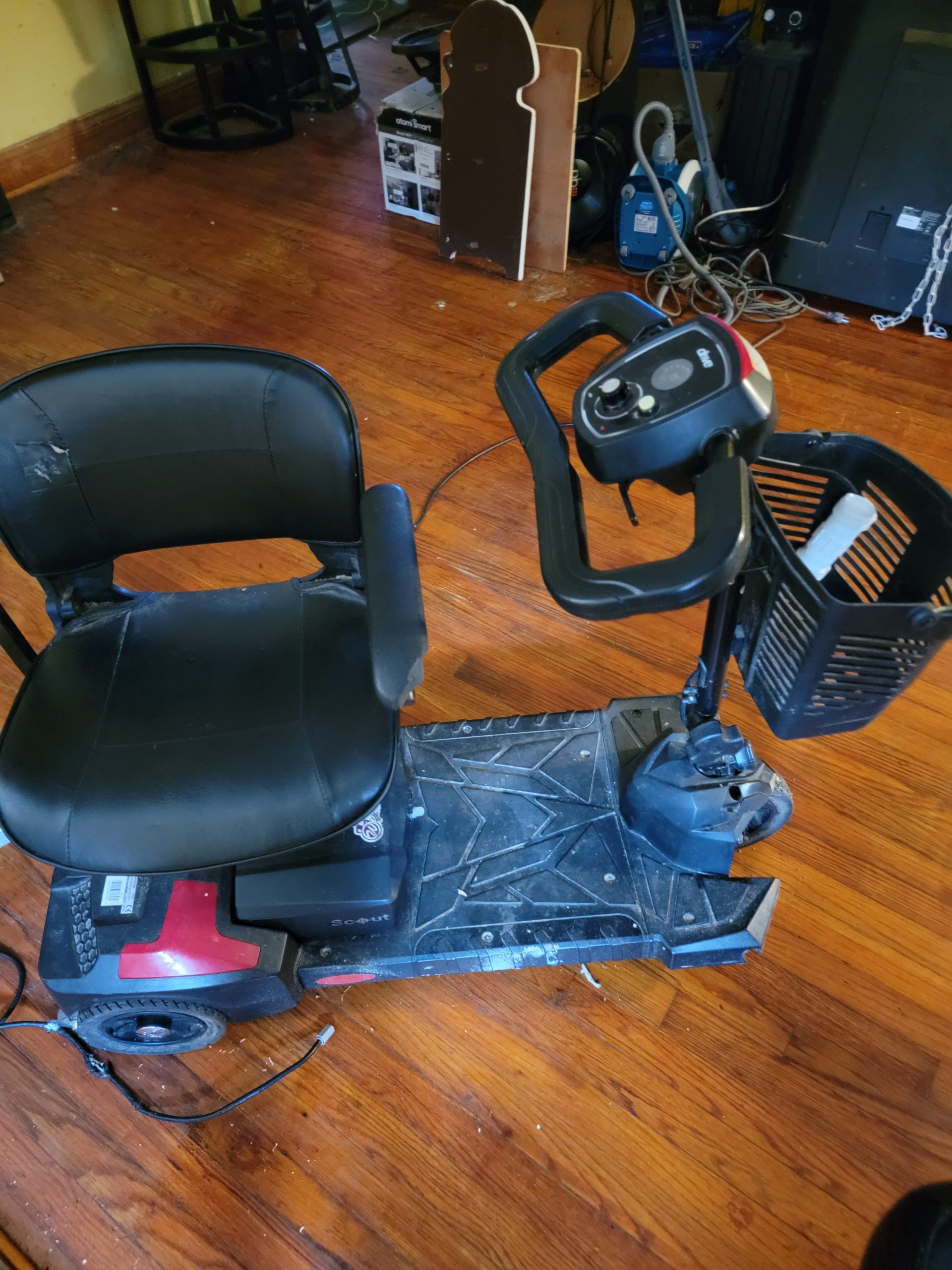 Drive Scout 3 wheel mobility scooter. 300 lb weight capacity. Easy access to go in and out of an car. Easy access for transport and traveling. Owner has 2 so this one is barely used. Only serious inquiries please. Any questions or concerns please contact zonia at 404-453-1001. Can fit in a car trunk. Can travel up to 50km on a single charge and handle steep hills. Good for trips to the park, shopping, or visiting neighbors. Scooter can be used indoors. This mobility scooter can be used for carrying things like groceries and personal effects. This can be very helpful for individuals who are still able to stand and walk a fee steps, sit upright without torso support, and control the steering tiller.This includes those with systemic or whole body disabling conditions. Thank you. Thank you Thank you Thank you Thank you Thank you Thank you Thank you Thank you thankyou for everything