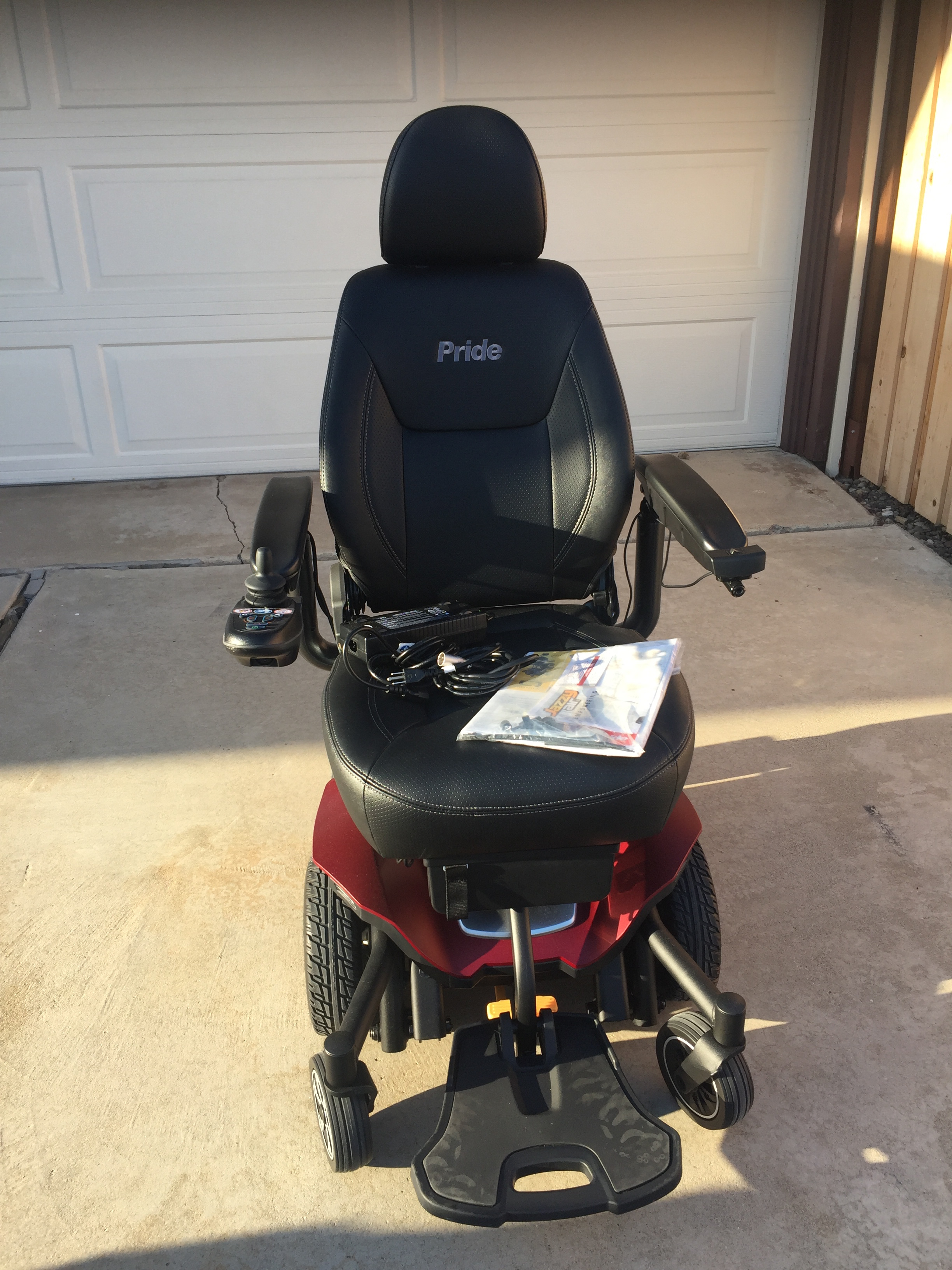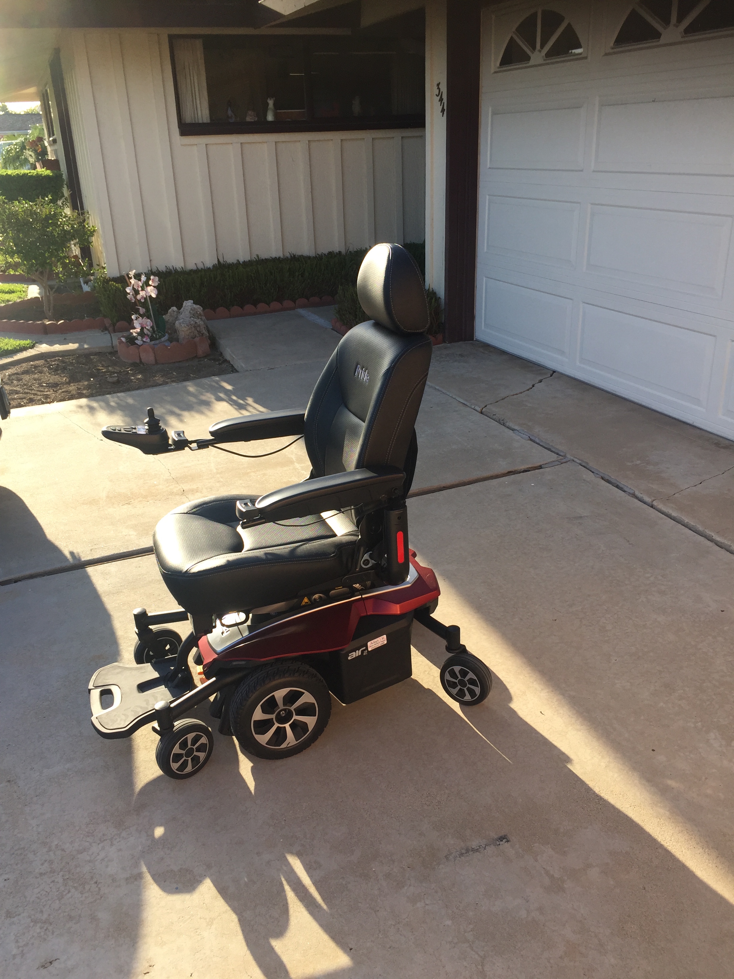 Brand NEW, Never Used Pride Jazzy Air 2 motorized scooter. Elevates up to 12” in 11 seconds. Modern & sleek look, this power chair safely drives up to speeds up to 4 mph while elevated. The Jazzy Air 2 offers enhanced performance and stability both indoors and out. Adjustable armrests and adjustable headrest. Integrated foot platform with rubber insert and 2” of adjustment for comfort in both the elevated and non-elevated positions. Bright LED marker lights for visibility in all environments. Single-sided caster forks for enhanced maneuverability. Under seat storage compartment. Very High tech and has all the “bells & whistles” on it! Just sitting in my garage waiting for someone to give it a home! Please give this beautiful Brand NEW Pride Jazzy 2 motorized scooter a home!