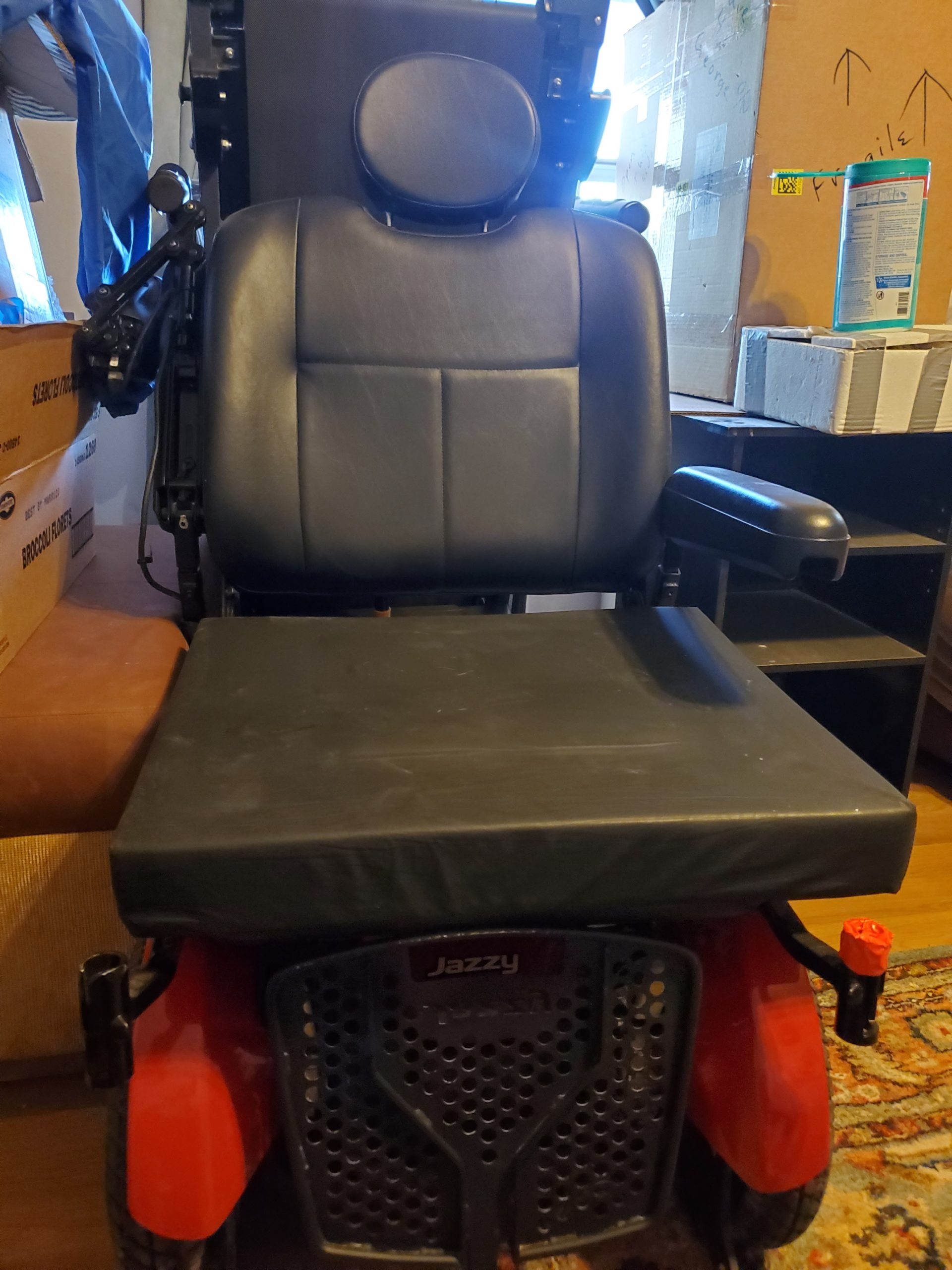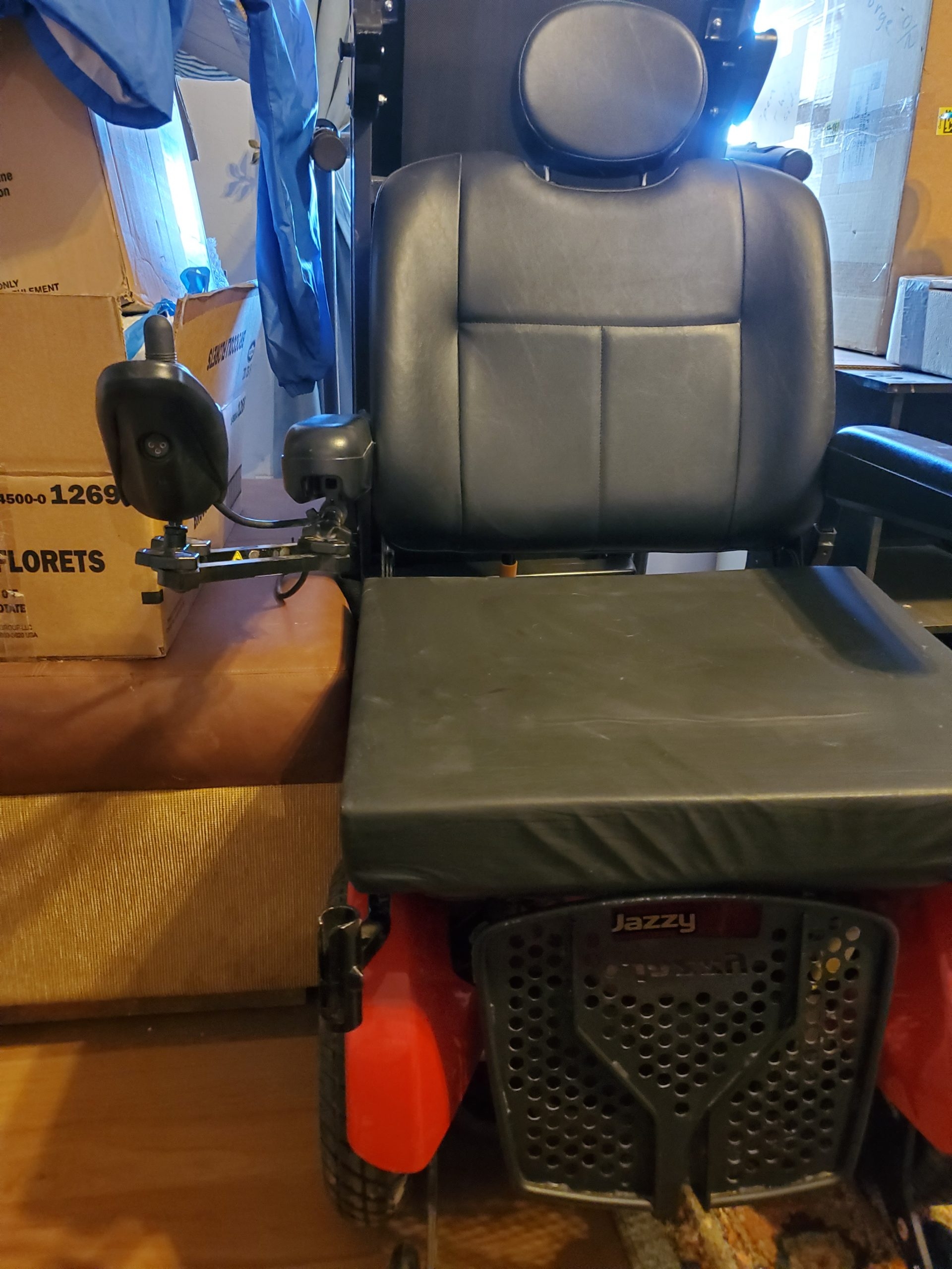 New Jazzy HD electric power chair that was delivered to our mom in November 2019; Our Mom passed away in April 2020 and the chair was rarely used as our Mom was in a rehab hospital for several months.The power chair was measured by the company for standard doorways, it is a bariatric build Jazzy HD adjustable electric chair, with removable legs.... We are located just outside of Los Lunas, New Mexico Our Mom didn't get to use the chair very much due to illness and the chair has been sitting indoors (unused) in our family room since she passed away.. the chair is red with a black seat and padded moveable arms. The stick (like a video game controller) controls are on the right hand arm of the chair It includes the legs wich come off (Mom never used them) and factory charger that was delivered with the chair and is in perfect condition. we will be happy to negotiate a reasonable price. We are motivated sellers ....(we also have 2 other electric chairs that are older ..one is in fair condition and the other is in good condition...they will both 1 be posted shortly but you're welcome to inquire about them as well and we can send pics and talk about a price) Local delivery only. If you're outside the metro area you must arrange your own pick up Thank you very much