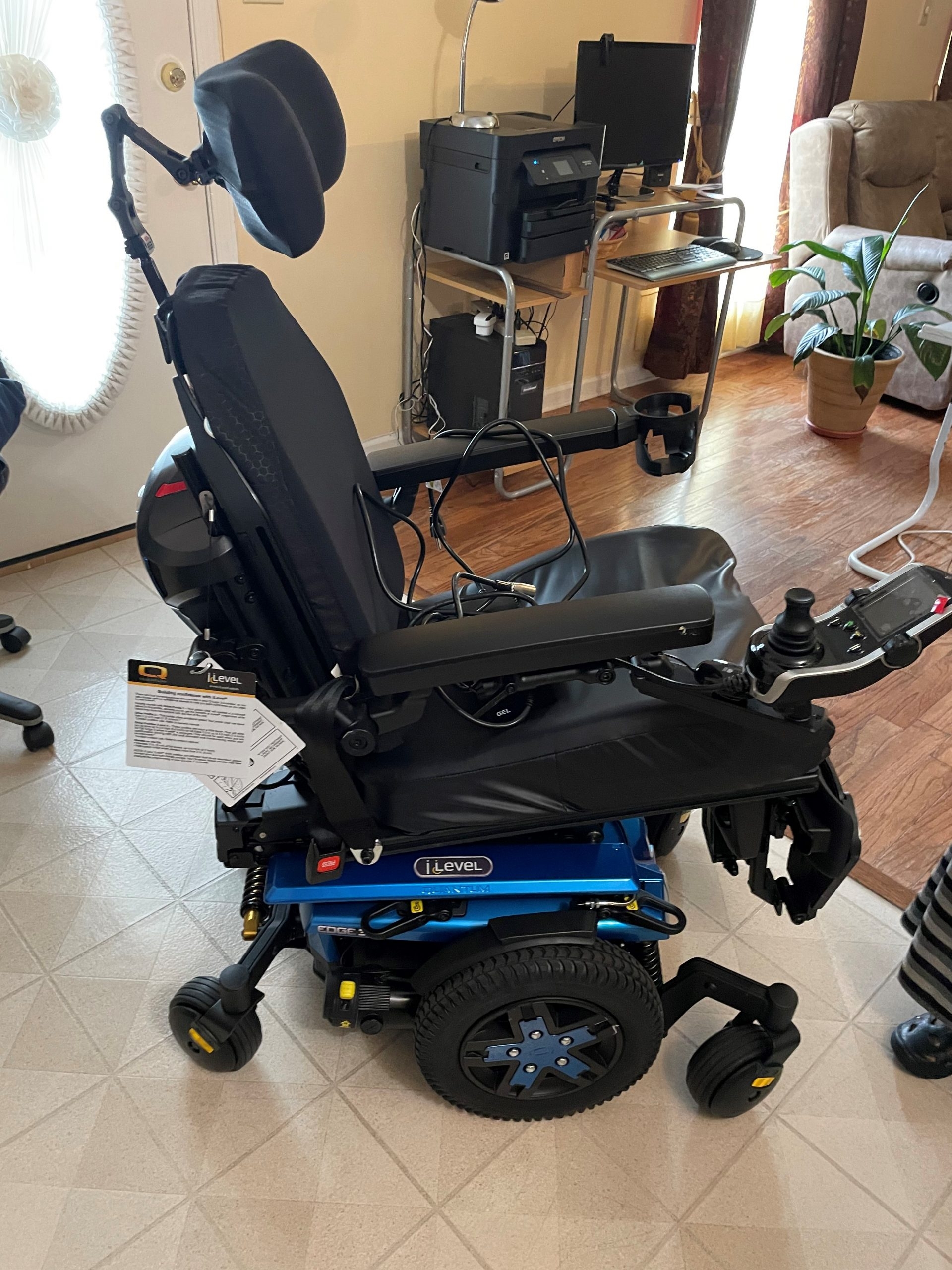This is a new Quantum Edge iLevel wheelchair that my dad purchased this at the end of last year. However, he began to quickly decline before his passing this year and was unable to get much use out of it. It is the Q6 Edge 3 model with 12" of power elevation. It has a TB3 seat that is 20" deep and 17" wide. I would love for someone to get some use out of it and enjoy it. He searched a while to find the perfect one for him and never really got to use it. It comes with charging accessories. Please contact me for an appointment if you would like to view it. Also, if you would like more photos, please feel free to contact me. The Quantum chairs are custom made if you have ever inquired. So, you are really getting this at a steal! Please no scammers. This chair can really help a deserving person establish mobility.