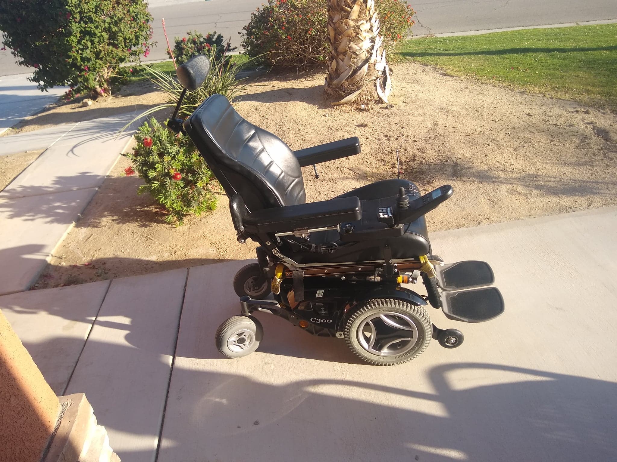 Fully functional Permobil C300 with elevation, recline & tilt, all functions electric and controlled via joystick. This wheelchair have been used as a backup since 2014. We put new Gel batteries in it last fall and have kept it charged ever since, the batteries was around 450$. The wheelchair is available for in person buying in The Coachella Valley in California. The seat has a little wear in the left front side but everything works as it should and hopefully someone who needs the special functions like seat elevation, leg lift tilt & recline can appreciate this nice fully electric Power wheelchair. If you live in the Coachella Valley but don't have the possibility to pick up the chair yourself, I can deliver it to your home. If you live more than 25 miles away I would charge a fee for transportation! Thank you for looking and feel free to ask my any questions. I only receive cash!