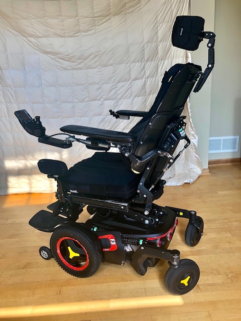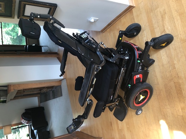 The F3 Corpus offers the smallest footprint of the F-series front wheel drive power wheelchairs. Its compact size and agility allows users to easily maneuver in and out of tight spaces. The optimized battery weight distribution, lower center of mass and fully adjustable ComfortRide suspension improve stability while traversing inclines or declines. Experience the enhanced functionality of the F3 by combining outstanding chassis performance with Permobil’s industry leading Corpus Seating System offering 12” of ActiveHeight and up to 30º of ActiveReach forward tilt technology.