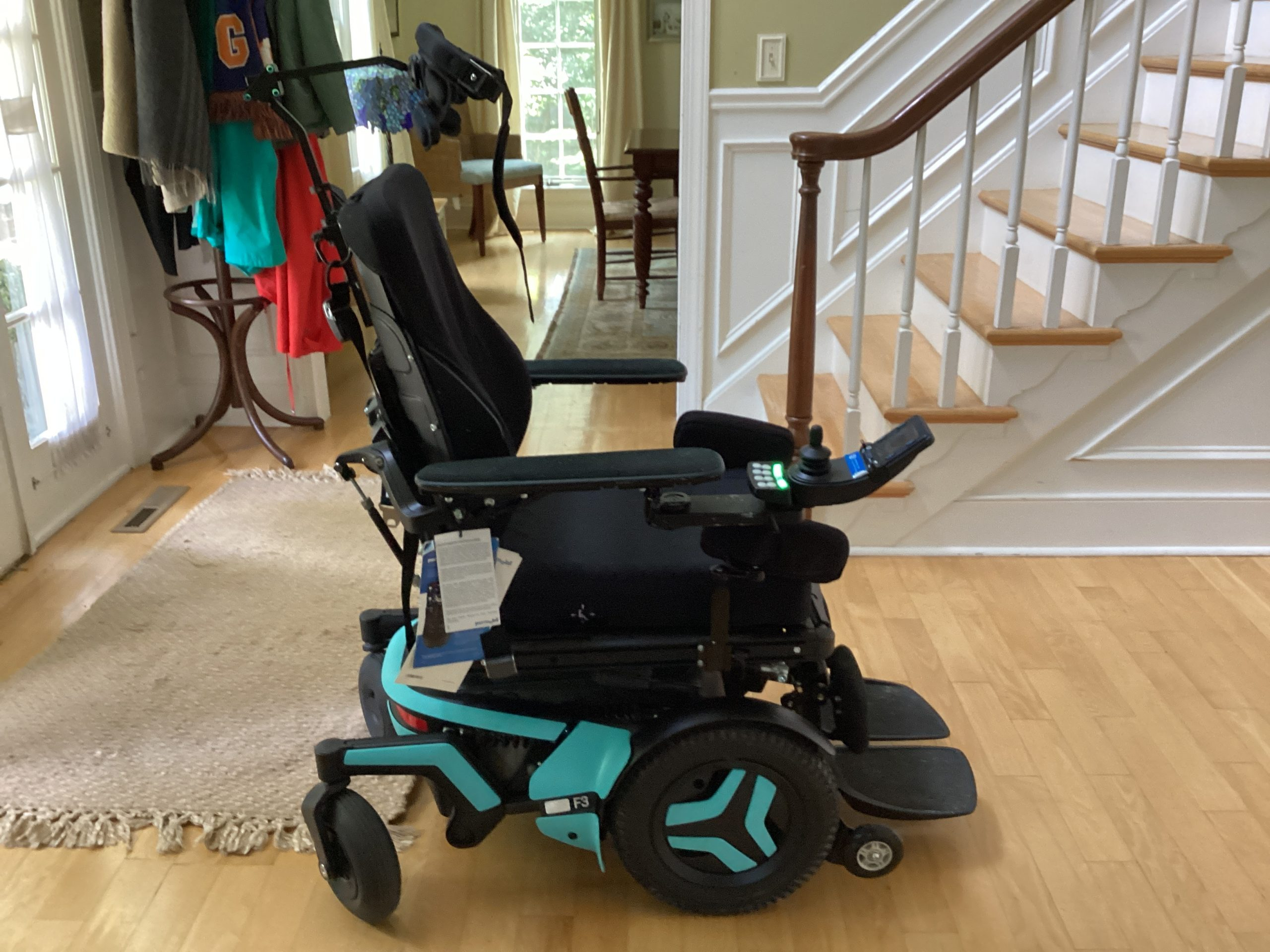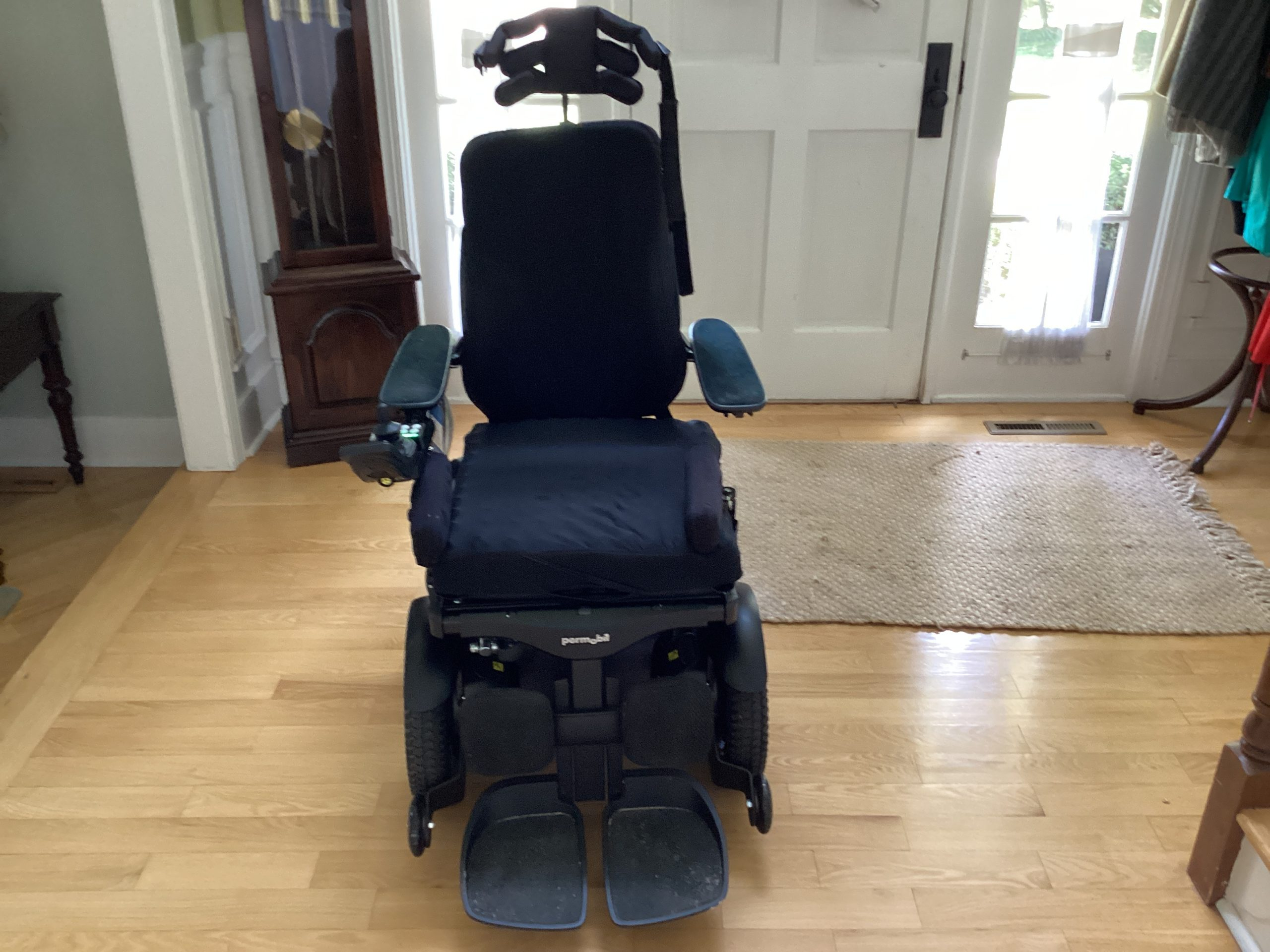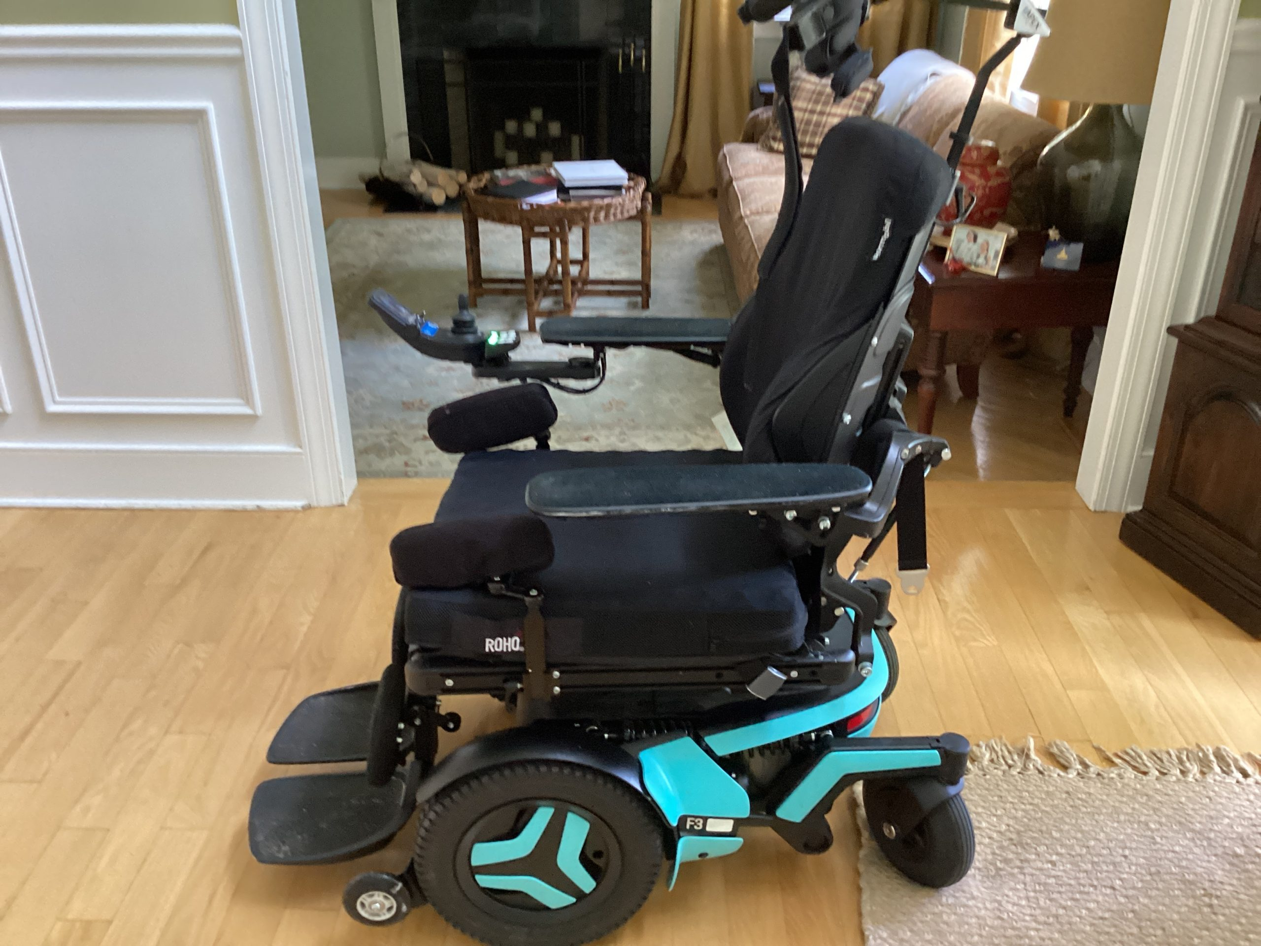 Permobile F3 Corpus Wheelchair, purchased in January 2023 and used through May 2023. Tilt is place, with lift and leg rise. Black and teal blue and used mostly indoors. Very low mileage and in like new condition. The F3 Corpus offers the smallest footprint of the F-Series front wheel drive power wheelchairs. Its compact size and agility allows users to easily maneuver in and out of tight spaces. The optimized battery weight distribution, lower center of mass and fully adjustable ComfortRide suspension improve stability while traversing inclines or declines. Experience the enhanced functionality of the F3 by combining outstanding chassis performance with Permobil’s industry leading Corpus Seating Systemoffering 12” of ActiveHeight and up to 30 degree of AvtiveReach forward tilt technology.