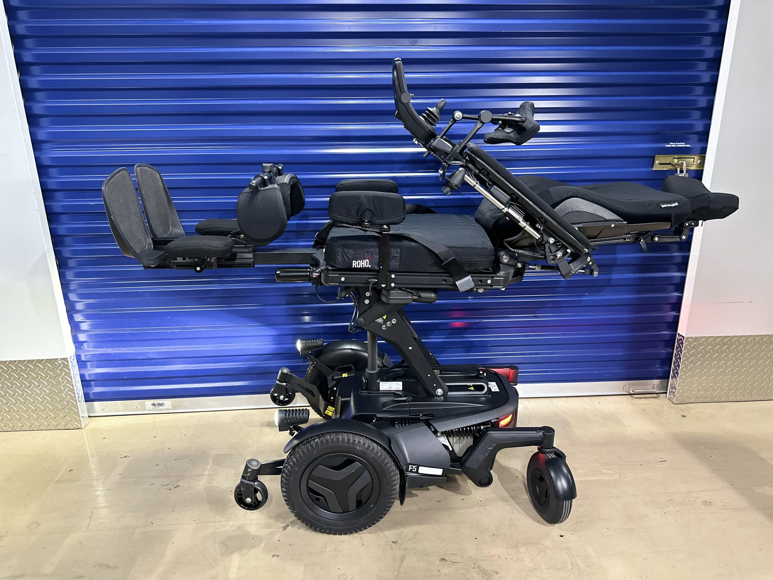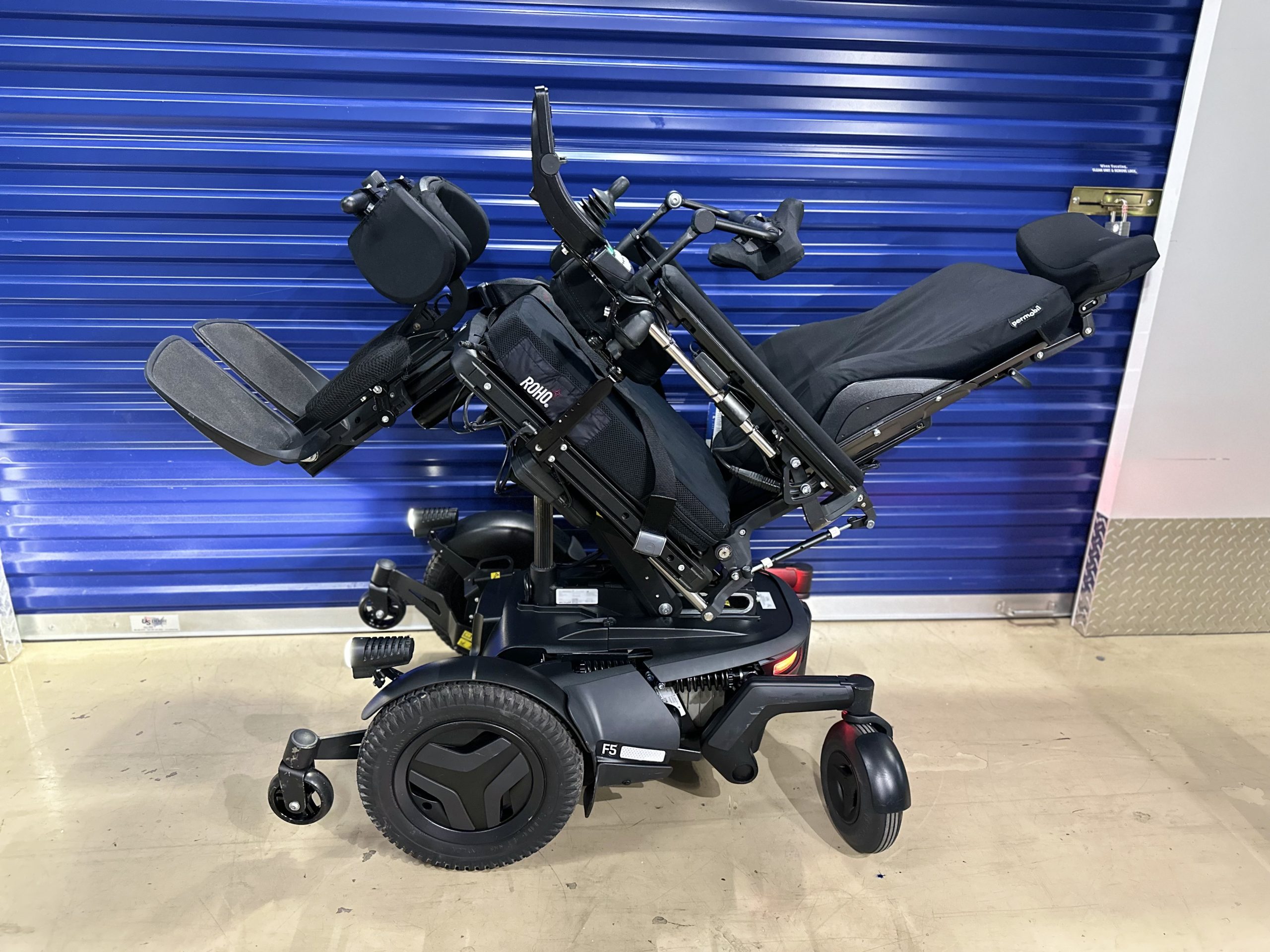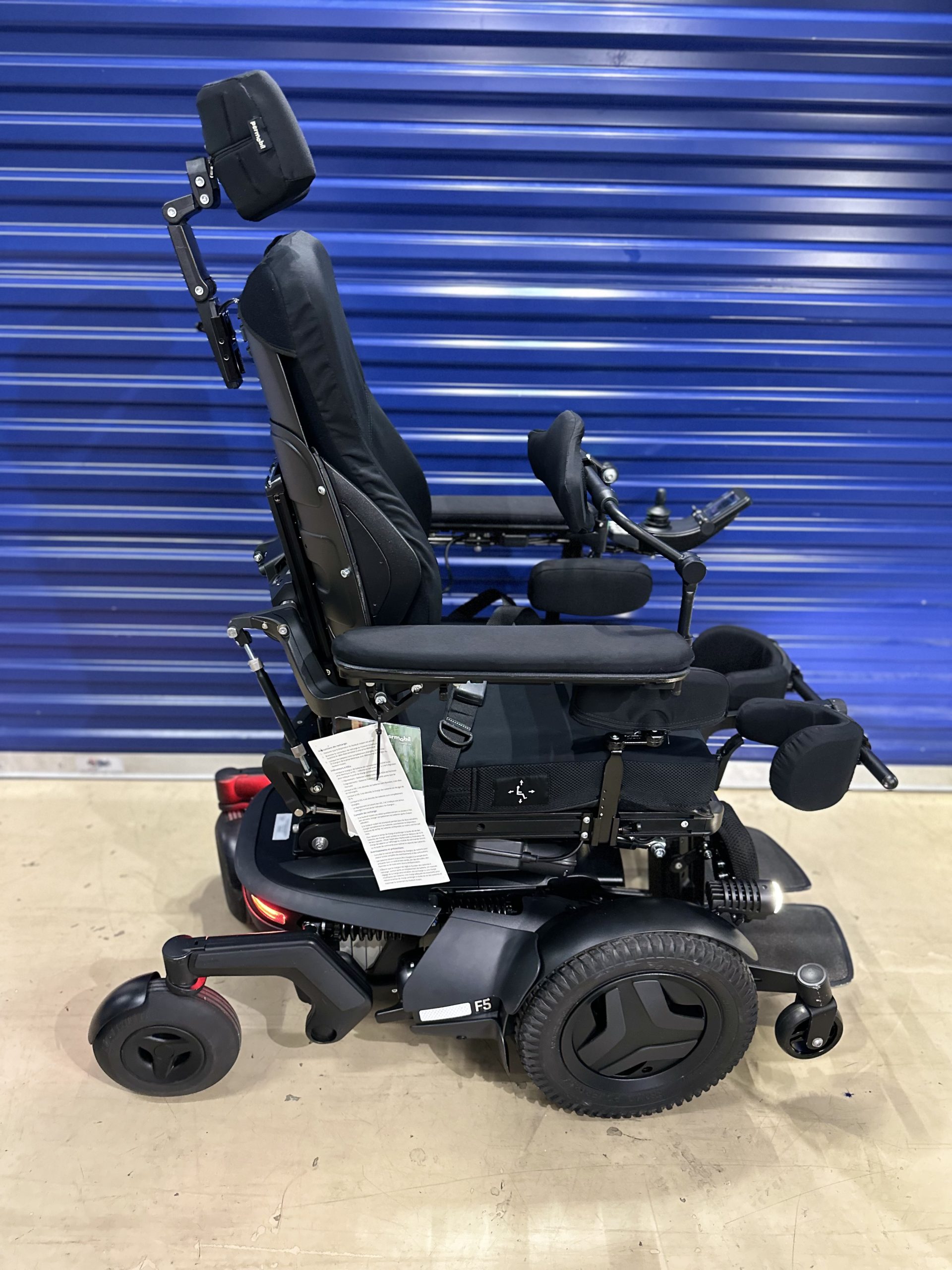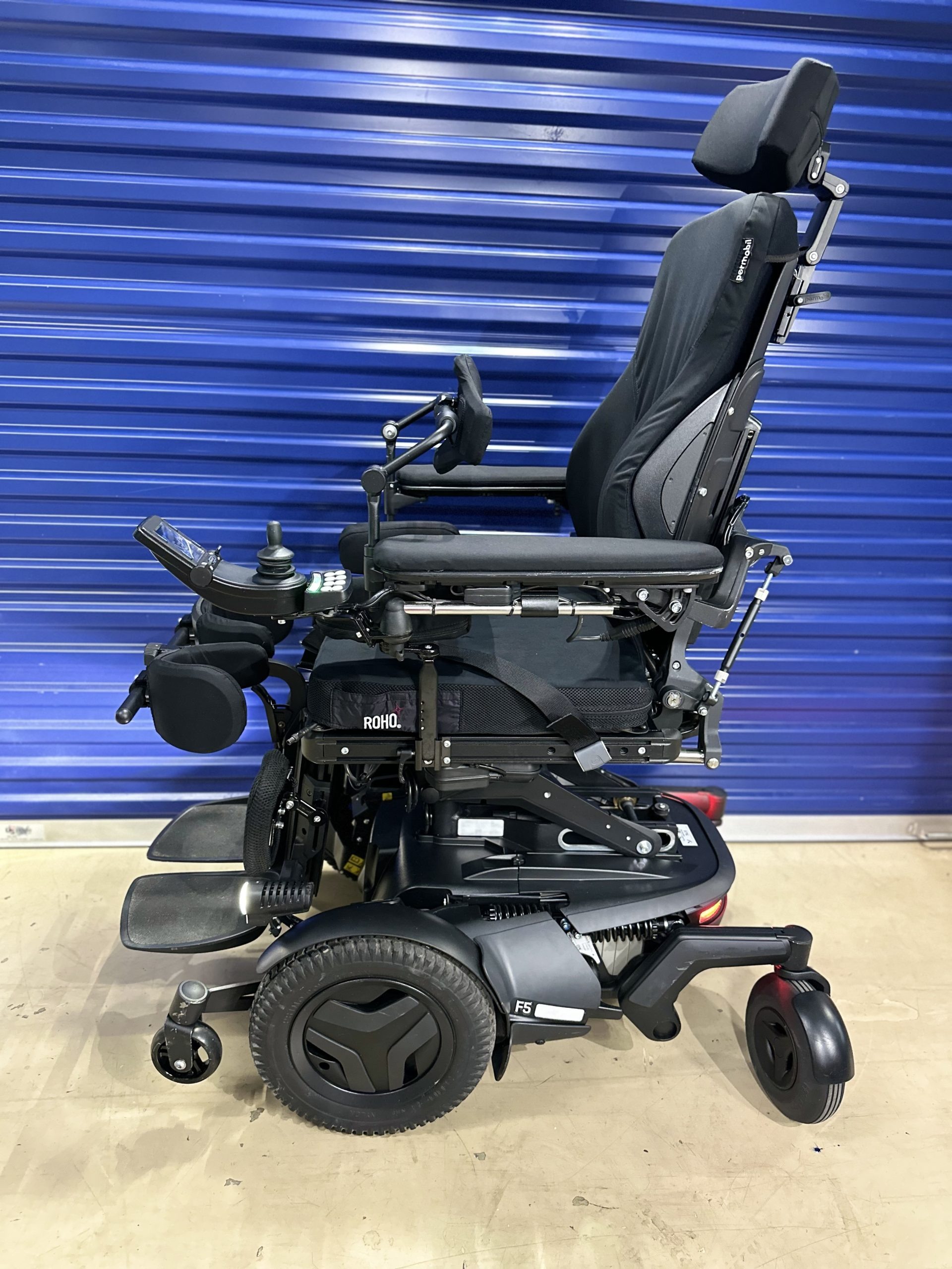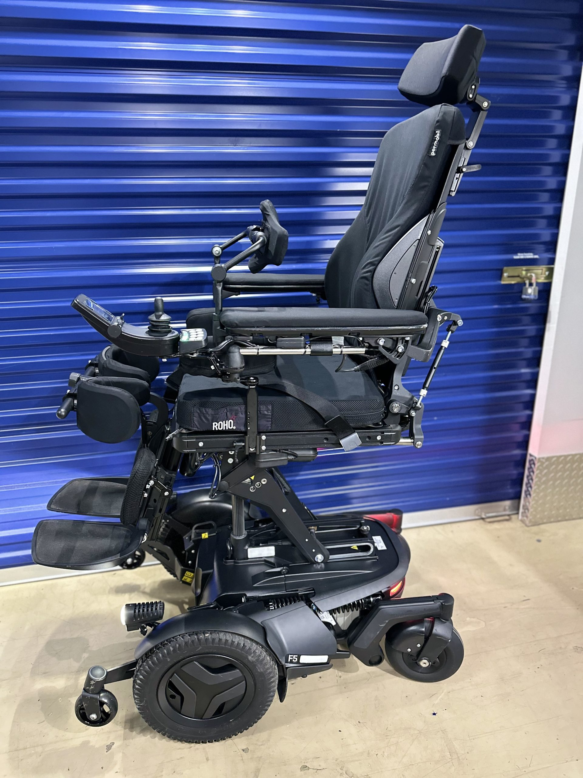 2022 Permobil F5 VS Corpus Power Wheelchair with ONLY 12 MILES OF USE..... this chair comes with brand new batteries. It comes with all seven seating functions including vertical standing. This chair is loaded with accessories and upgrades, such as gel armrest pads, factory full light kit, roho air cushion and lateral thigh pads.