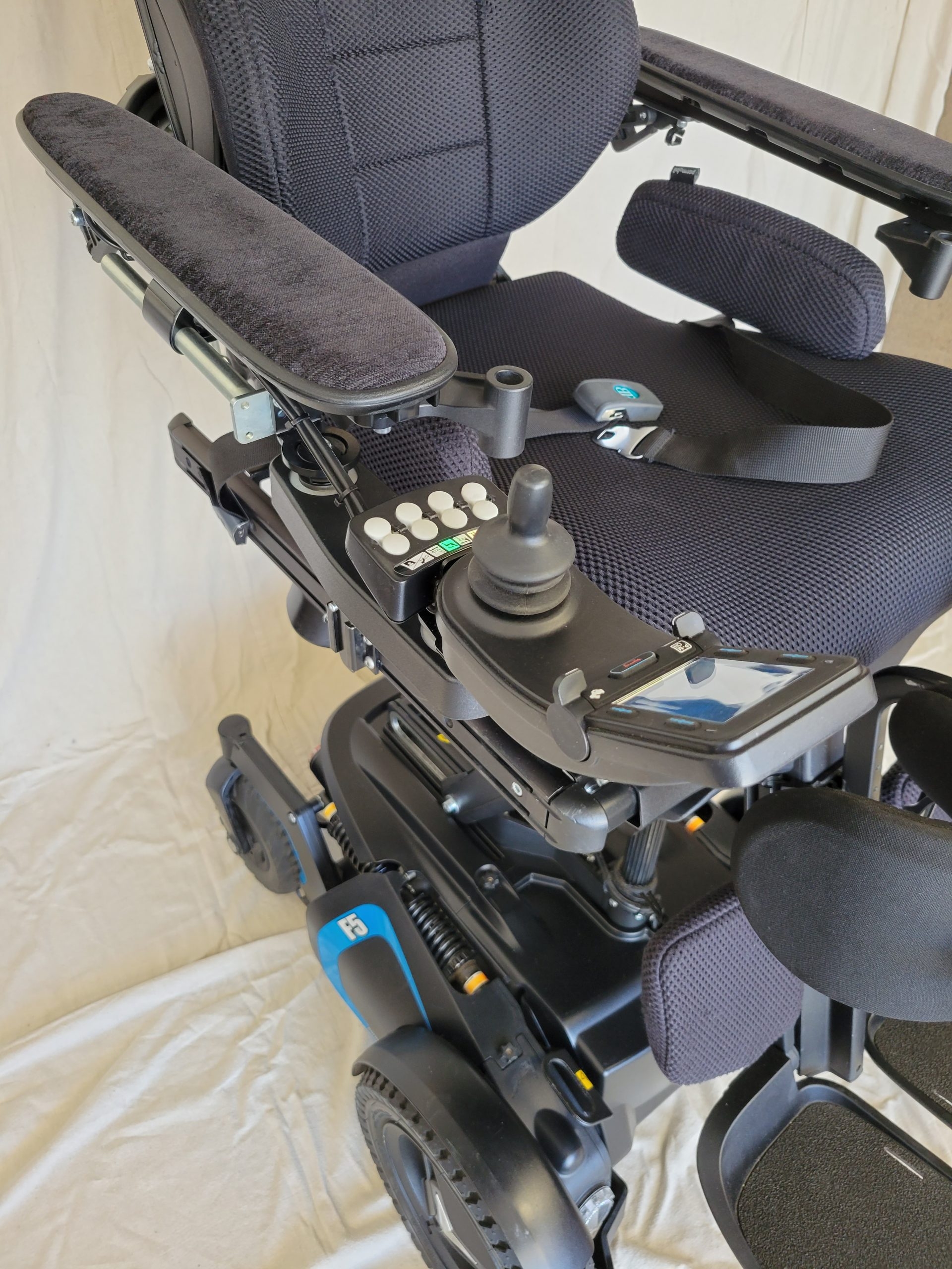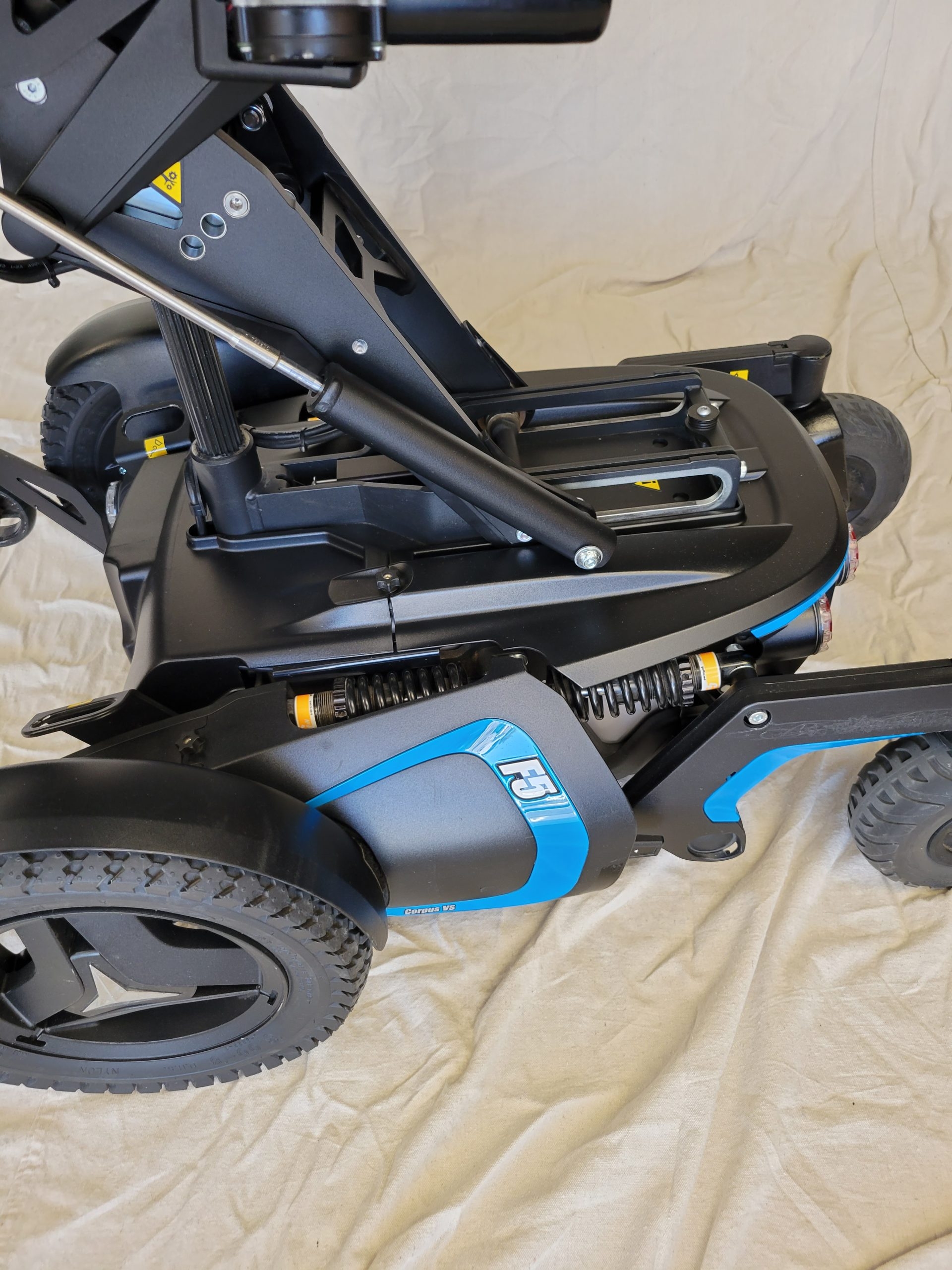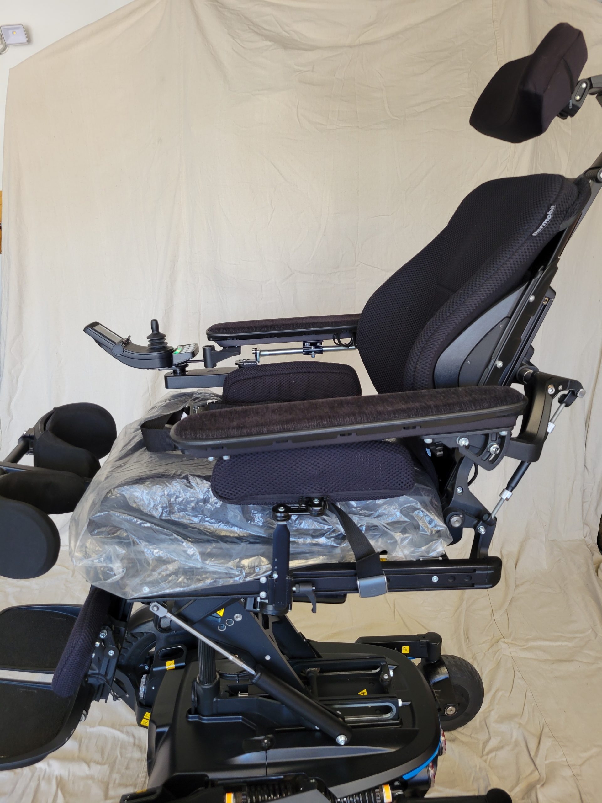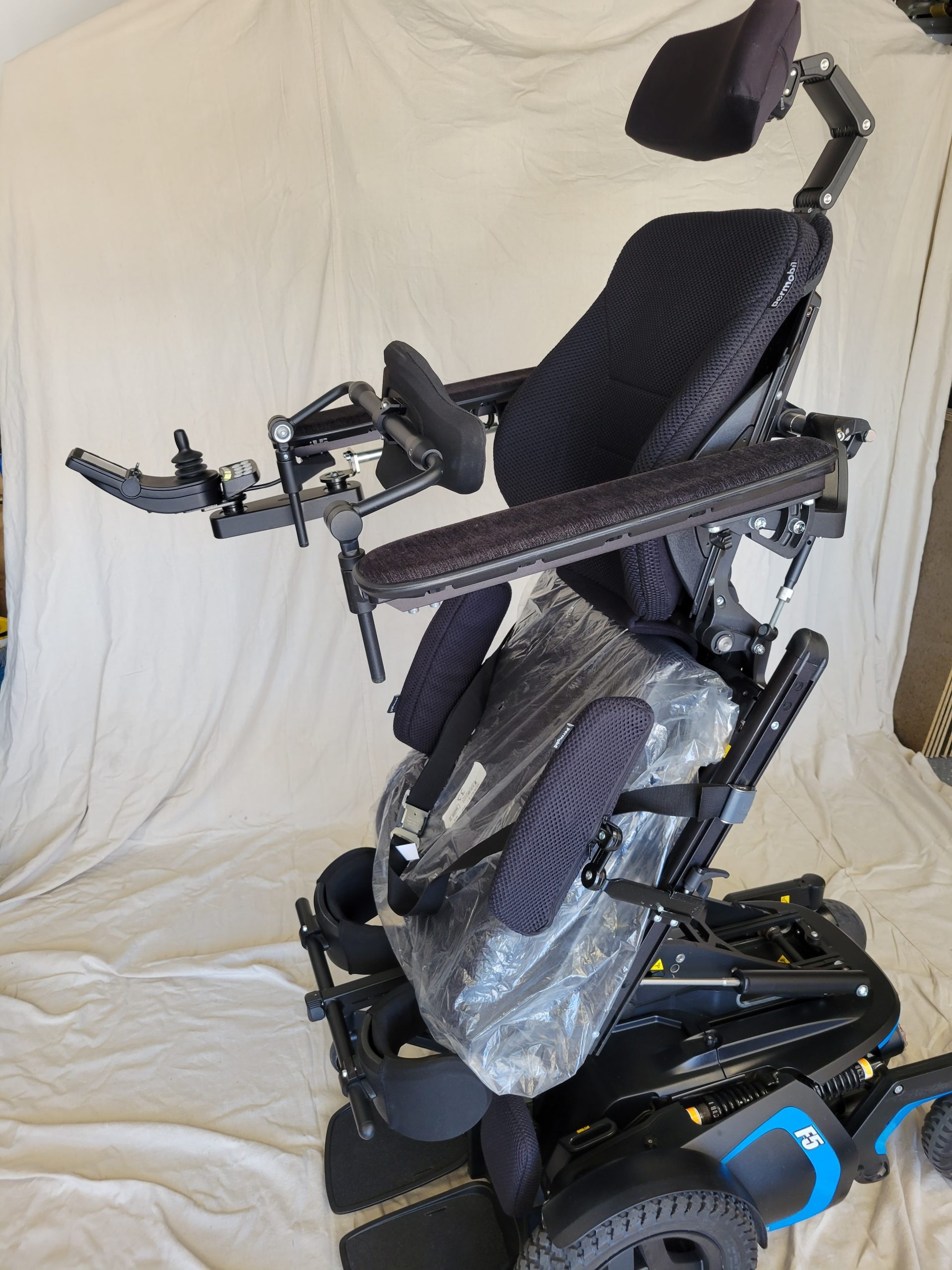 Permobil F5 Corpus VS standing wheelchair features an innovative new way of standing, allowing you to choose from two positions, Sit-to-stand or Lay-to-stand. Giving you greater independence and freedom, the F5 Corpus VS features fully independent suspension and automatic, self-adjusting support wheels, providing a new level of comfort and stability, especially when you stand and drive, indoor or outdoor.
