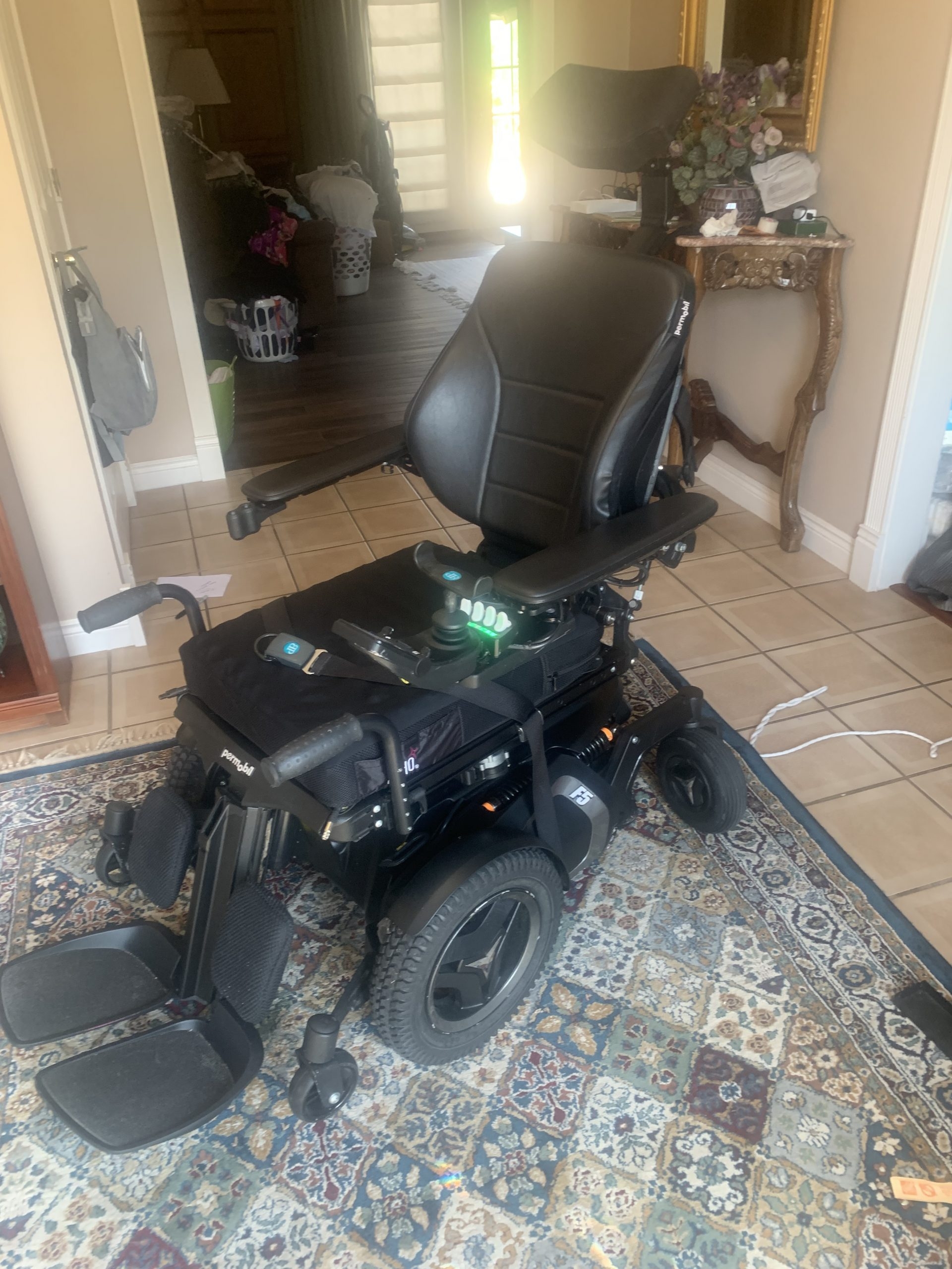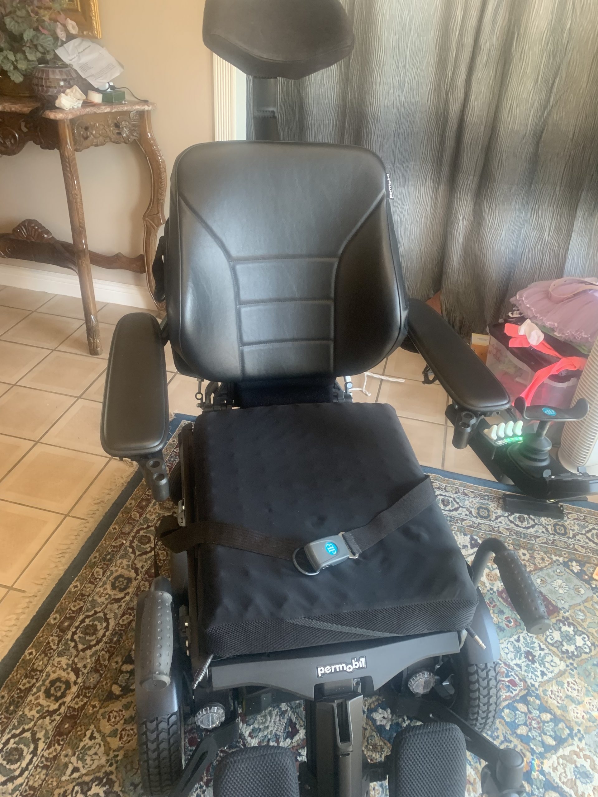 Permobil F5 Corpus VS Standing Wheelchair, 2018, Only driven 81 miles. Exc. condition! Serviced and ready to go on 8-22-22 by National Seating and Mobility. Brand new batteries installed 8-22-22. Phantom Gray Trim kit and Rim color. Roho seating and Roho smart check device included. This is a fully standing chair, adjustable seat adjusts to bar stool heights for variety. Makes it easy to go in to any pub, bar, restaurant, etc and enjoy ease of finding a seat or reach for high items inside the home such as cabinets, etc. Comes with attachable glass heavy computer tray /work desk. Permobil Joystick . This is a top of the line, fully loaded, well kept chair. It comes with a Permobil smart charger. Local pickup or buyer to arrange shipping. Permobil company has confirmed they will assist in buyer setting the chair settings to new owner’s needs for fit. Includes reattachable adaptor for the bottom of chair to lock in to van.