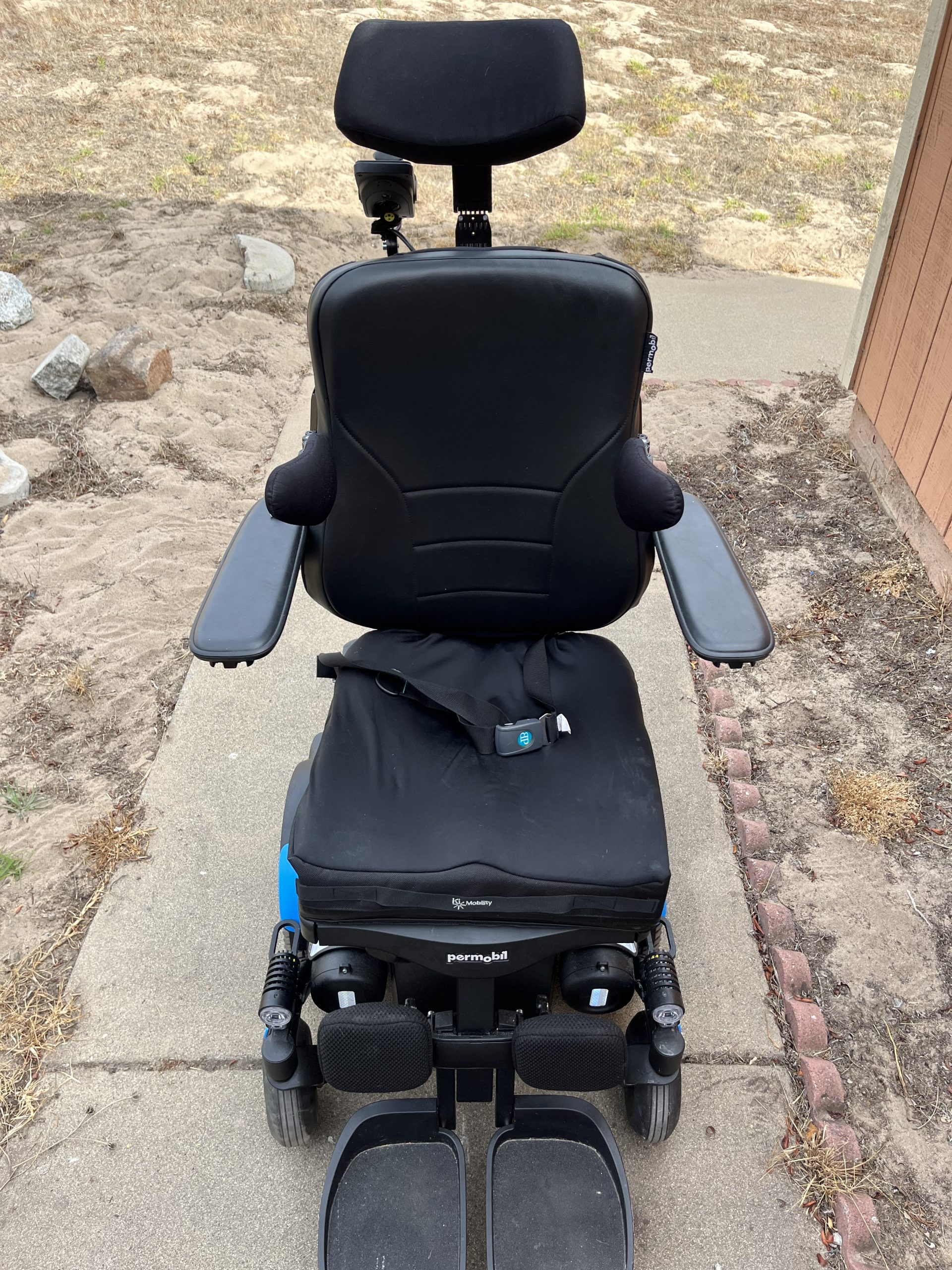 The PERMOBIL M3Base Corpus -M3MPO wheelchair was bought in April 2023 and was only used until June 2023. It is extremely well maintained, still under warranty, and comes with original manuals and accessories. It comes with two EZ-ACCESS foldable ramps.