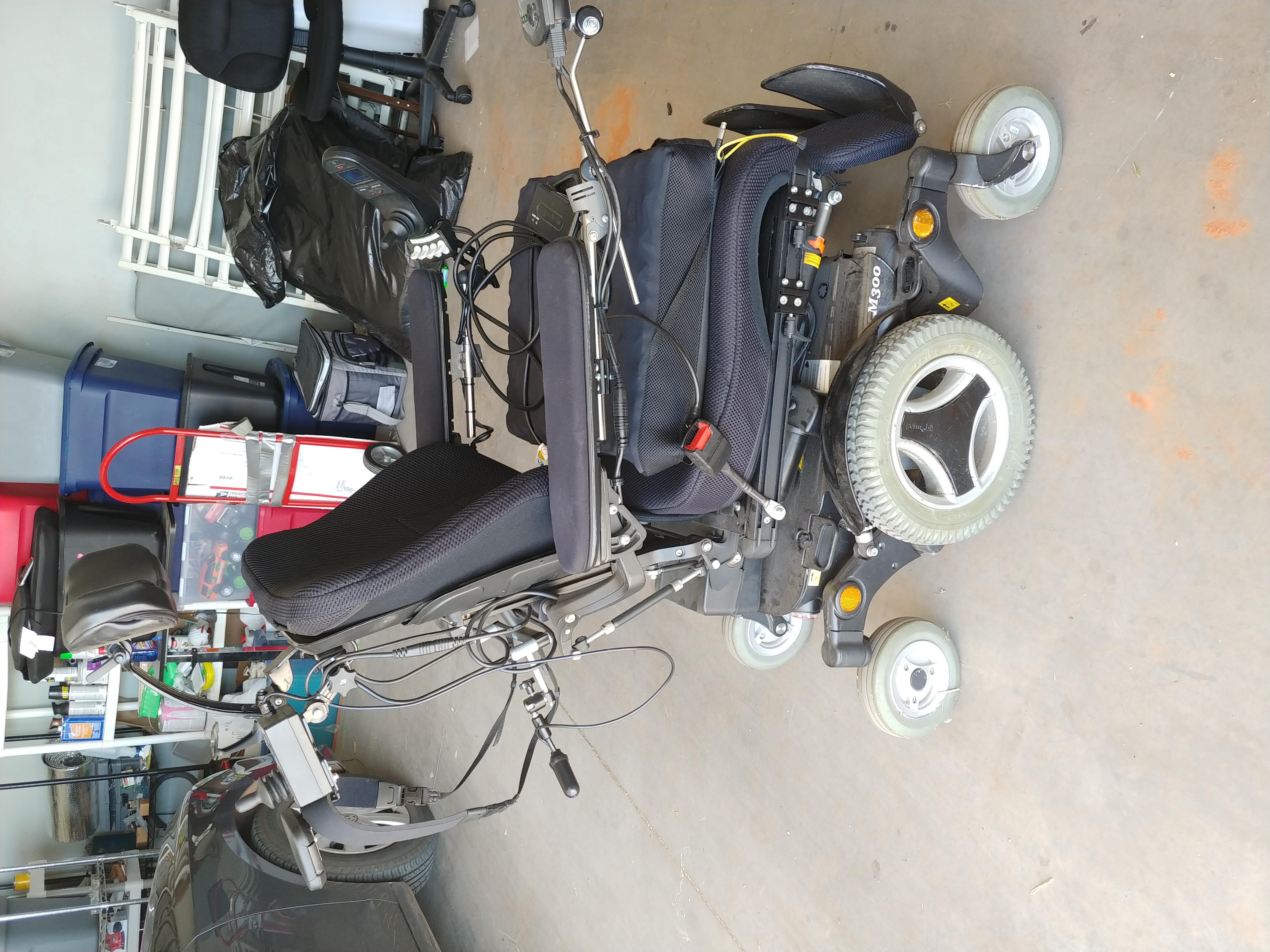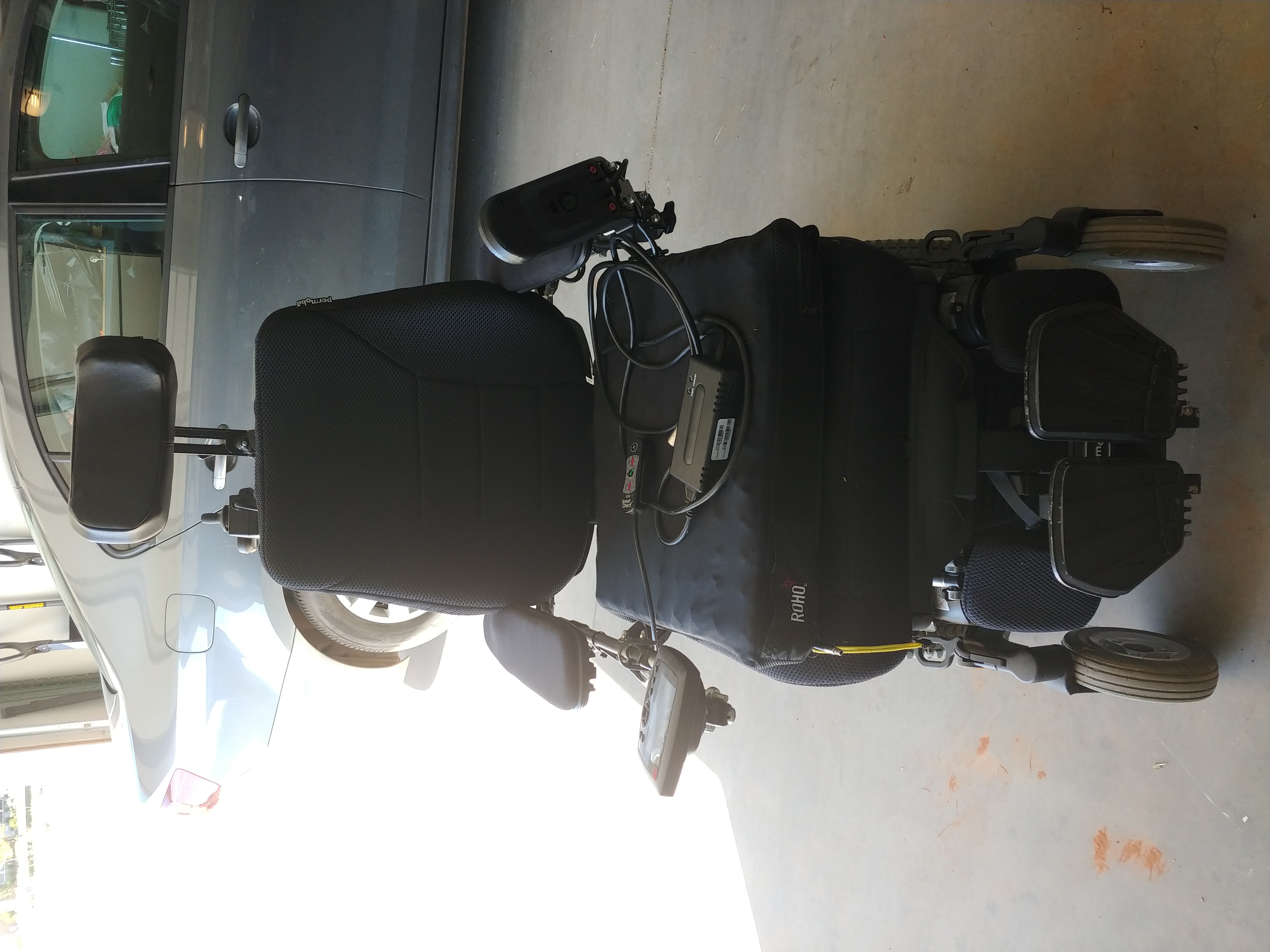 This chair has all the bells and whistles. It has front joystick controlls, walk behind joystick controls. It has all the tilt, recline and lift features you would ever need. Was not used much at all but has some minor boo boos due to me not knowing how to control it moving it in and out of the van. We use to transport my father to his VA appointments once every 90 days. Look at the last 2 pictures. It does not affect the operation of the chair at all. It's just cosmetic. It has not been used since 2018 other than when I power it up to move it from one side of my garage to the other. We will make arraingments to have shipped out of state but BUYER will have to pay for that additional cost. Hope this can really help someone. It even has a special sit air cushion. If you have questions please let me know. |