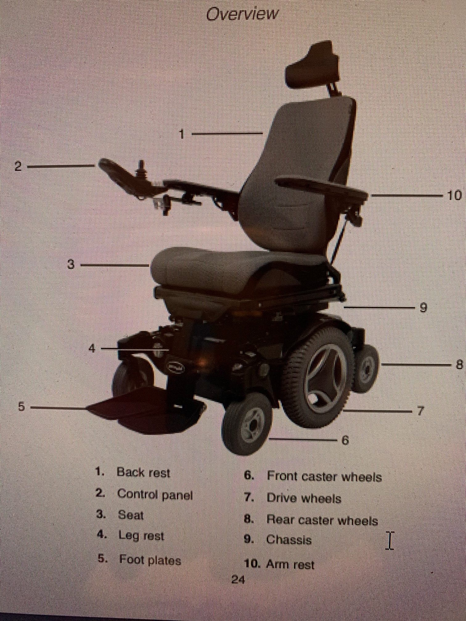 wheelchair’s electronics, power supply and drive functions. The seat consists