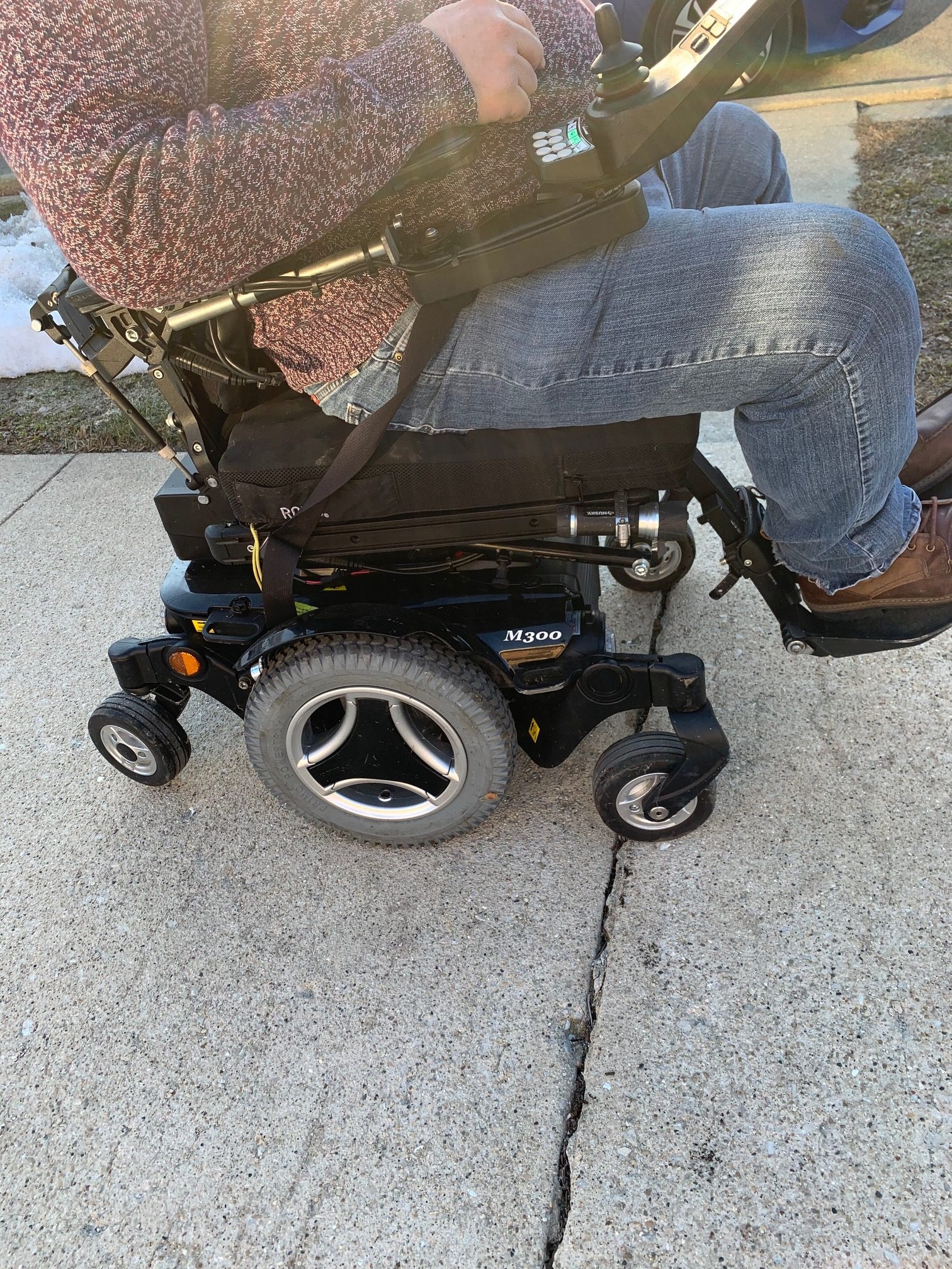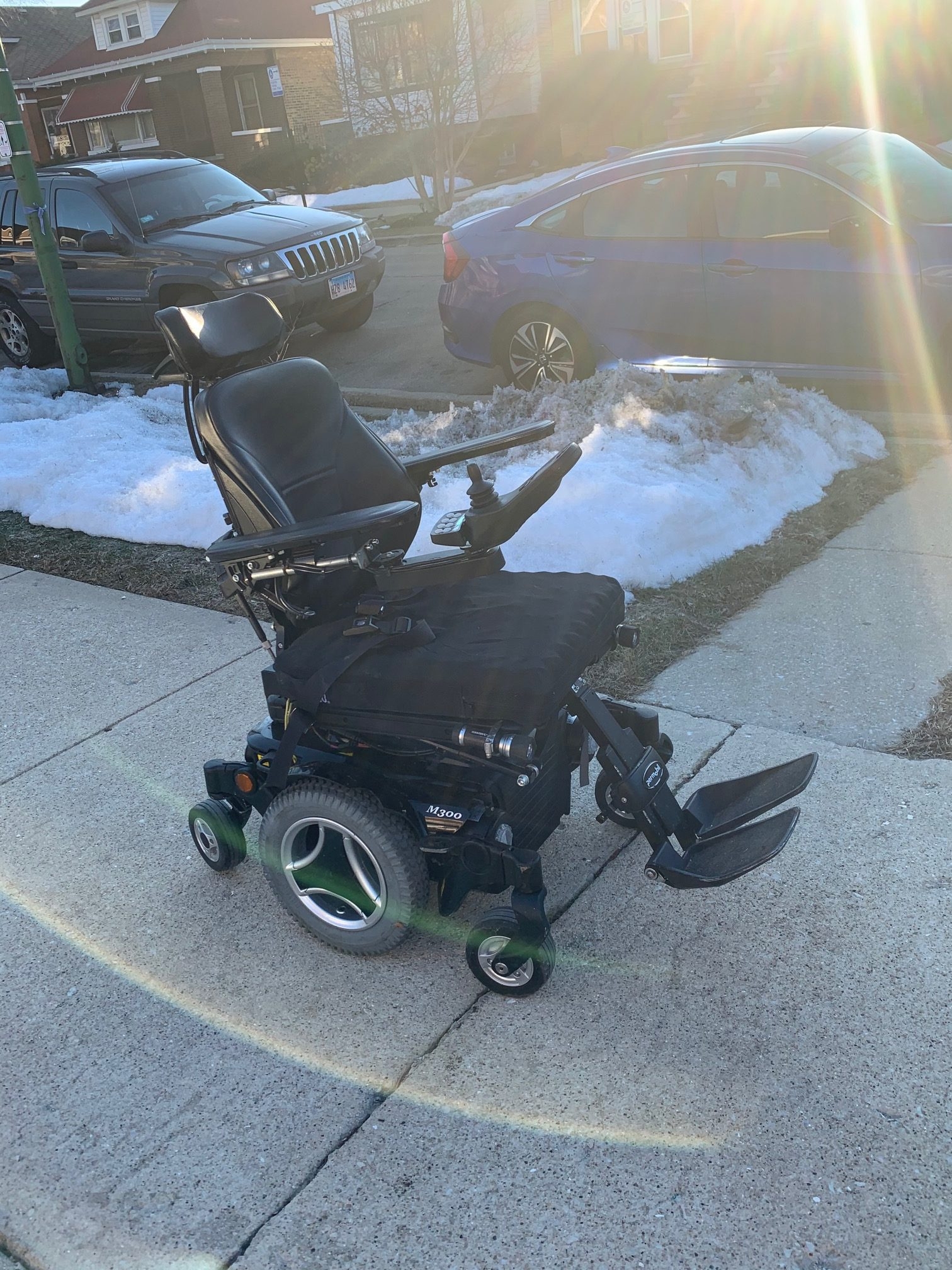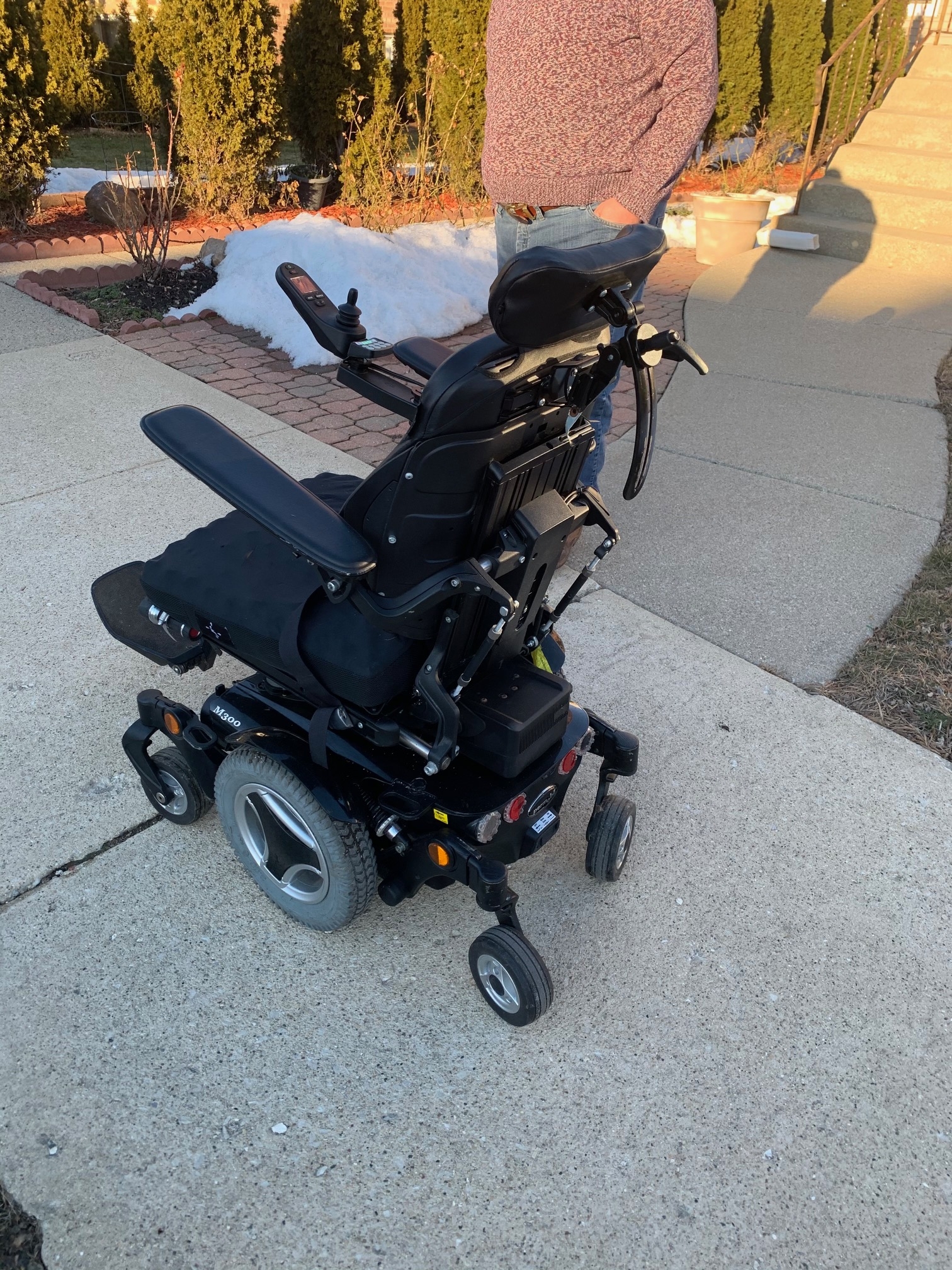 Used Permobil M300 in good condition. Has a few scratches. All features working properly. Battery charger included. It runs up to 7 miles per hour. My brother used it to be able to go up ramps for transportation for the city's PACE system. It's strong enough to navigate city streets, even in inclement weather. It operates with a joy stick with minimal effort and simplicity of use. It was used for a couple of years by my brother to travel to dialysis and stores.