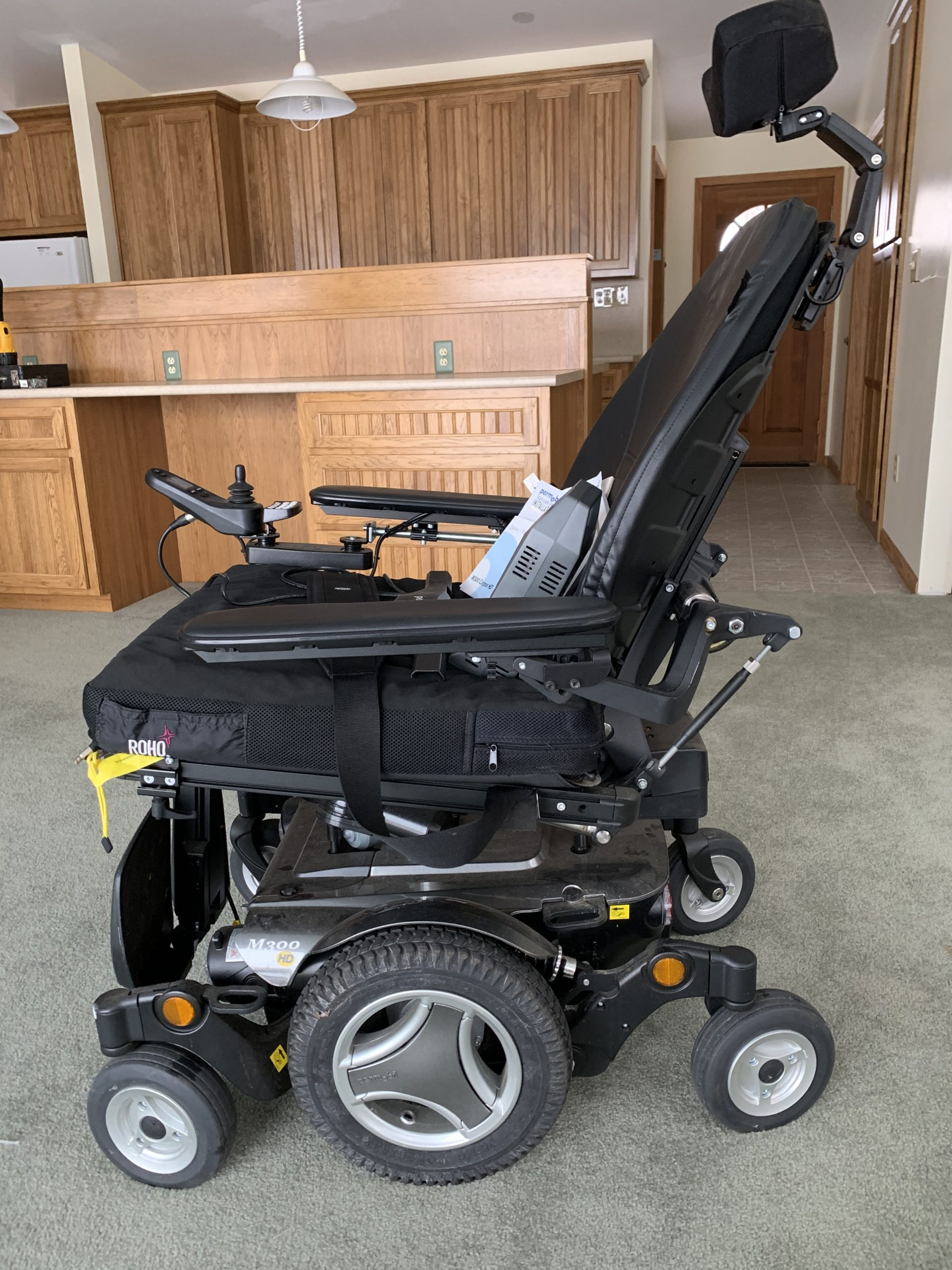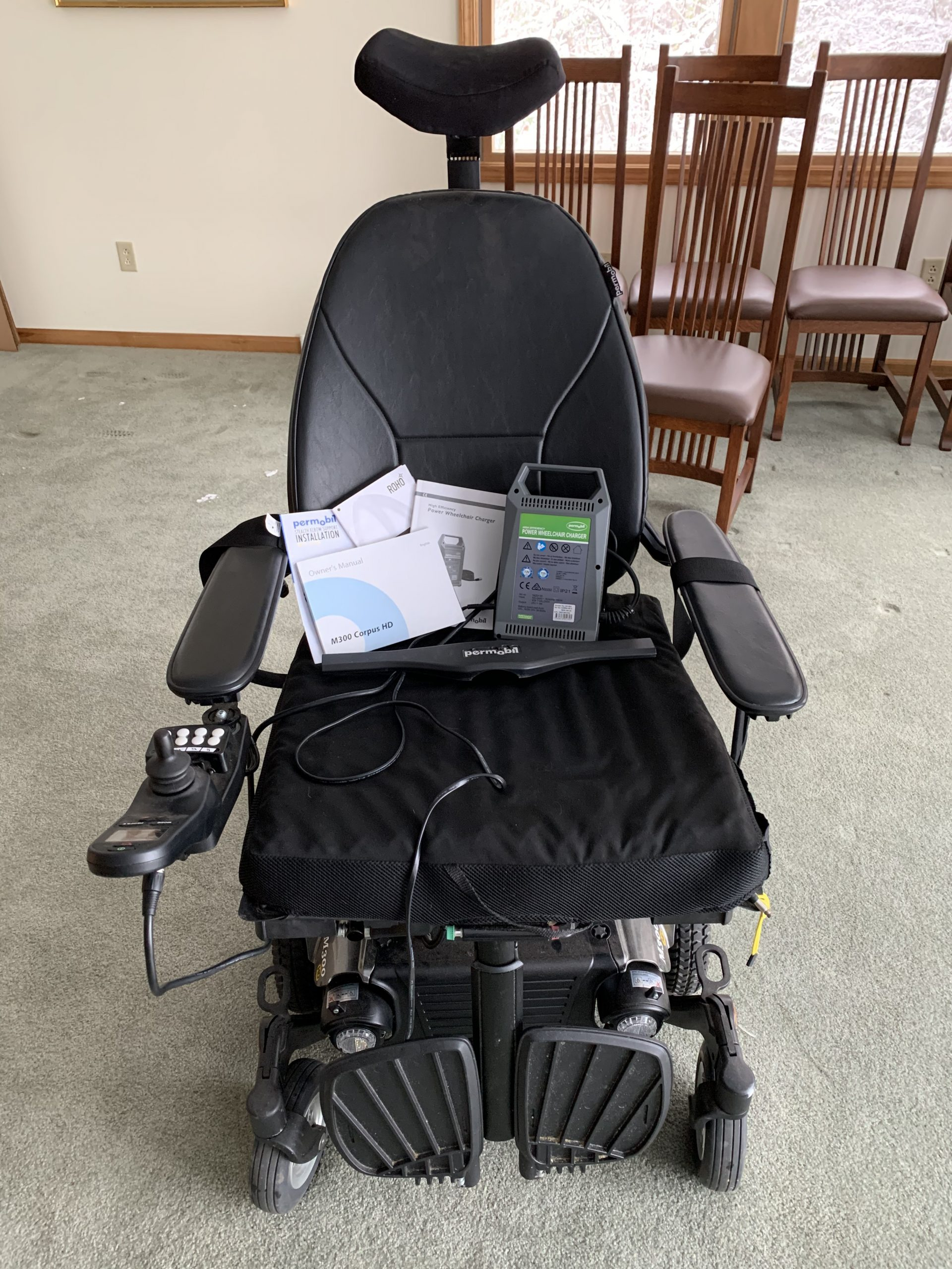 Permobil M300HD black with a grey cover. $1800 or best offer. Heavy Duty Mobility Chair rated for 450 lbs. Used for only a few months. Only 41 miles on it. It has been in storage for 4 years. Chair is like new. Raises up and reclines. Includes charger. The batteries are original from 2016. Local pickup or I can deliver a few hundred miles from Plymouth, Michigan for a negotiated fee.