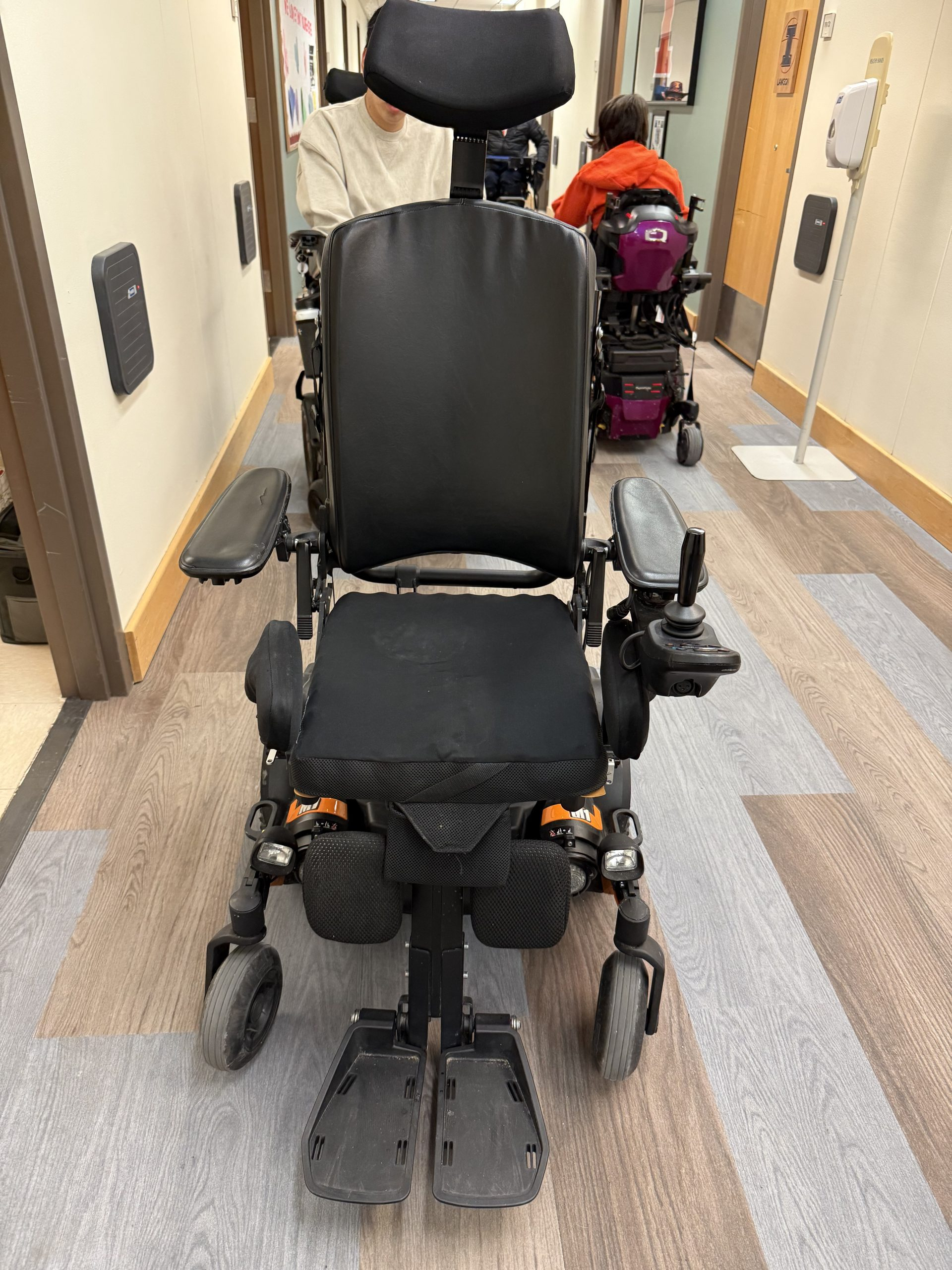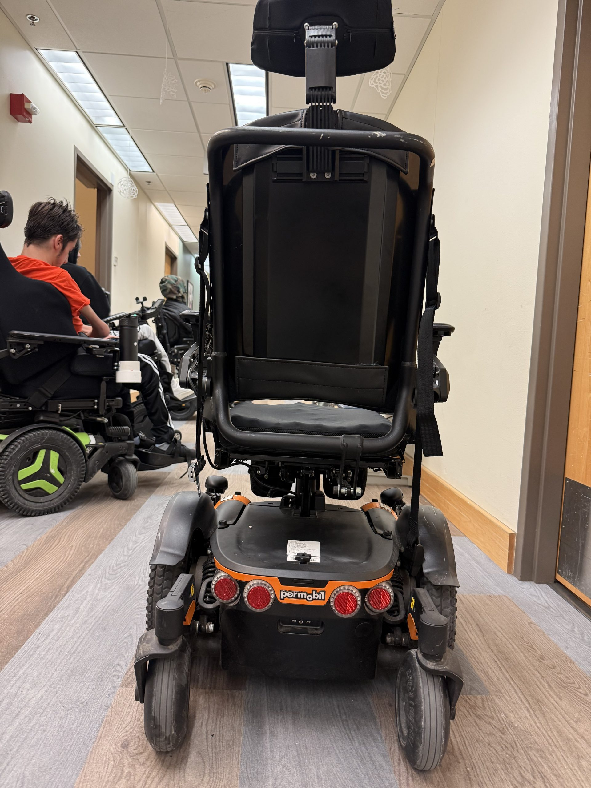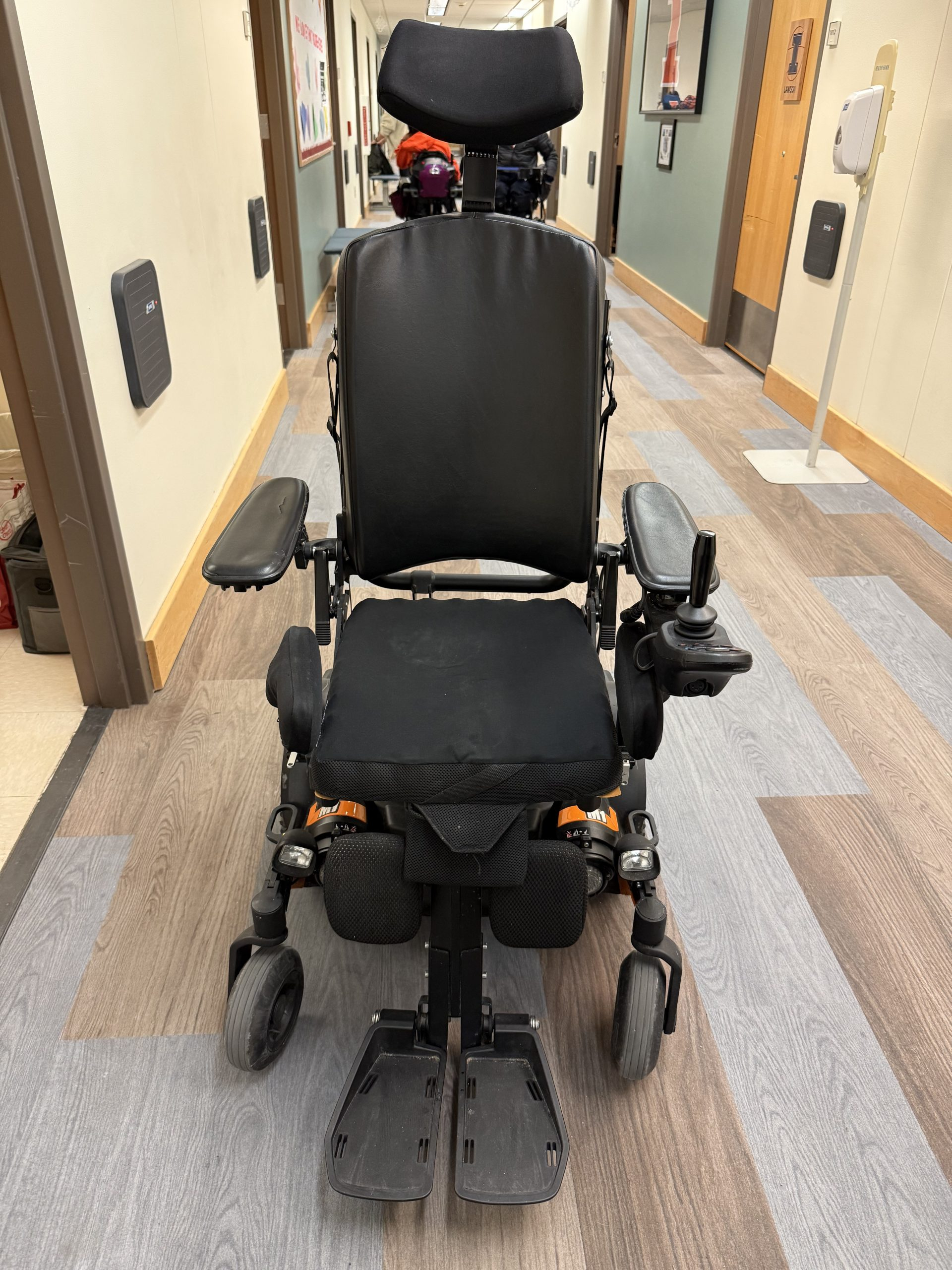 This M1 wheelchair is part of the premium Permobile brand and functions as a hybrid (somewhere between a light and heavy) wheelchair for individuals with all kinds of mobility impairments. Condition: used (few scrapes) but no impact on functionality