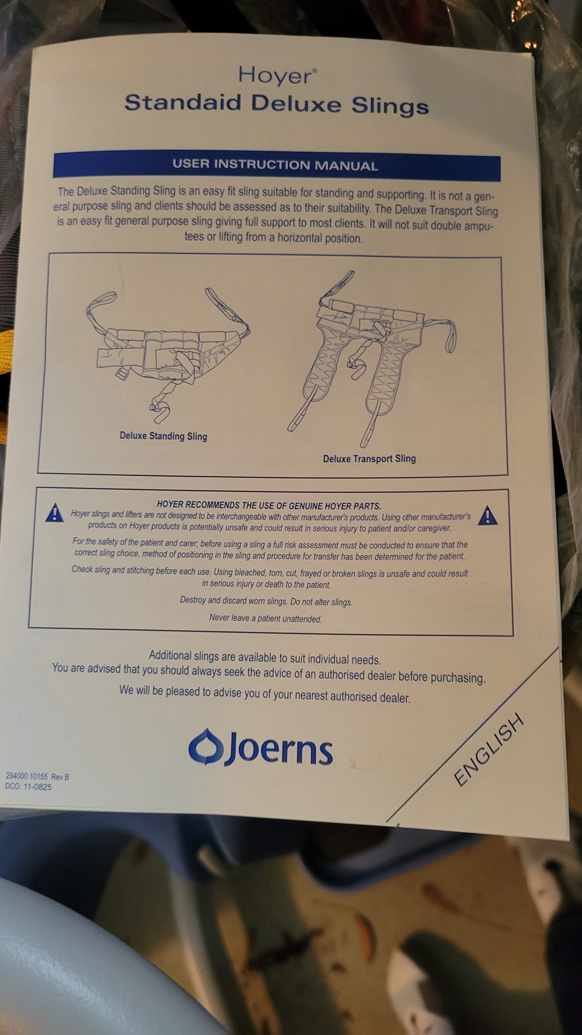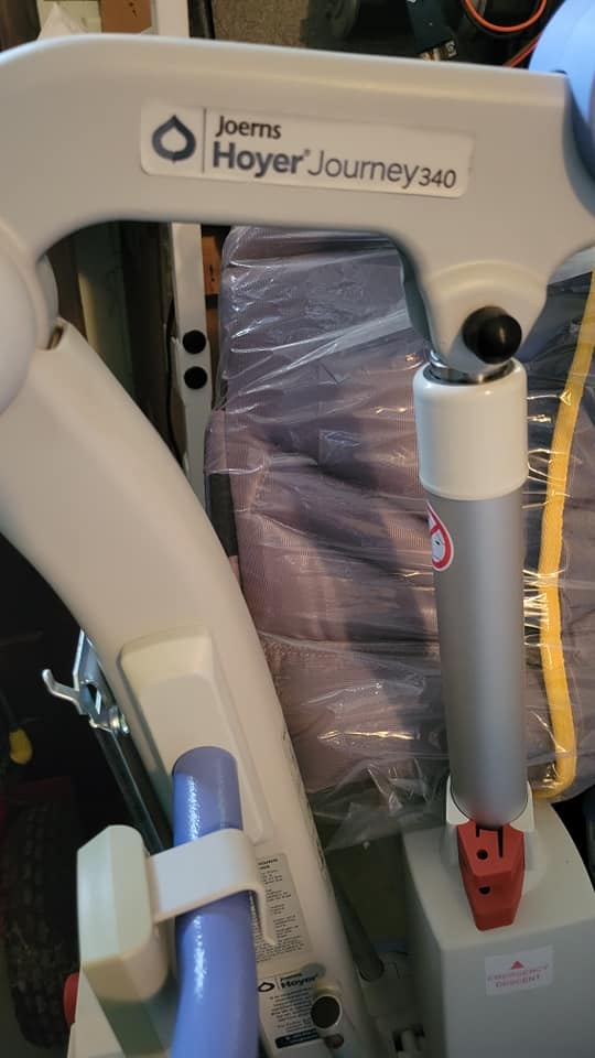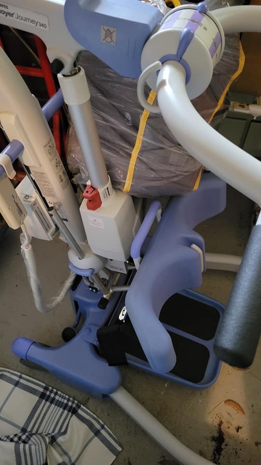 From Hoyer's website: The Hoyer Journey 340 Lift is designed with functionality and practicality in mind. Its folding design allows this lift to stand, unaided, while also making it easy to store and transport. The lift's compact size allows you to easily maneuver it through tight spaces, and this lift is also lightweight to make it easier to operate. A bump guard helps to protect surrounding furniture from scrapes, and the Hoyer Journey only requires a 4.3” clearance, allowing it to easily fit underneath furniture.