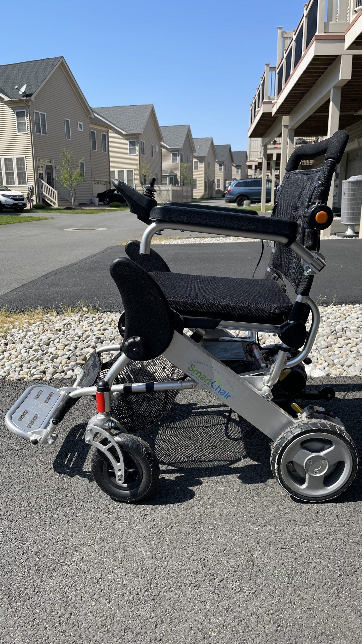 ***Local Only*** Wheelchair is in excellent condition and can support up to 253 lbs. The speed can be adjusted and maneuvering is made simple and easy with the joystick. It can also be used as a manual wheelchair if the battery runs out. The display has a battery charge indicator and a horn button. The arms move up and down for easy access to the seat. The backrest is adjustable and the footrest folds away for ease of getting on and off the chair. The wheelchair folds down for easy portability and storage. Comes with a charger, cup holder, net storage, and owner’s manual. Pick up in Northern Virginia about 15 minutes from Washington Dulles Airport (Ashburn).