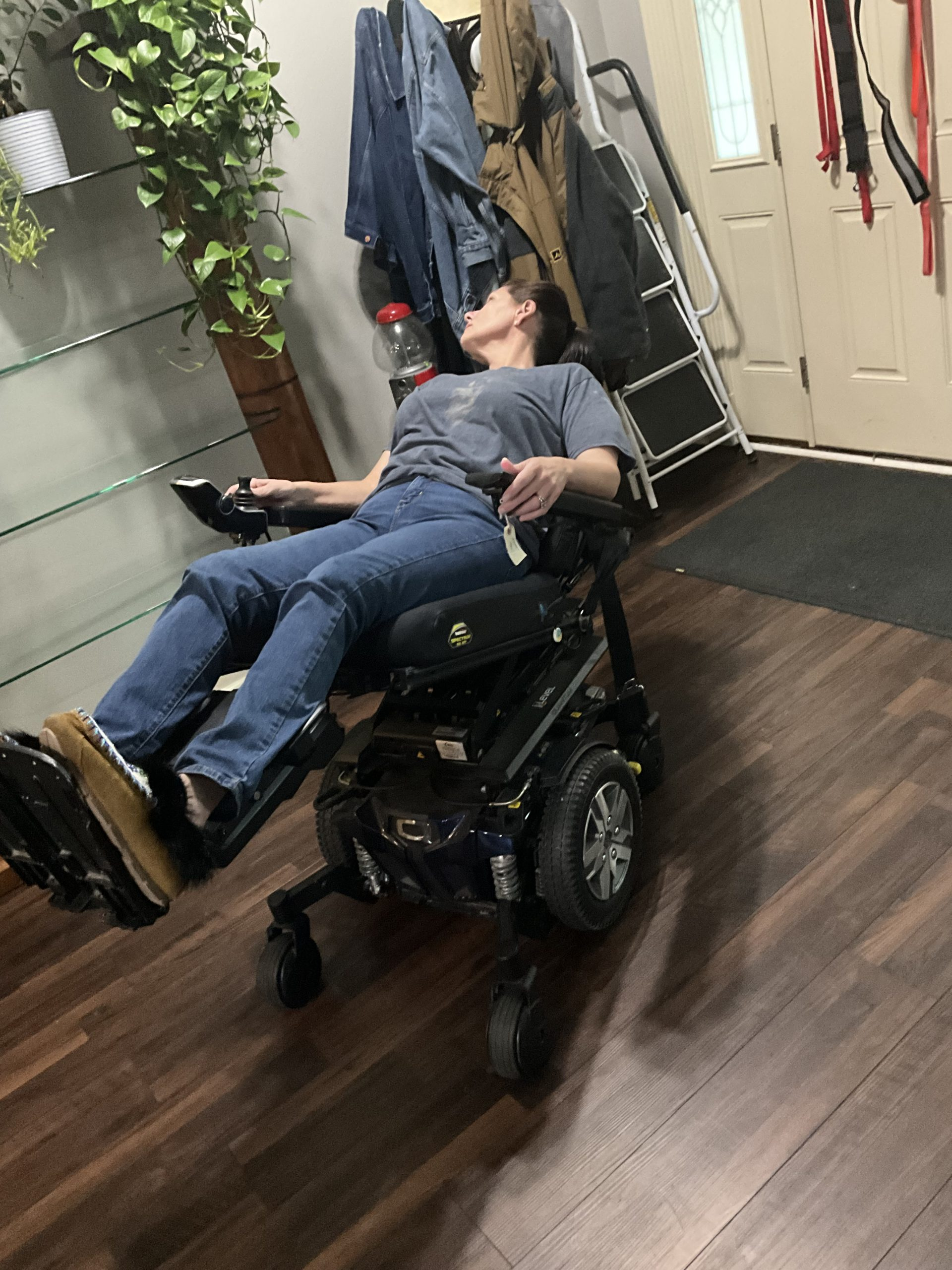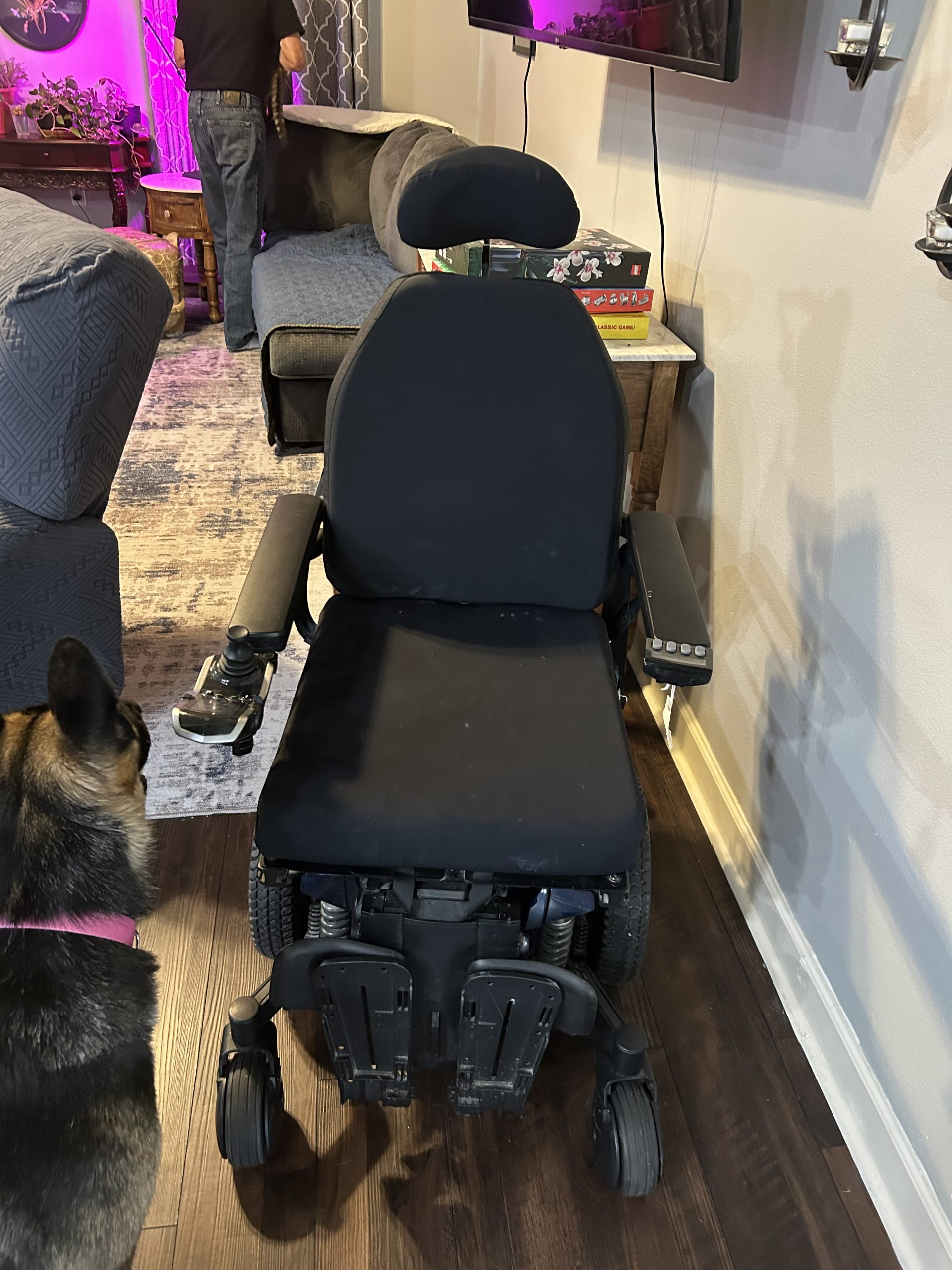 The chair is in like new condition it has several positions like tilt cradle raise lower it has a joystick control on the armrest as well as on the back of the chair armrests are padded and it has a very comfy padded seat battery was replaced about 6 months ago also chair has never been used outside other then to go to back patio / I don’t think I can ship this chair as it’s a heavy chair and I wouldn’t have a clue on how to do it the price is negotiable as I need to sell it as soon as possible if you want to call and ask questions feel free to call me atv501 459 8613 anytime it’s my mobile number. also, the arms fold to the side to make the transfer much easier come with a charger arm on chair raises to make it easier to plug the chair into the charger I’ve never ever had the chair run out of power it has lasted me all day and up til bedtime it’s very reliable