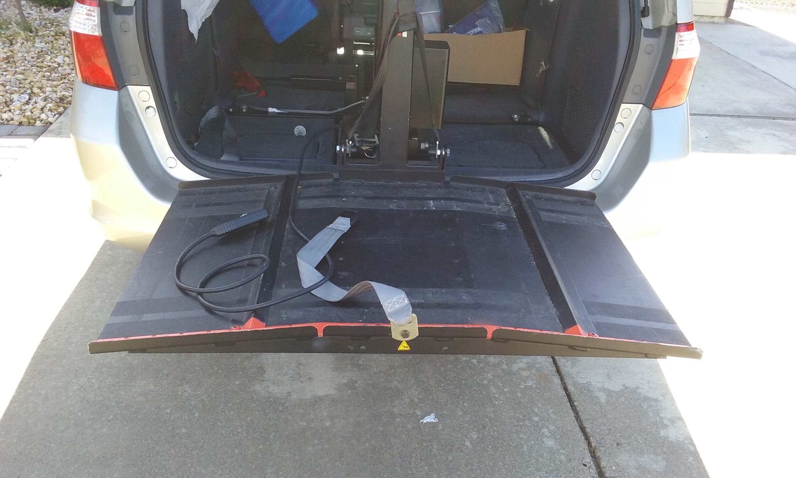 Backpacker power lift for power chairs. For use in mini Van's, SUVs or pick up trucks. Backpacker Plus model. Made by Pride Mobility Co. Maximum lifting capacity is 350 lbs. Hooks into car battery for power. We purchased it used. We used it for approximately 18 mos. Has not been used since 11/15. I have no use for it any longer. The lift works great. It is very easy to operate. Your chair rolls easily onto the ramp. Your chair is secured by seatbelts. It is wonderful that the power chair can be locked inside of the vehicle when installed in a van or an SUV and that the chair is out of the elements. When installing in a mini van or SUV, the third row of seats must be removed or folded down in order to have the room to install. The lift gave us more freedom to be able to come and go whenever and wherever we wanted. This lift cannot be used while the chair is occupied. The buyer must have the capability to un install the lift from my vehicle and re install in their vehicle. The buyer must see in person & pick up. No credit cards and no shipping.