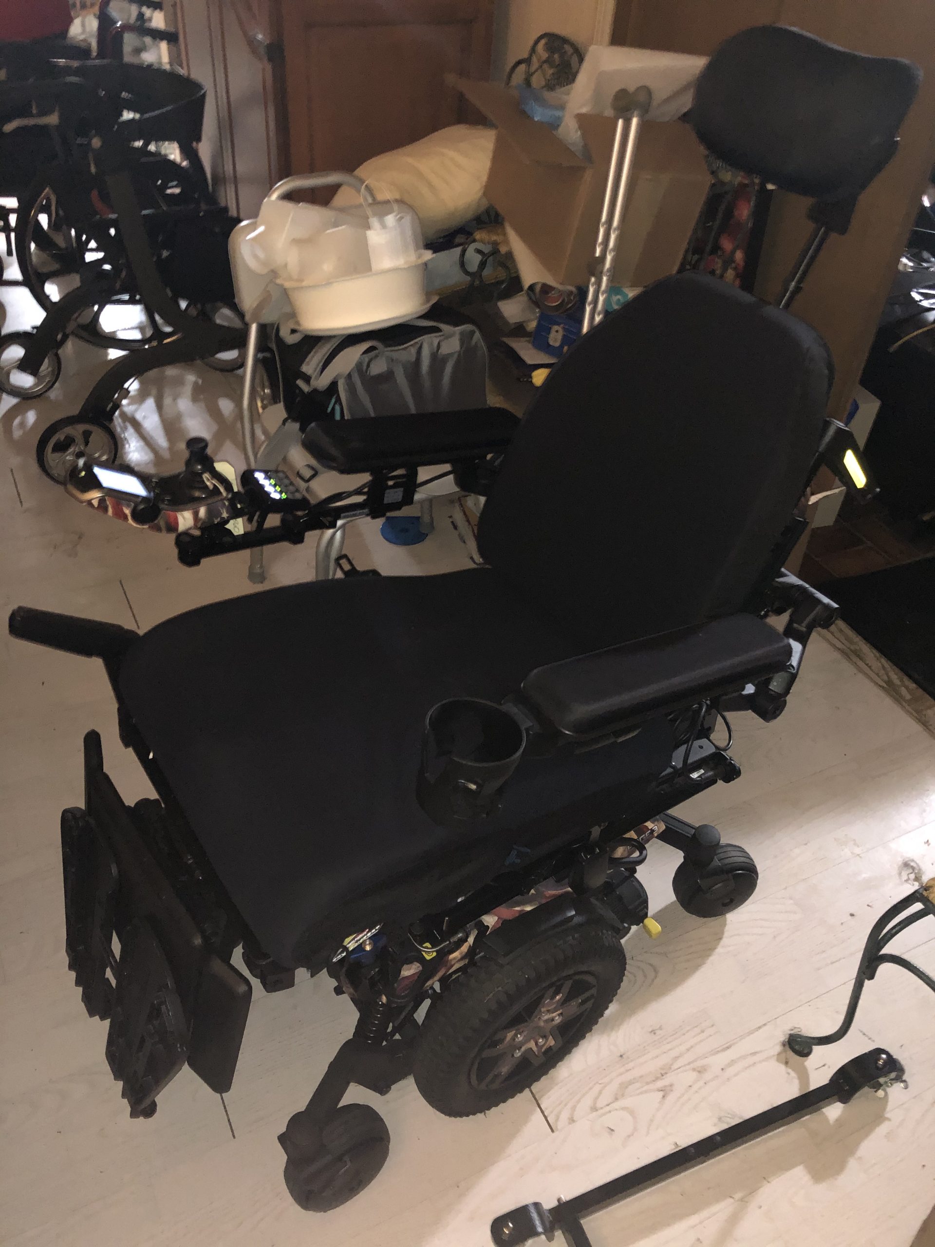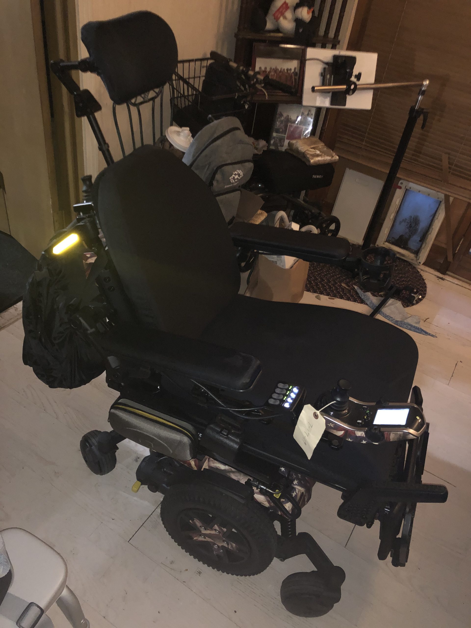 It has full functionality and versatility for laying down, partial standing, made for everyday use of a partially to full paralyzed user. It has a locking mechanism on the bottom to keep in place in wheelchair accessible vans. It has 2 state-of-the-art control modules on the front arm and on the rear for a companion to control.