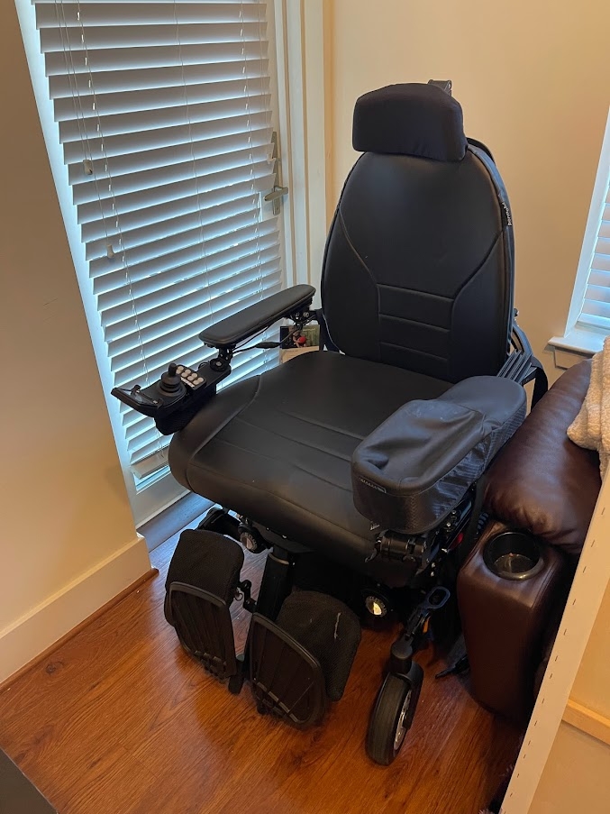 This is a Permobil powered wheelchair. Lightly used. In desperate need to get this off my hands. Willing to negotiate price. This wheelchair was bought at 12,000. The wheelchair lifts up and down. Has Tilt functions to relieve pressure. Joystick maneuvering. Takes a little practice to get used to the wheelchair’s functions. Power adjusting foot rest. padded arm rest. The back of the seat adjusts. The wheelchair can be used for long distance use and can go very fast. This particular model is Bariatric. Meaning it's great for someone who is tall and may be over a certain weight. I have all of the parts and instructions. Charging cord and port are provided. Instructions are included as well for an in-depth instruction. This wheelchair is very intuitive and helpful for someone in need and will last a very long time. Again, I am willing to negotiate a reasonable price if asked.