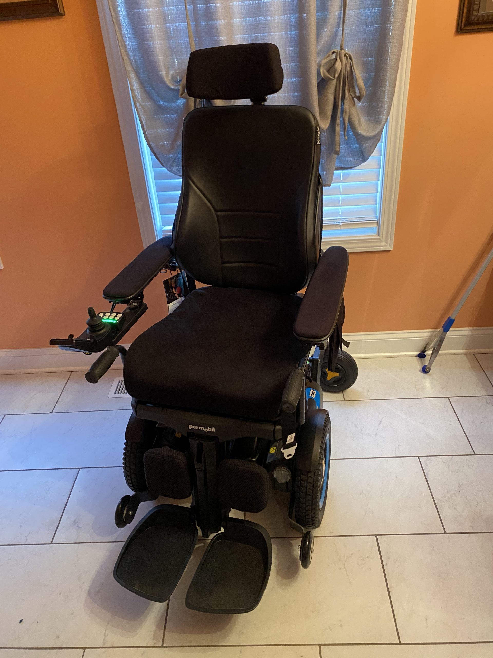 The wheelchair is a F3 Corpus Permobil Wheelchair. The wheelchair was purchased in 2018 at the price of 36,000. My husband had ALS and passed away in 2019. I am currently selling the wheelchair because I no longer need it. My husband only used the wheelchair for about 5 months before he passed away. I tried to take a picture of all the options this wheelchair has. I still have the battery charger and all other things that came with it when purchased. As previous stated, The wheelchair is a F3 Corpus Permobil Wheelchair.