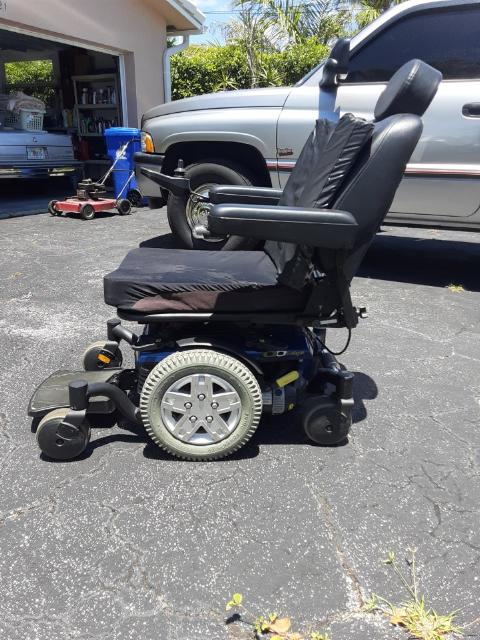 One power wheelchair for sale. Good condition. Holds a great charge, will hold a charge for close to a week if you use it every day. The cushions are in good condition but can be easily removed. There is a basket that attaches in the back, it is approximately 8" high. There is also a storage pouch in the back of the seat. There is a light in the front for night riding. $895 OBO.