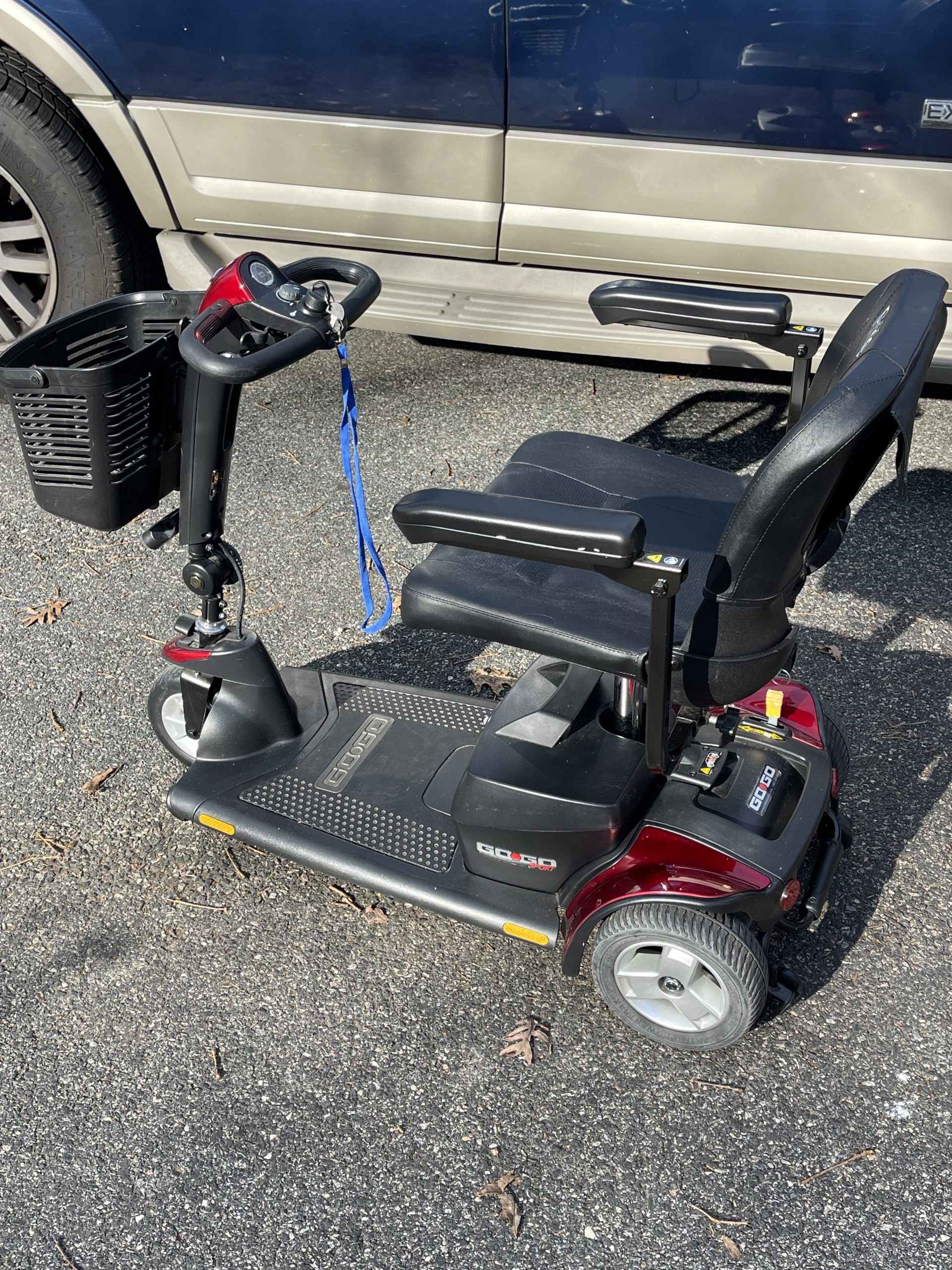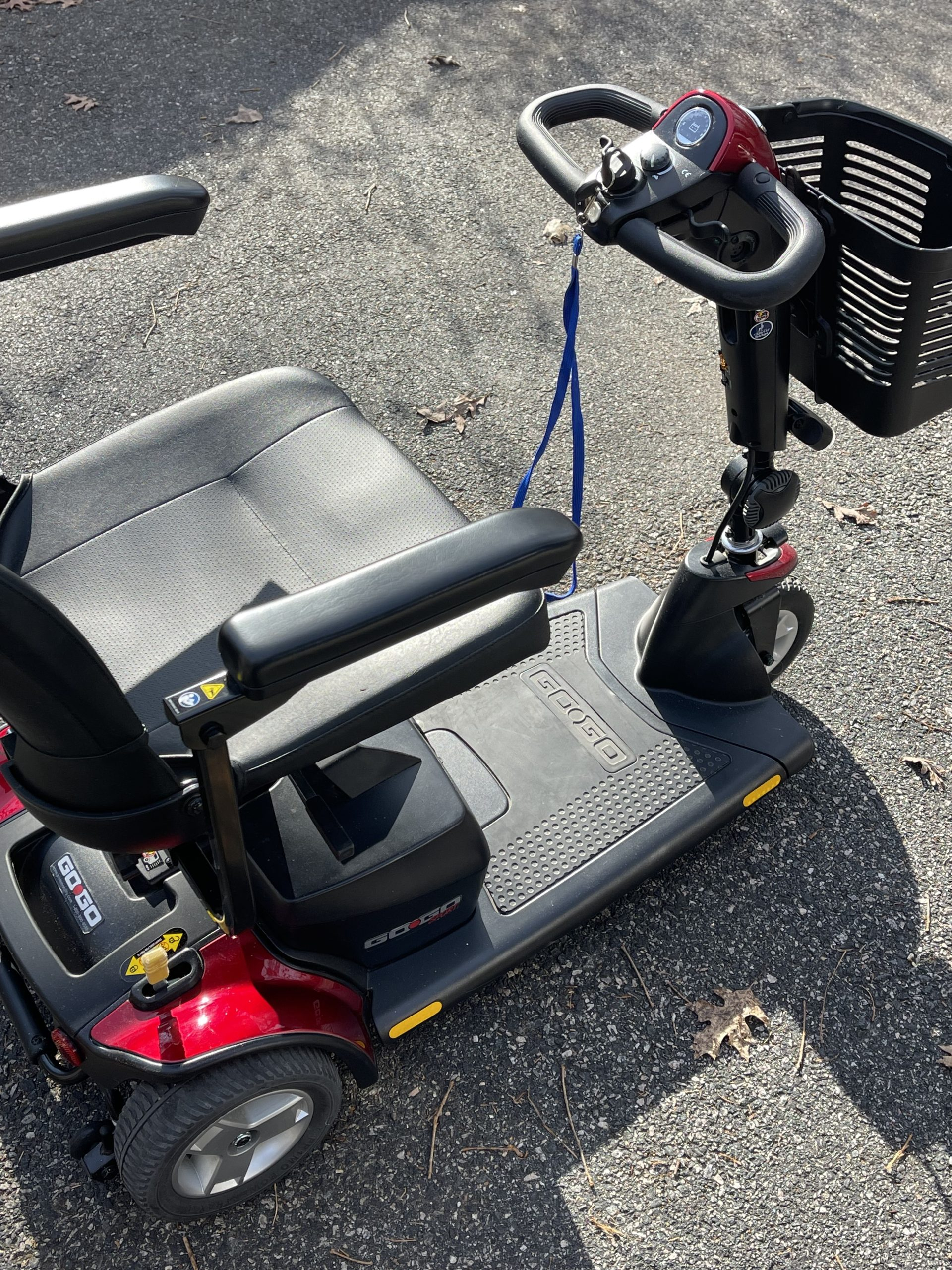 Pride GoGo Elite Traveler. This is a "like new" mobility scooter. Less than 50 hours of total use. Was for my wife and she no longer needs it. It hasn't been used much but it has been used on a few occasions where it was used on pavement, concrete, indoors and out—lots of power with adjustable speed control. Three wheels make it easy to use indoors or out. With the three-wheel model, it is more precise and has a smaller turning radius so it is perfect for indoors or inside buildings. Brand new batteries less than 3 months old. Rotating seats make it easy to access from either side. Headlamp for dusk or night use. The scooter breaks down into 4 pieces for easy loading and / or transporting. STRONG motor makes it easy for uphill travel. Used on pavement, gravel, and grass with no problems at all. I will accept Venmo, Zelle, or CashApp as well as cash.