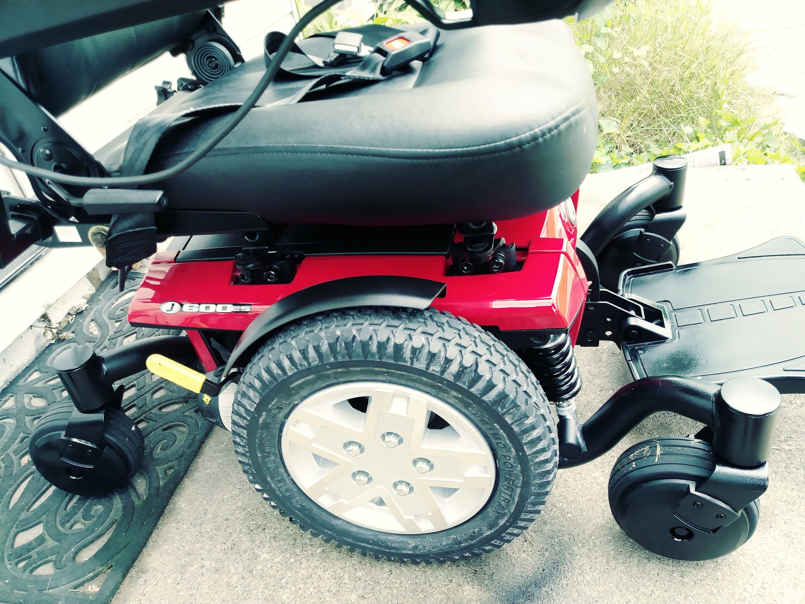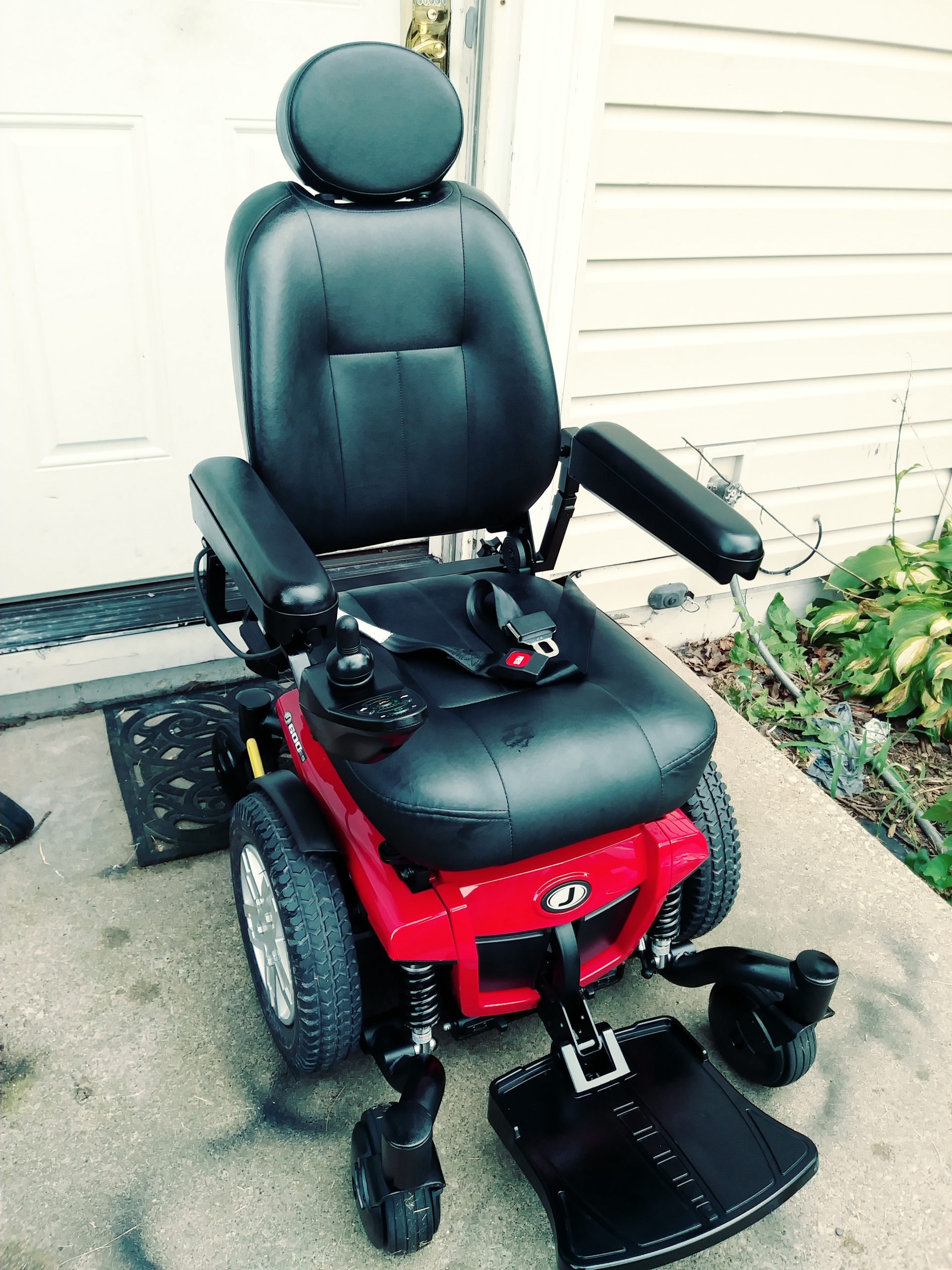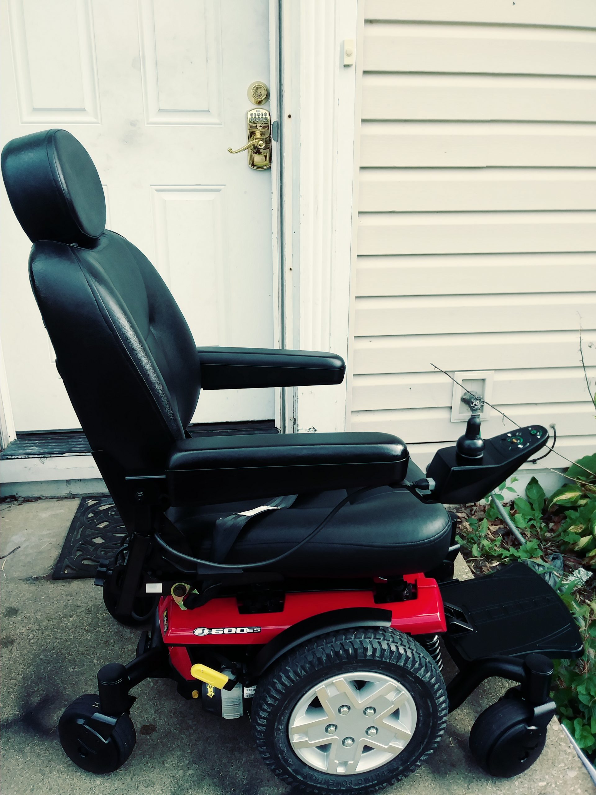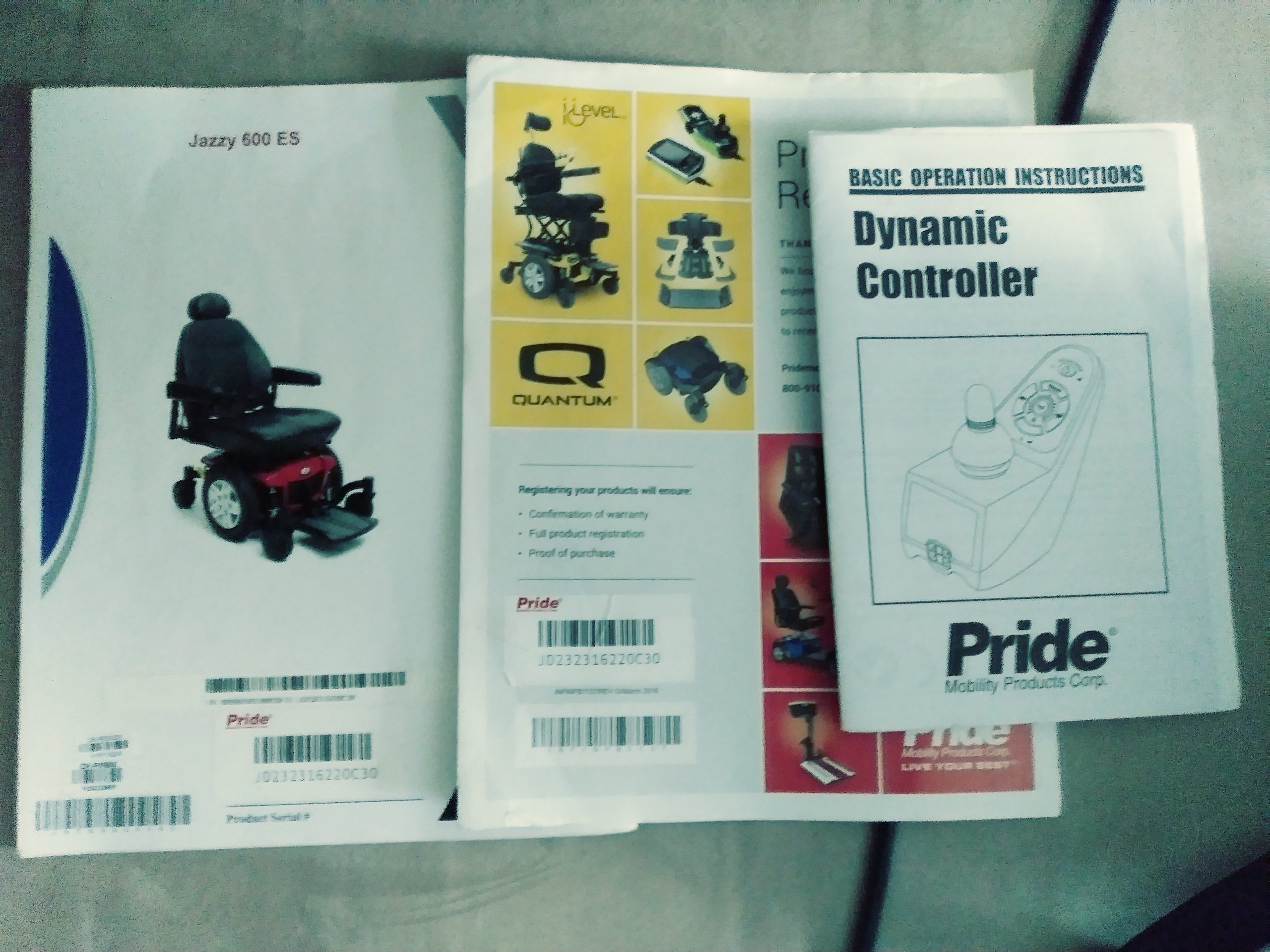 This Pride Jazzy 600 ES is in immaculate condition. Like new condition. Serial # JD232316220C30. Weight cap: 300 lbs., 6 wheel technology, front and real OMNI-casters, 60" lap belt, 20.5" turning radius, range 16.65 miles, top speed: 4.0 mph, battery charge dis: 17 miles, weight: 240 lbs, miss wheel drive type, reclining high back seat, seat width 18" to 20", seat depth 18" to 20", back height 20 ", seat floor height 20.5" to max 22.5, over all width 24.50" and 35.5 length, joystick right/left handed, battery included two 12 volt, NF-22 batteries, battery pack weight 74.0 lbs drive wheel 14". This is an indoor outdoor mobility chair. The design of the Jazzy 600ES includes six wheel on the ground technology for increased stability and another stops and starts. The midwheel drive style allows for a super tight turning radius, while the 14" drive wheel allow you to travelover multiple surfaces and terrains. The powerful battery gives the drive range that you are looking for.
