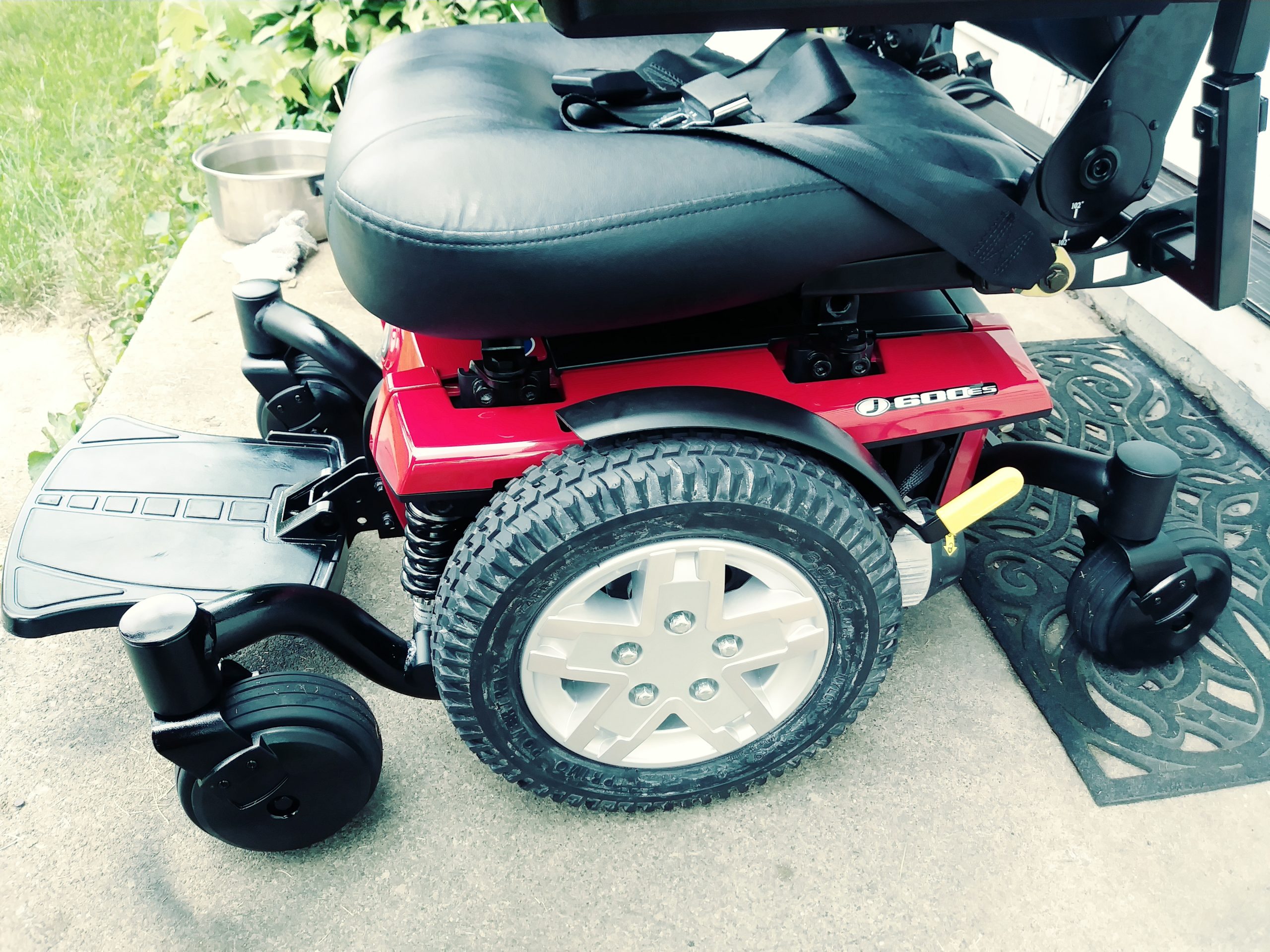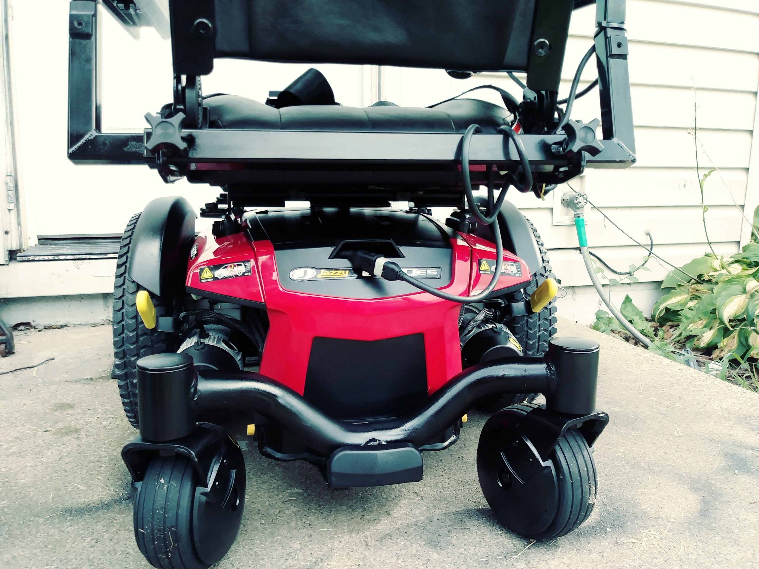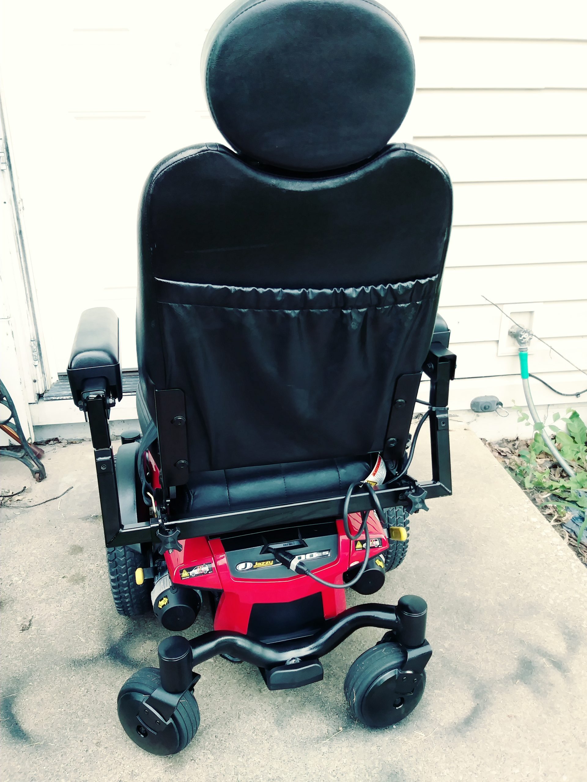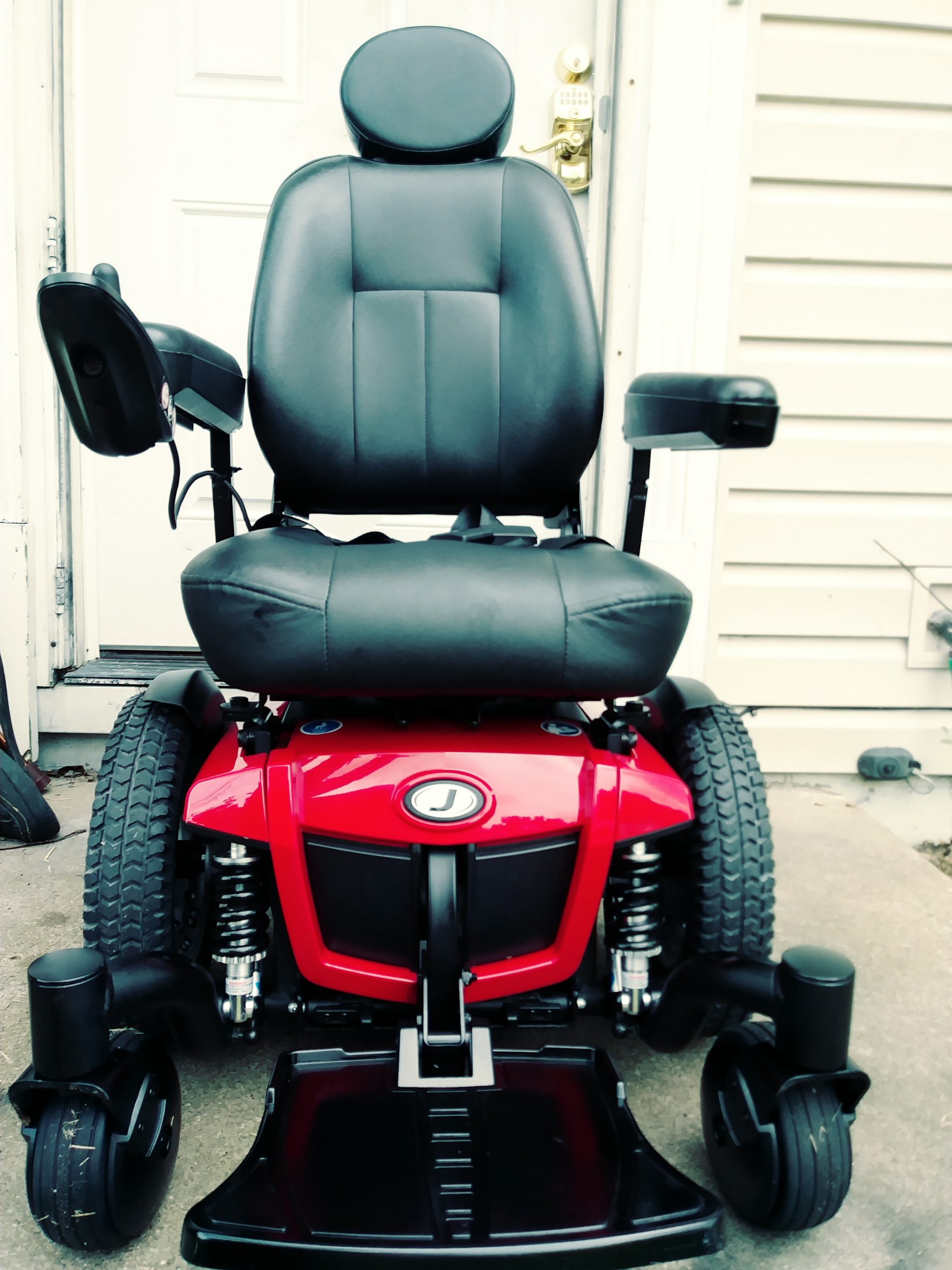 This Pride Jazzy 600 ES is in immaculate condition. Like new condition. Serial # JD232316220C30. Weight cap: 300 lbs., 6 wheel technology, front and real OMNI-casters, 60" lap belt, 20.5" turning radius, range 16.65 miles, top speed: 4.0 mph, battery charge dis: 17 miles, weight: 240 lbs, miss wheel drive type, reclining high back seat, seat width 18" to 20", seat depth 18" to 20", back height 20 ", seat floor height 20.5" to max 22.5, over all width 24.50" and 35.5 length, joystick right/left handed, battery included two 12 volt, NF-22 batteries, battery pack weight 74.0 lbs drive wheel 14". This is an indoor outdoor mobility chair. The design of the Jazzy 600ES includes six wheel on the ground technology for increased stability and another stops and starts. The midwheel drive style allows for a super tight turning radius, while the 14" drive wheel allow you to travelover multiple surfaces and terrains. The powerful battery gives the drive range that you are looking for.