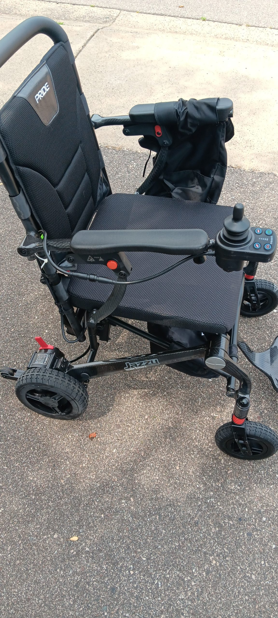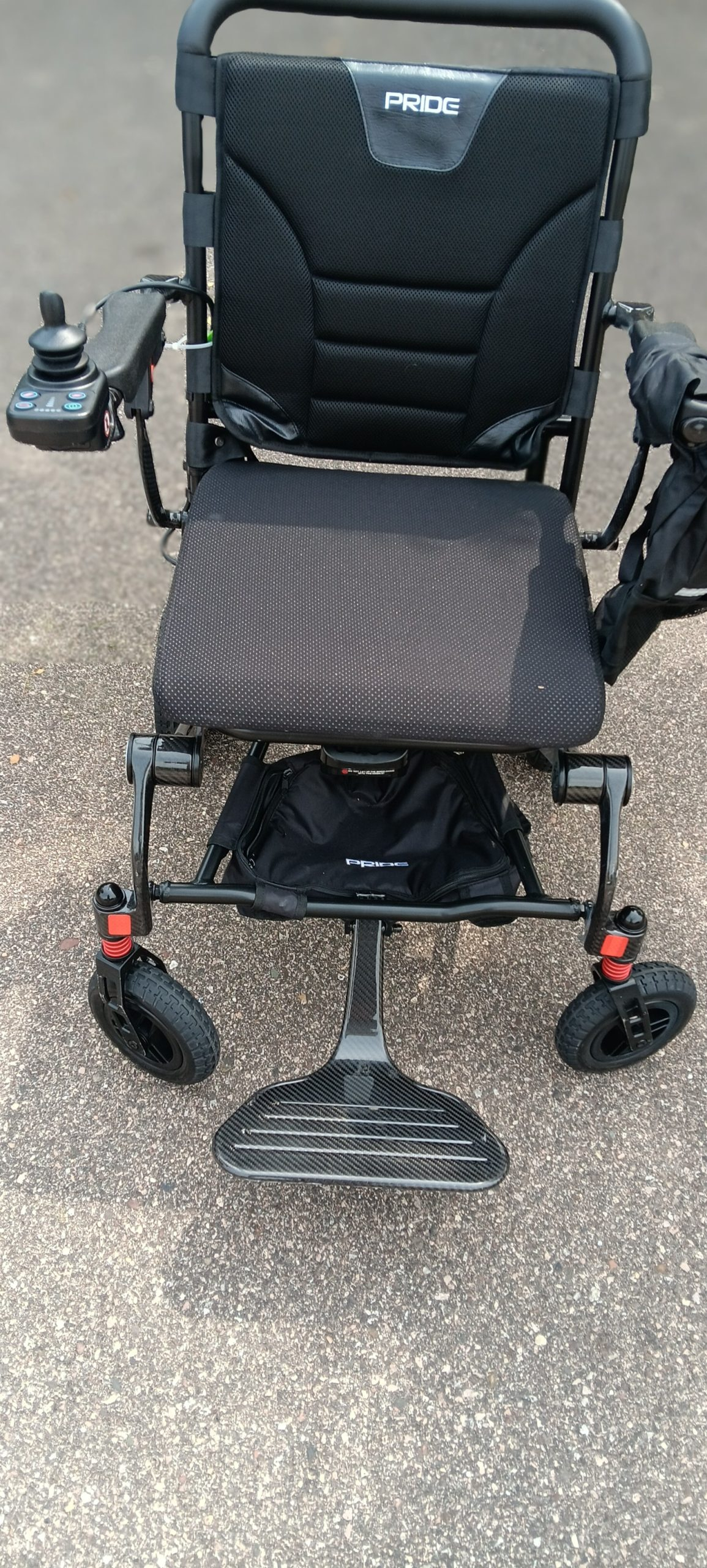 Condition of the chair is as new, and it's complete with a charger. The chair was $2500 new. Chair has no damage or repairs. If paying with a check, I will need to cash it before shipping. The chair was purchased for my late partner. She was a lady of about 140 lbs, and the chair was used infrequently for travel it works well for airports as it can be driven to a jet way and surrendered for storage with luggage at the jet enterance. It's lighter, about 40 lbs. Here are the specs.