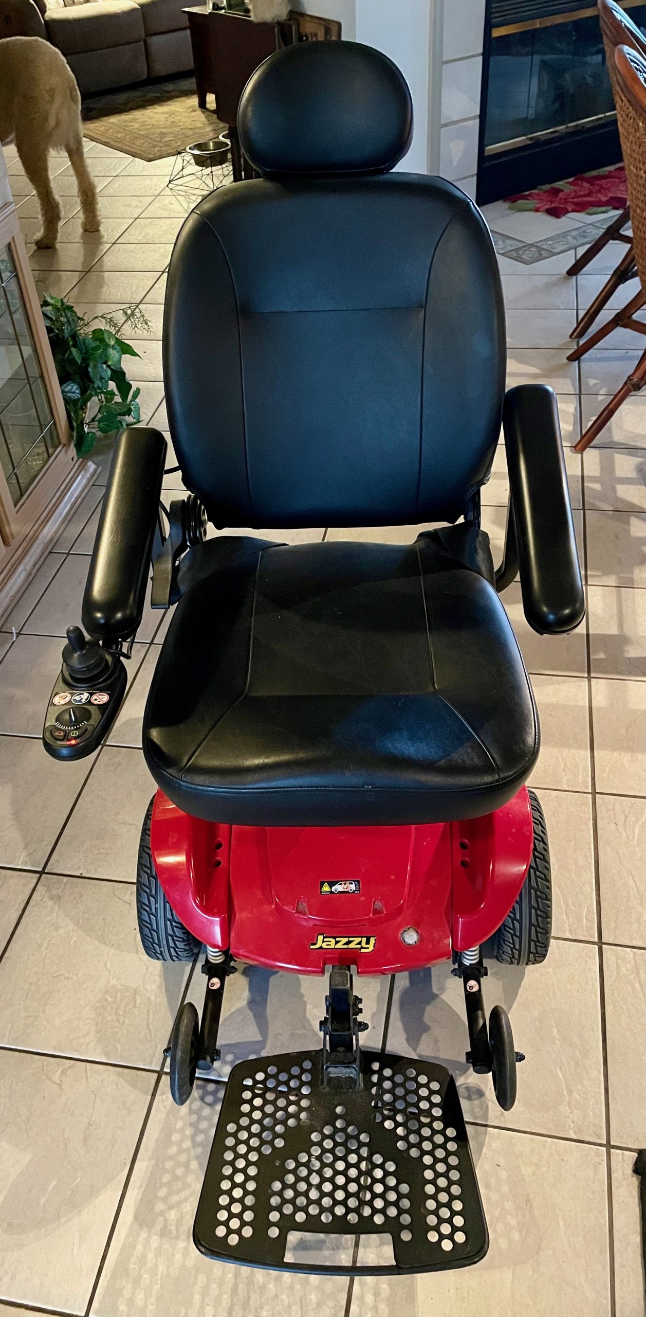 Jazzy Select Power Chair by Pride Mobility. Excellent condition. Super Maneuverable. Very adjustable and comfortable. With a 300 LB weight capacity, 22.5 inch turning radius, and flip-up foot platform, it is the ideal mobility chair.