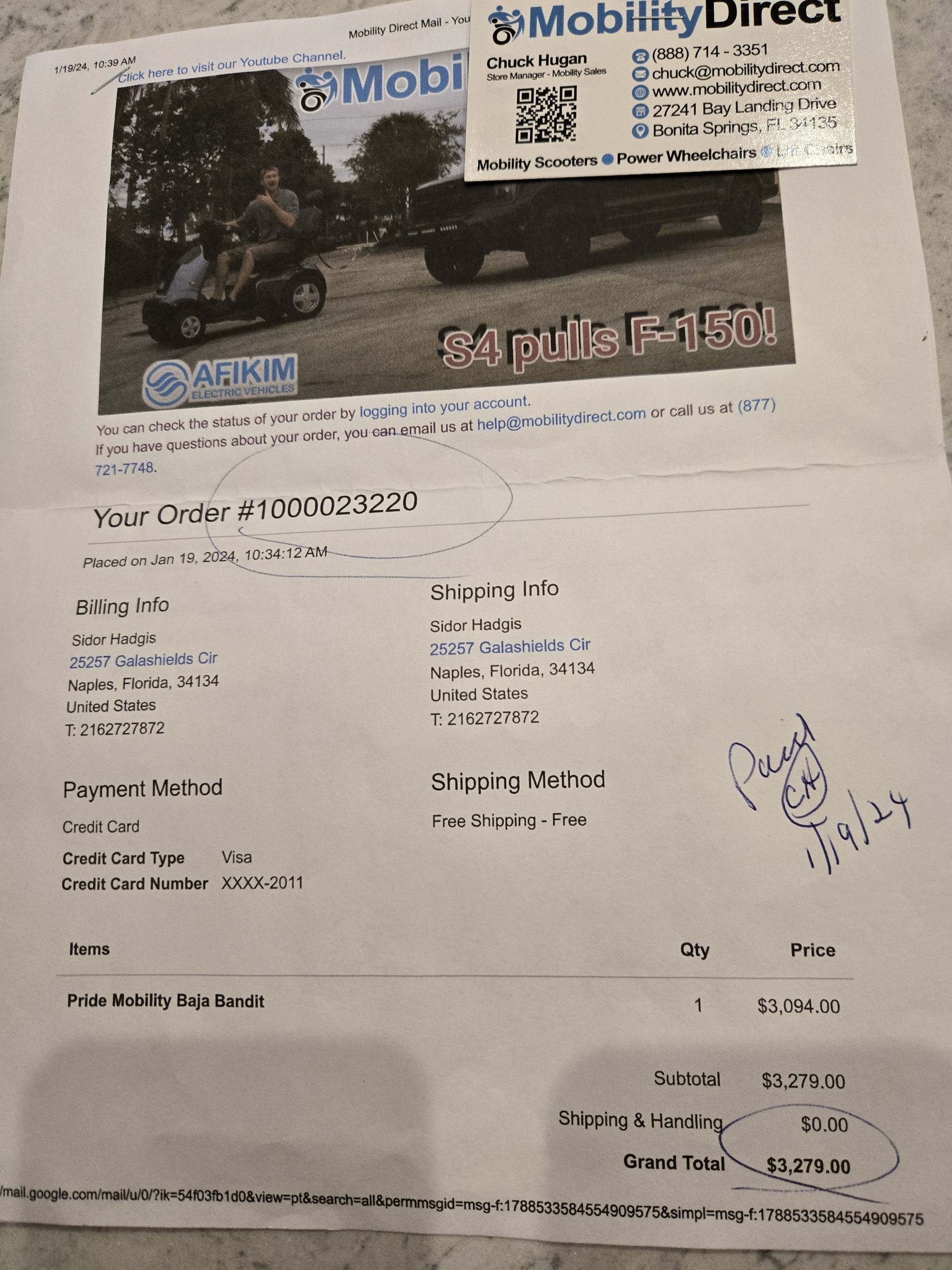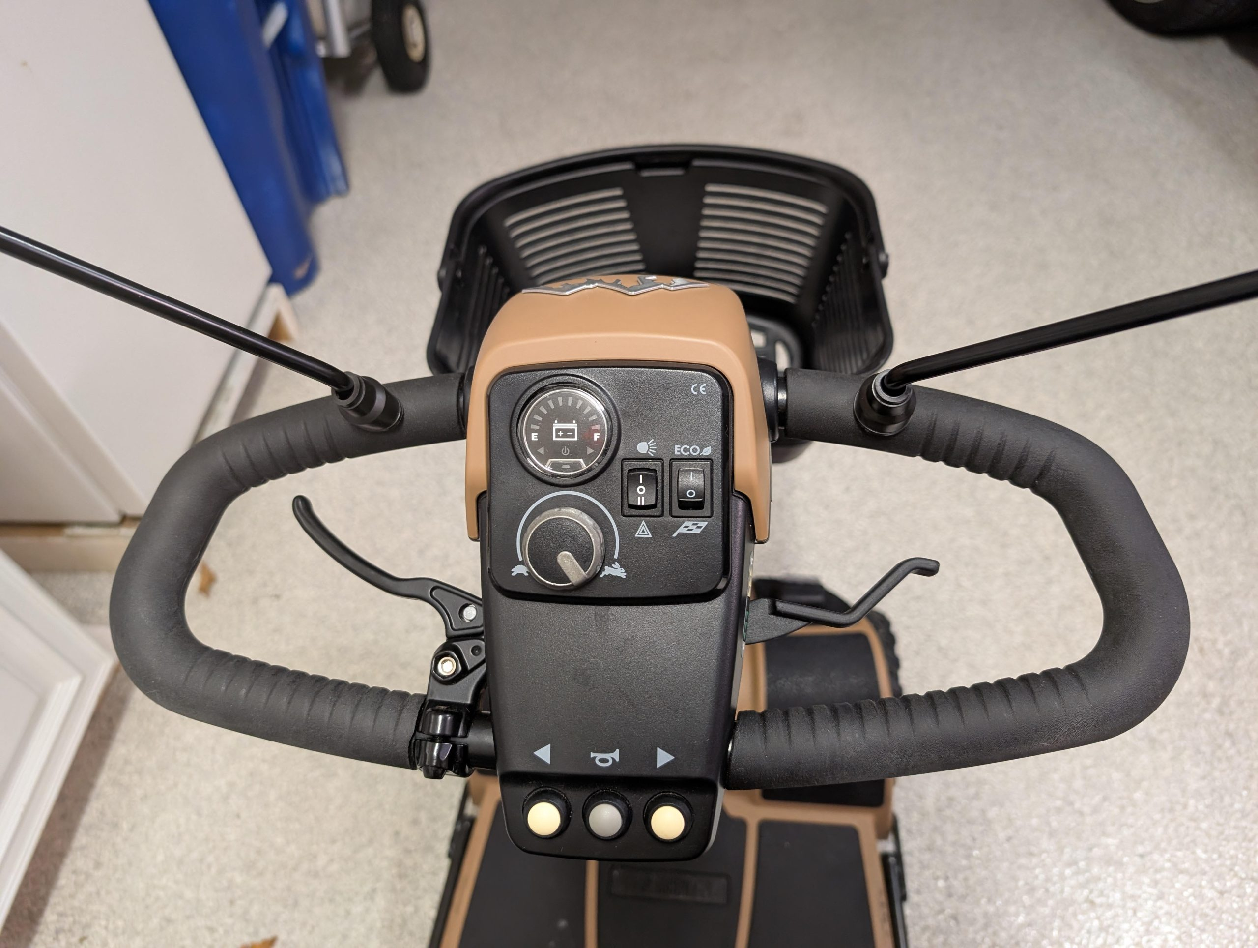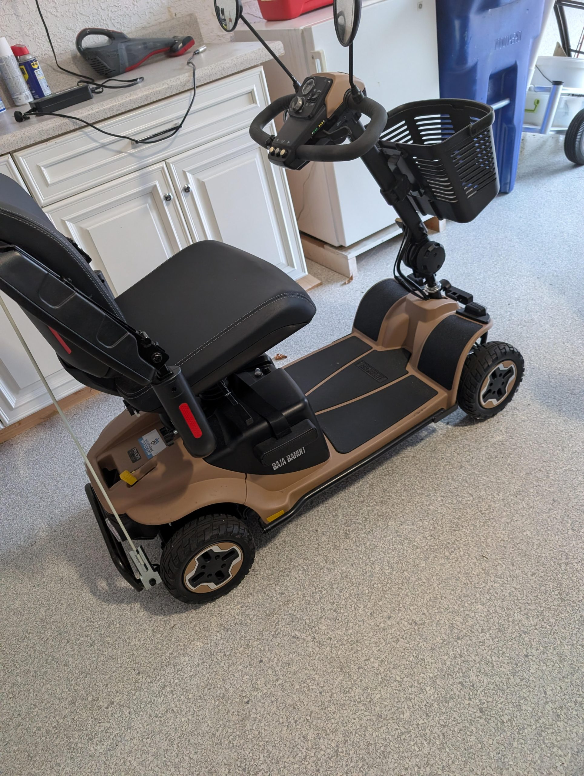 This scooter is like new and was purchased in January of 2024 for over $3,000. My dad didn't like the small wheels because it didn't work well on the grass. So he purchased an all-wheel drive scooter. He is located in Bonita Springs, Florida. No shipping. This unit has lithium batteries. Lasts a long time when fully charged. Perfect for indoors and outdoors, hard pavement & carpet. Has mirrors & charger. With a 4.5” ground clearance, you can be perfectly equipped to tackle uneven terrain and off-the-beaten-path trails with confidence. Getting dark out? Switch on the full LED lighting package and continue on your way. Drive a speedy 8mph for up to 22.5 miles per charge, keeping you on-the-go all day long.