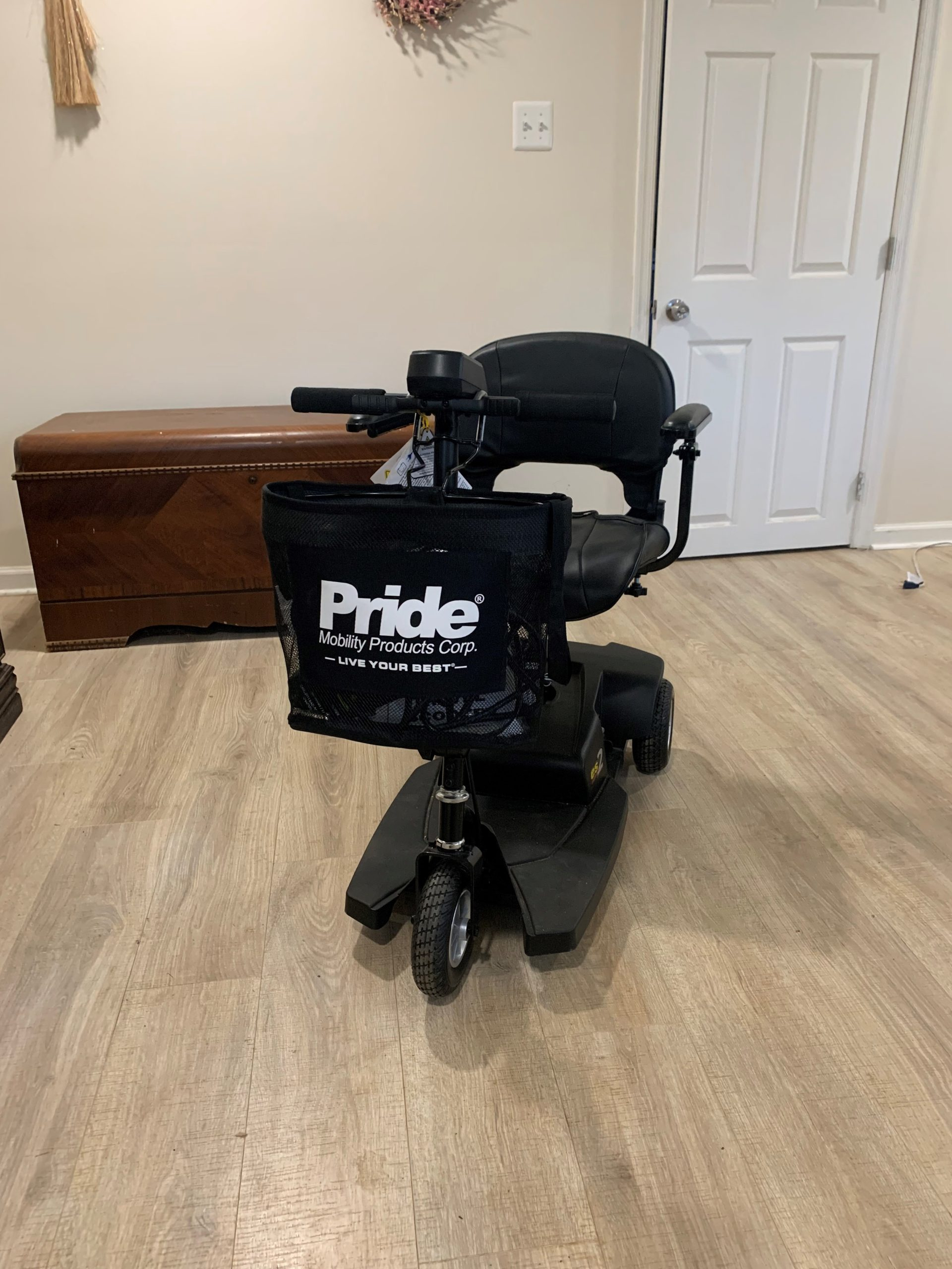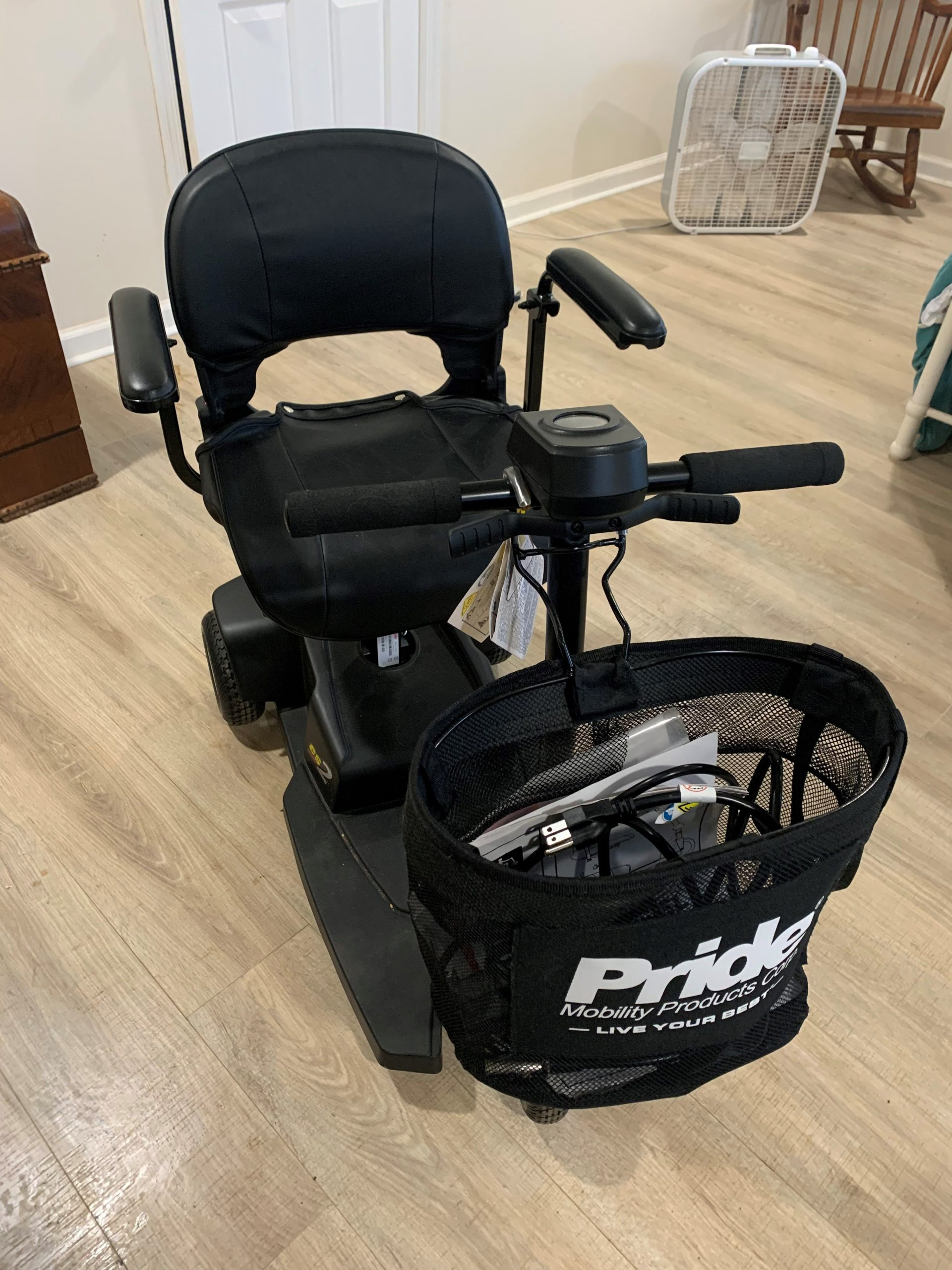This travel scooter is lightweight and easy to pack in a car. It can hold up to 250 lbs, with a maximum speed of 4 mph, and a turning radius of 31 inches. It maneuvers well around tight corners. It goes over any type of flooring - wood, carpet, sidewalks etc. The scooter comes with a helpful carry basket, working batteries, and a charger. It is in very good condition and was originally manufactured in 2021. It was only used for about one week because my mom's cancer progressed much more rapidly than we had expected making her bedbound within one month of diagnosis. So, she only really used this scooter for about a week and, during that time, she very much enjoyed the scooter, thought it was very comfortable, and found that it gave her the freedom she needed. Serial #: SG817421247Fvo