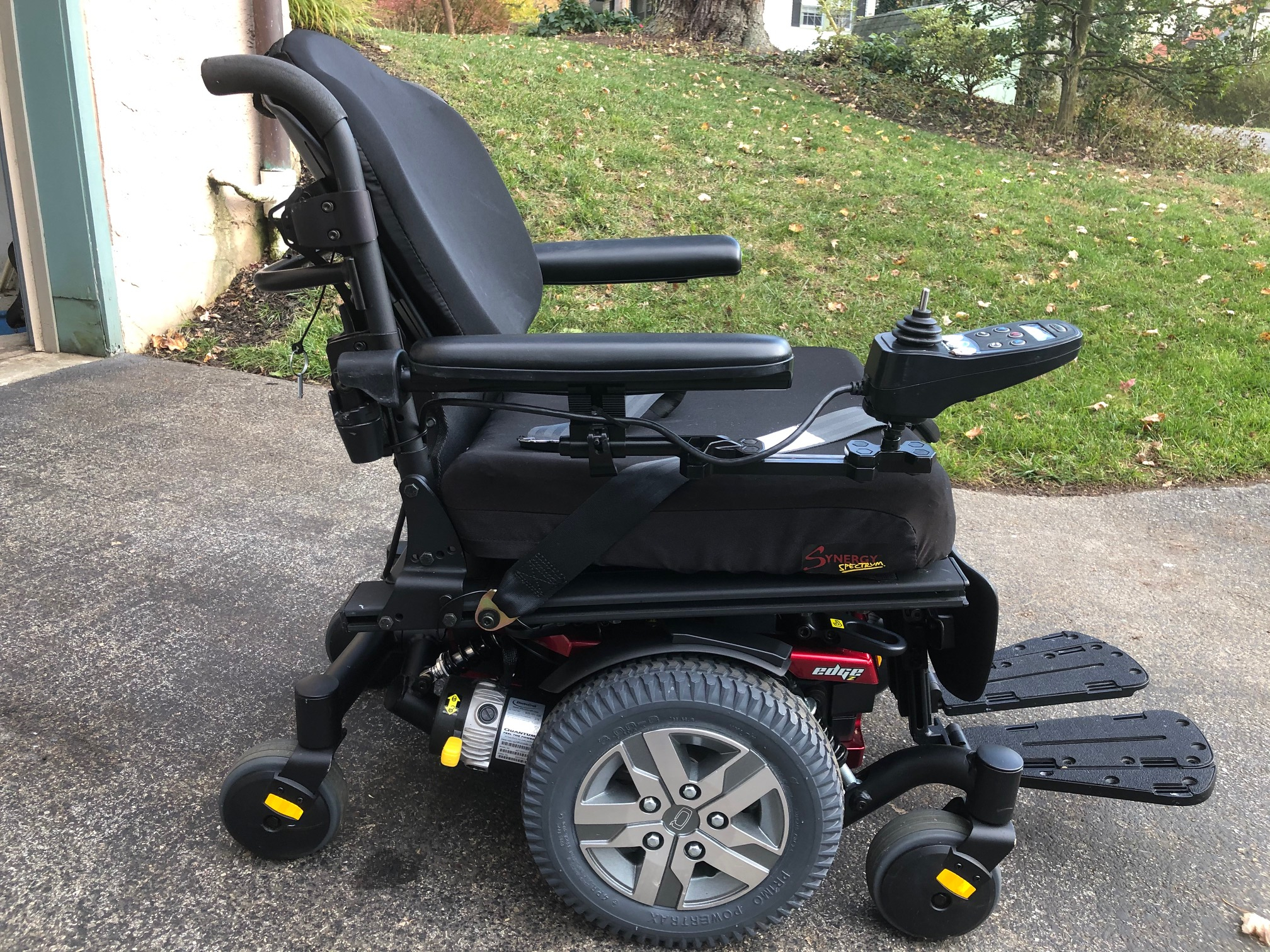 Powerchair Pride Q6 Edge Z - motorized, heavy duty, oversized wheelchair. Bought in March of 2018 for $7800. Used for 4 months in a nursing home. Great condition and a great deal for someone in need of a powerful oversized powerchair. The chair has a custom wide top of the line seat cushion. The controls swing out of the way to get through door openings or under a table.