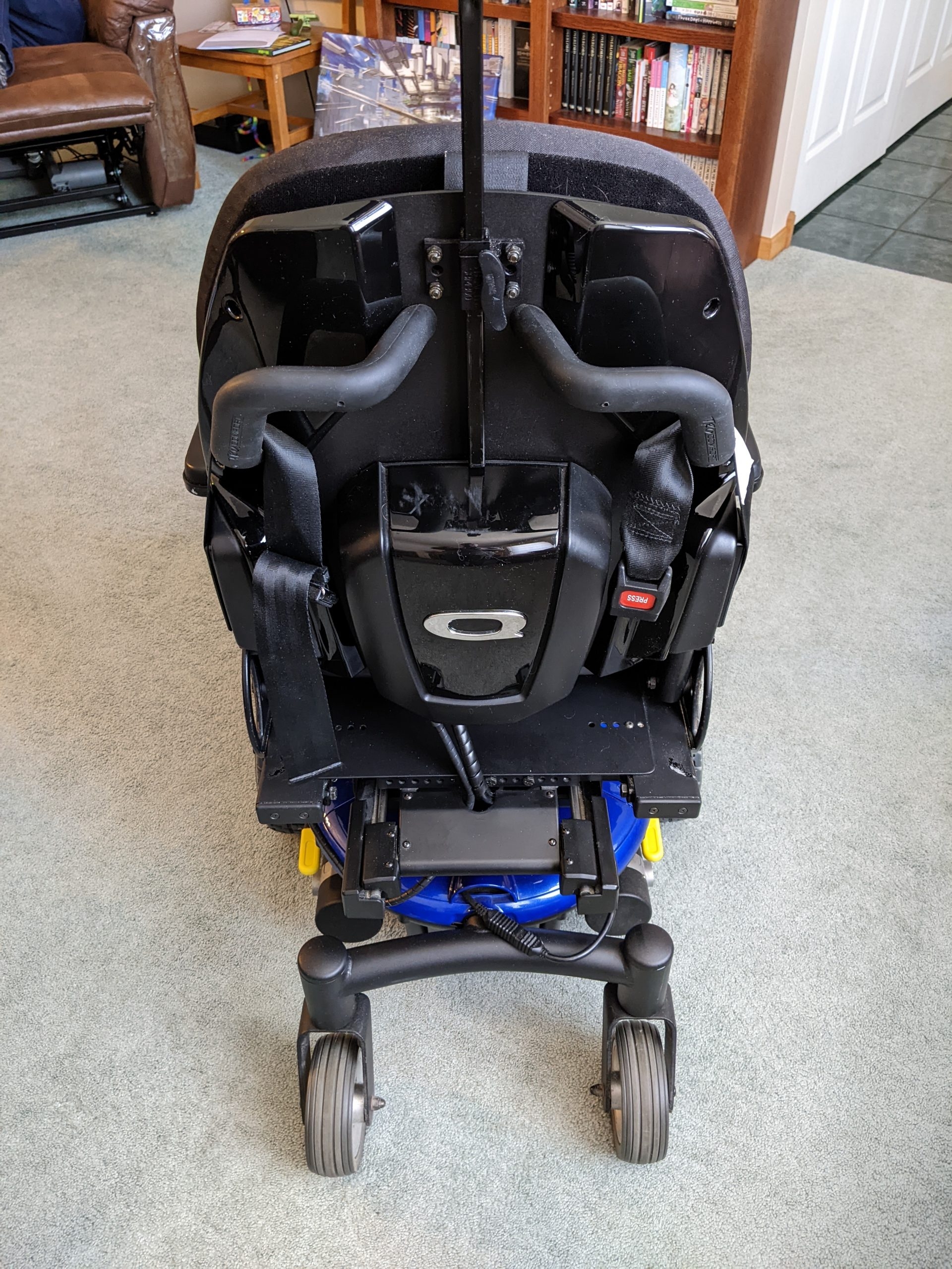 This is a listing for a Quantum J6 power chair by Pride Mobility. This is a customized class 2 power chair with several upgrades over the base model. It also has a large number of adjustments available since it is a class 2. I will go into detail of some of the more noteworthy details below. It is in good shape with low milage. There are no issues or significant wear, and the batteries are less than a year old. If you have questions or want more details, send me a message.