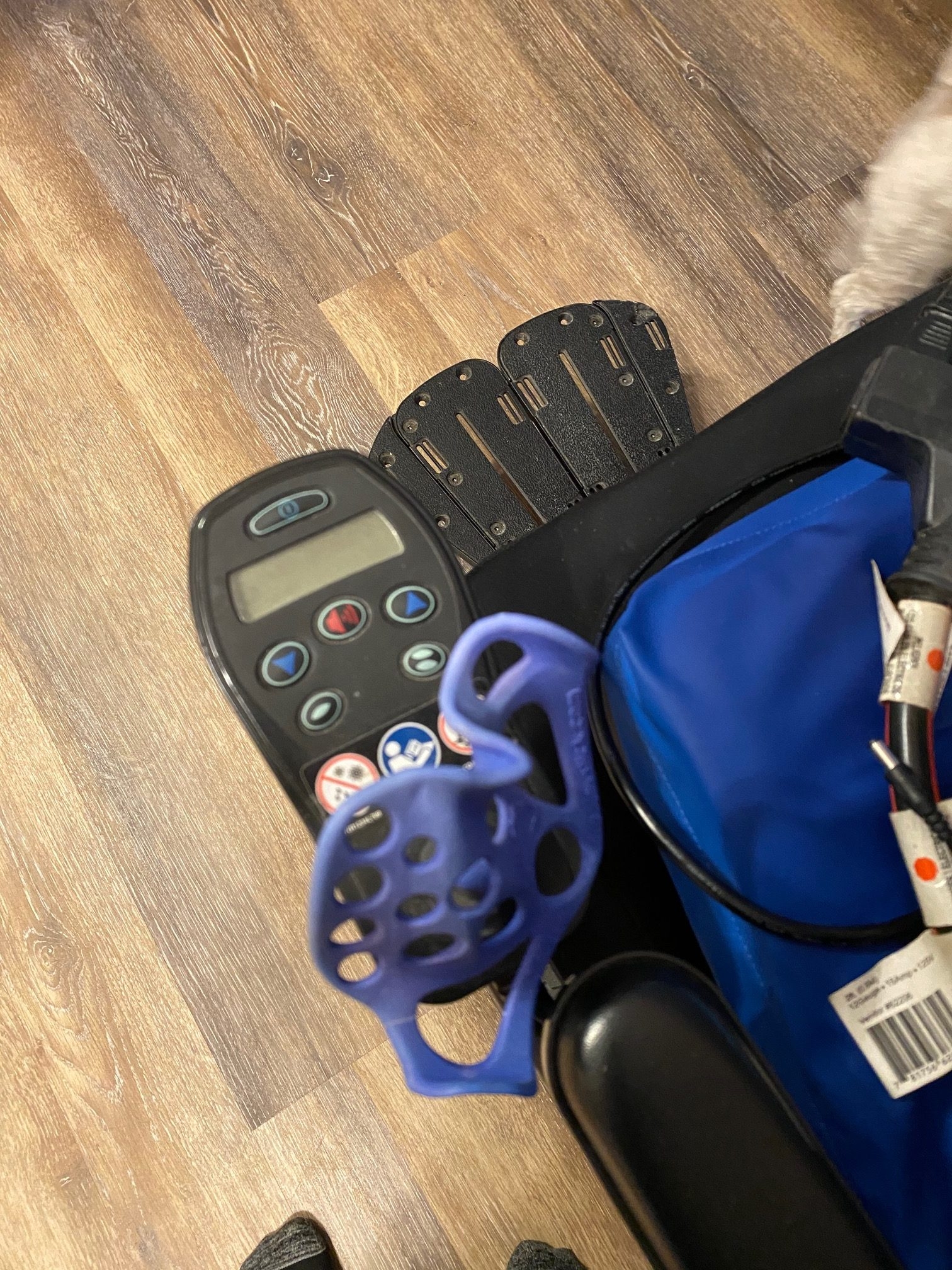Pride Mobility Manufacturing, J6 model, Quantum optimizing power chair In good condition was used on limited basis for four years to doctor appt.'s. Has battery and charger. Includes Jay-Fusion chair cushion plus a powered air circulator. Features a rear driver control and zero gravity lift motion with tight turn ability. Full powered leg lift, tilt, extension. Supplied by NuMotion. Also has a 300 pound weight capacity with a large 19 inch seat. 22 inch turn radius. Needs to be washed but in excellent condition. Hoping this wheelchair will help a new owner in coping with limited motion ability. Original NuMotion invoice listing full charge as $36,724.10 on February 12, 2016. Breakdown of charges: J6 2Sp-Ss #11,107.82; (2) U-1 Agm Battery $478.80; Swing away joystick $450.00; Tru Balance Tilt 300 lb $8,991.00; Manual Recline Back $1.350.00; Comfort Plus Headrest $255.60; Stealth Worlds Headrest mount $378.00; Single Power Drive $2,115.00; Bracket Assembly $104.90; Jay Fusion Cushion $891.00; Multi Power Drive $5,211.00; Center Mount Power Platform $5,391.00. Invoice and owners manual will be provided. Pick-up local only.
