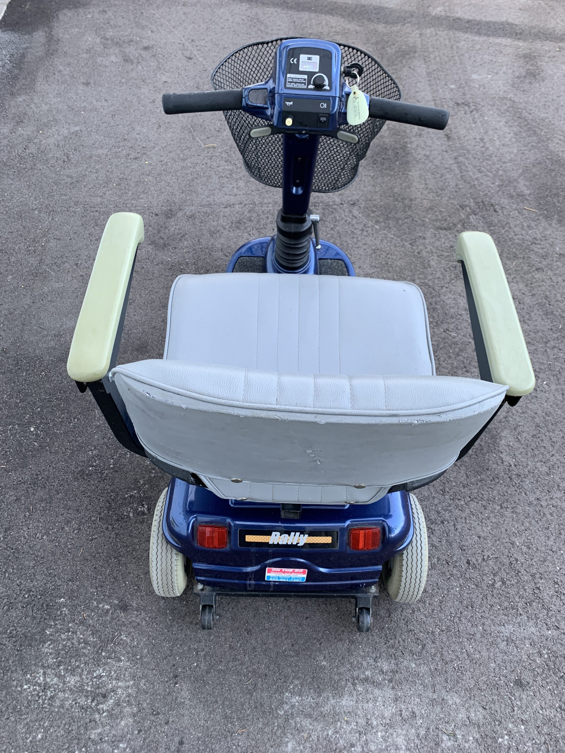 Great maneuverability around doorways, hallways and residential settings. Offers a smooth ride with forward, reverse, fast and slow speeds. Has a basket on front for carrying personal belongings. Can also be used outdoors for short trips to grocery stores.