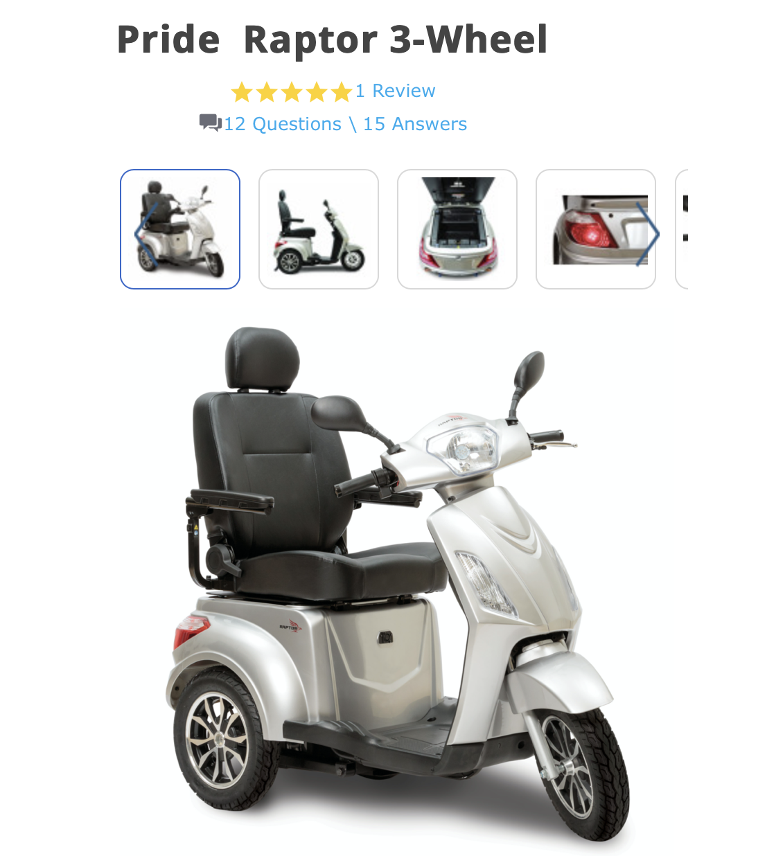 RAPTOR Pride Mobility Recreational Scooter w/ Electric Safety Brakes