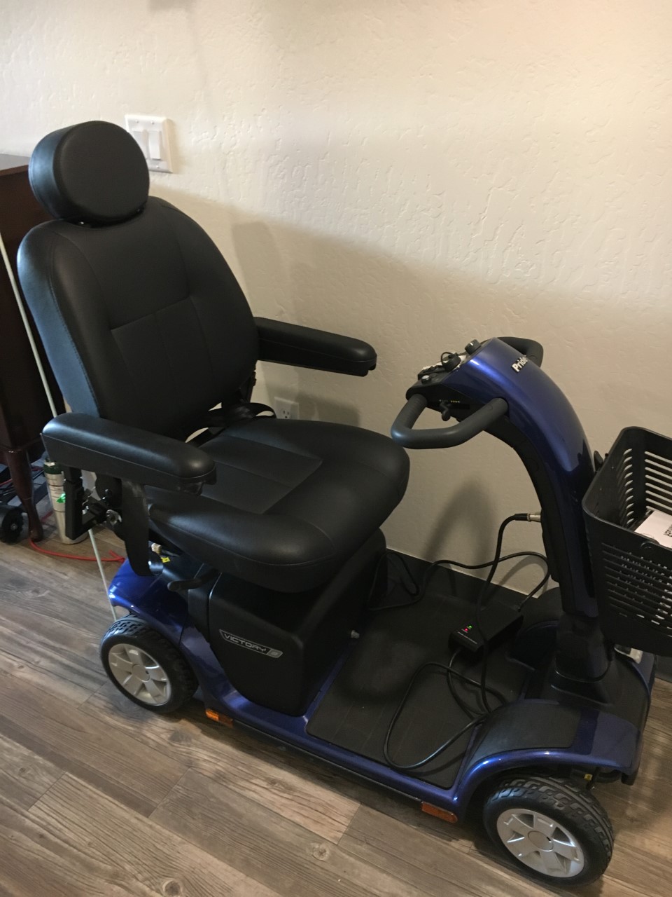 This top of the line Pride Victory Series 10 mobility scooter is in great shape. Must see to appreciate. It's in like new condition. It has only been used very briefly two times. It was originally purchased for $3,200. and I am asking $950. It can travel about 15 miles on a charge at about 5.5 MPH. 400lb. driver weight capacity. It has an immaculate blue and black body. It is heavy duty, has four wheels and is very stable. There is a basket on the front and an additional storage pocket on the back of the chair. It holds a charge really well. The original manual and the charger are included. It also comes with a cover for the unit. It has been stored indoors. At the present time, it is being stored in a commercial storage unit in Cottonwood, AZ. I would be happy to show the unit to anyone interested so that they can test drive it. Please feel free to contact me.