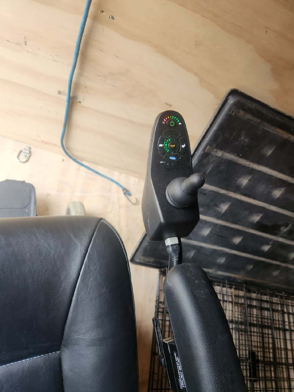 Pronto 41 mobility scooter. Candy apple red and black with a black leather seat. Very good condition and used very little. We bought it used for my husband and he used it very little. He has run on grass and gravel and had no trouble manuevering around. It is a nice smooth ride. Also has a charging unit . Comes with two extra motors. Has a motor for left side and one for right side. Motors in the scooter have been purchased since we bought it. The extra motors have been rebuilt so they are ready to install should need be. Give me notice and I can make sure it is charged up and you can take it out for a spin. For the short time my husband was able to use the scooter, he thought it was a very nice ride. Also, with notice I can arrange for assistance loading the scooter. Located west of Walker Iowa.
