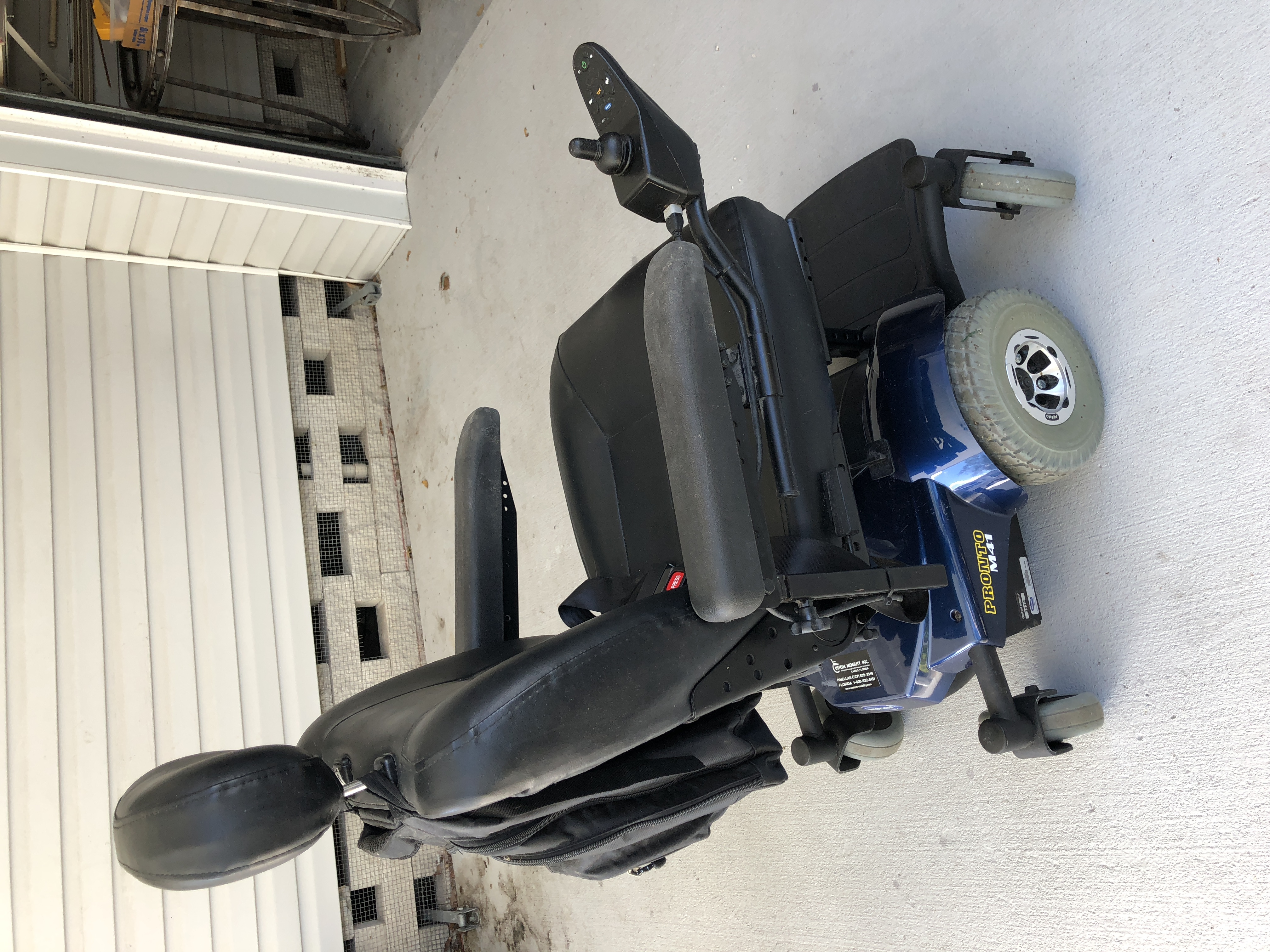 The locationnof this power wheelchair is in Oldsmar Flordia. It is very easy to access this neighborhood. We are available to meet for pick up Monday through Friday and as well as the weekends. Please email us of you have any questions or you need any assistance. We are very happy to help!